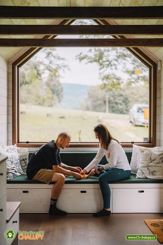 Glamping s krásným výhledem se nachází na samotě u obce Zlatá Olešnice nedaleko města Velké Hamry. Chata má úžasně velké okno, ze kterého si lze užívat výhledy do krásné okolní přírody či pozorování lesní zvěře. Ubytování je svou polohou ideální pro všechny, co si chtějí odpočinout od ruchu velkoměsta. Chata pohodlně ubytuje 4 osoby. K dispozici je jedno dvoulůžko (matrace) umístěné na vyvýšeném patře domku a dvě přistýlky řešené rozkládacím gaučem. Součástí chaty je plně vybavená kuchyň (plynová dvouplotýnka, lednice, příbory, nádobí a základní vybavení na vaření). K dispozici je teplá a studená voda. Pitná voda je připravena v lednici a ve vodních barelech. Voda z kohoutku slouží na vaření, mytí a sprchování. Sociální zařízení zahrnuje jednu koupelnu se sprchovým koutem a umyvadlem a jednu separační toaletu. K dispozici jsou ručníky a osušky. V chladných dnech vás zahřeje plynové topení nebo kamínka na dřevo. V teplejším počasí je k dispozici ventilátor. Pro chvíle pohody jsou zde připravené knihy a deskové hry. K dispozici je také WIFI připojení na internet. Venku si lze užívat volné chvíle u ohniště nebo lze využít gril. V příznivém počasí lze parkovat přímo u objektu. V případě ztížených podmínek je nutné parkovat 300 metrů od domku. V okolí domku možnost turistiky, cykloturistiky, koupání, houbaření, rybaření, lyžování a běžkování. Mezi možnosti koupání patří např.: koupaliště Zlatá Olešnice, koupaliště Bumbálka Jesenný, koupaliště Tanvald, koupaliště Jablonec nad Jizerou, lom Jílové u Držkova, koupaliště Poniklá - Homole v Dolích, koupaliště Zákoutí Harrachov, koupaliště Lučany nad Nisou, atd. V zimním období jsou k dispozici blízká lyžařská střediska: Zlatá Olešnice, Plavy, Metlák - Sklenařice, lyžařský vlek TJ Sokol Sklenařice, Šachty Vysoké nad Jizerou, Větrov, Kořenov - Rejdice, Skiareal Paseky nad Jizerou a další. K výletům v okolí láká Cyklostezka Járy Cimrmana, Rozhledna U Borovice ve Vysokém nad Jizerou, Rozhledna Štěpánka v Kořenově, Rozhledna Špičák v Tanvaldě, Kopec Kozákov, Protržená přehrada Horní Desná nebo Mumlavské vodopády v Harrachově. Těšíme se na Vás u nás.