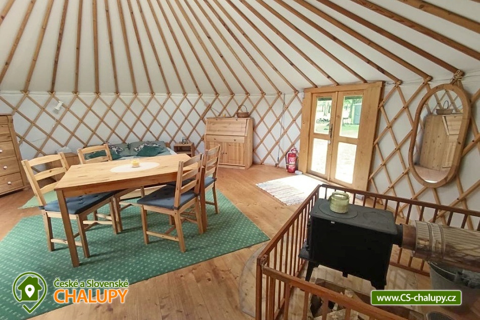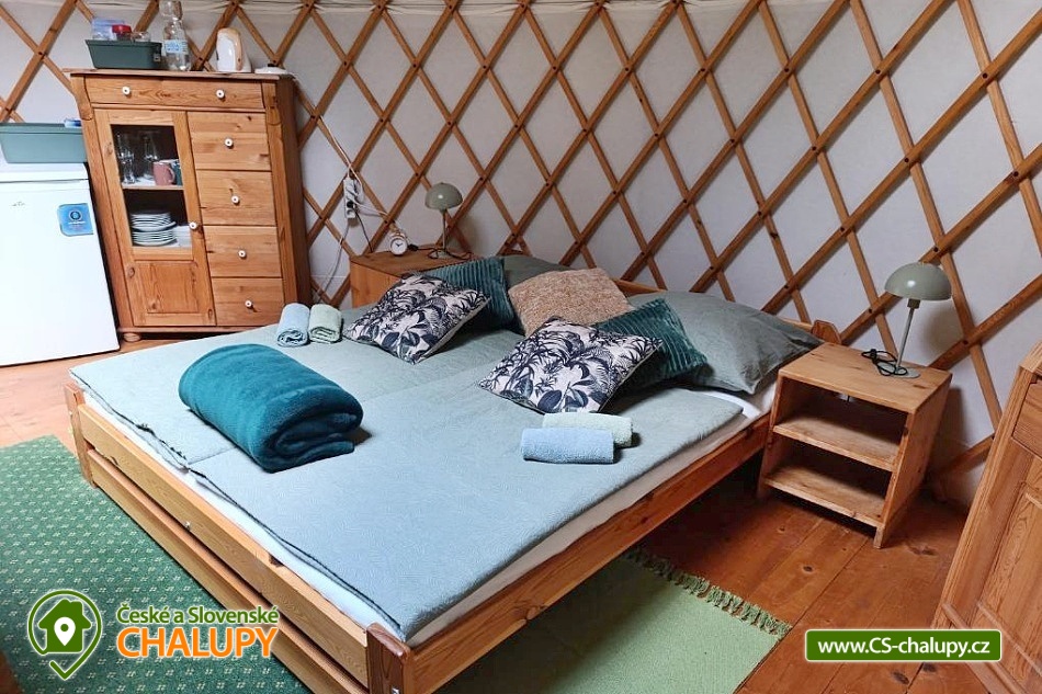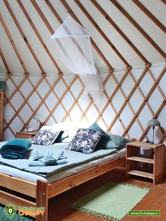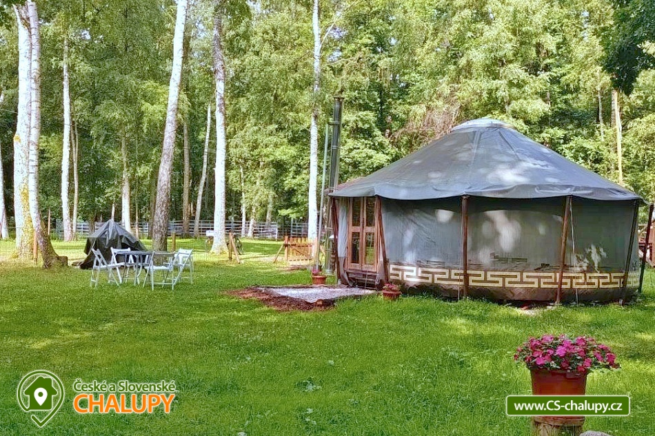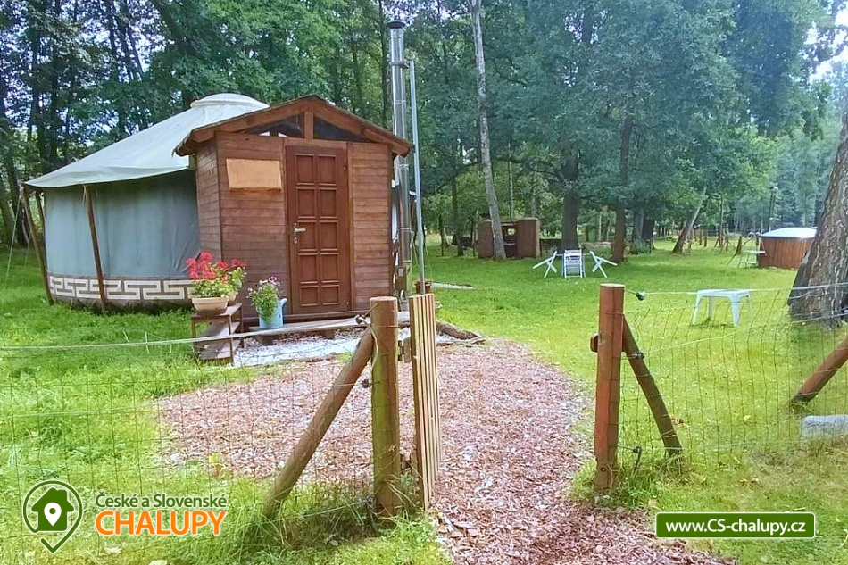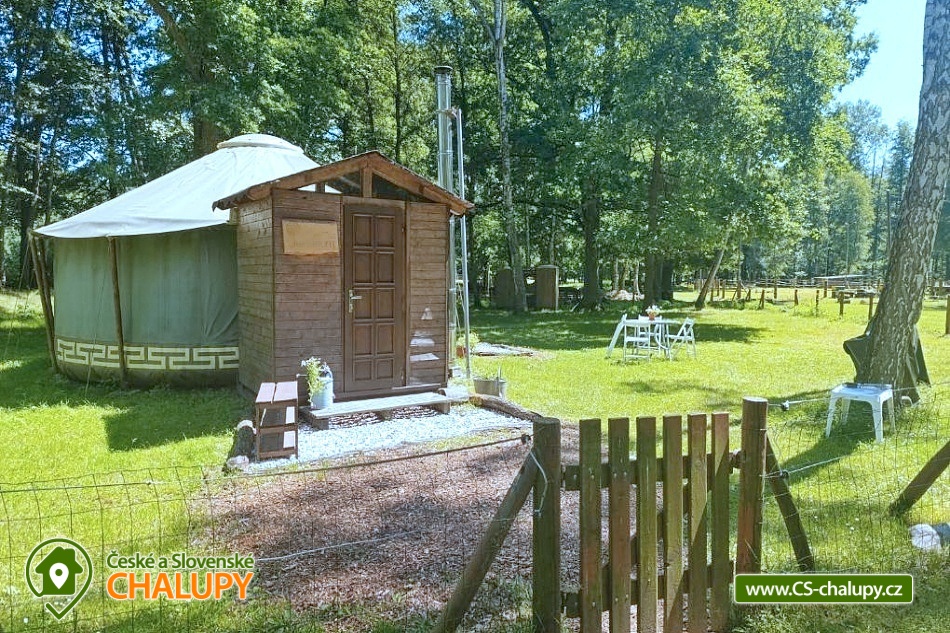Glamping jurta s vířivkou na farmě mezi zvířatky se nachází v blízkosti krásné přírody CHKO Slavkovský les a Krušných hor a nedaleko lázeňského města Karlovy Vary. Kapacita objektu je až pro 4 osoby. Komfortně zařízená jurta je umístěná na polosamotě u lesa na oploceném pozemku u pastviny, kde se poklidně pasou ovce, kravičky či koně. Do jurty se vstupuje přes menší předsíňku s policemi a venkovními přezůvkami. Součástí jurty jsou také další dveře vedoucí přímo do zahrady. Kruhový, otevřený prostor jurty je rozdělen na obývací, kuchyňský a spací prostor. V obývací části je k dispozici pohodlná pohovka (2x přistýlka - 190 x 140 cm), litinová krbová kamna, jídelní sezení se 4 židlemi, houpací křesílko a úložný prostor. V další části je umístěn menší kuchyňský kout (lednice, varná konvice, elektrický vařič, nádobí, mikrovlnná trouba, kávovar a toustovač). V ložnicovém prostoru zajišťuje komfortní spánek manželská postel (160 x 200 cm), ze které si lze díky skleněné kopuli na vrcholu jurty užívat krásné výhledy na oblohu a stromy. Sociální zařízení se nachází v exteriéru jurty a zahrnuje jednu koupelnu se sprchovým koutem, umyvadlem, teplou vodou a samostatné WC. K dispozici jsou ručníky, mycí prostředky, župany a fén. Vytápění je řešeno krbovými kamny nebo elektrickými přímotopy. Kolem jurty se rozléhá travnatá zahrada s venkovním posezením (stůl a židle). K dispozici je gril na dřevěné uhlí, grilovací náčiní a ohniště. Těšit se můžete na tiché prostředí s občasnými zvuky zvířat. Odpočinek si lze užít v koupací kádi nebo v houpací síti. Přímo u objektu je k dispozici jedno parkovací místo. Po domluvě je možné na farmě zajistit interaktivní prohlídku zvířat s mazlením za doprovodu lektora, svezení na koni nebo v kočáře a ukázku výroby domácího sýra či pečení domácího chleba. V okolí jurty možnost turistiky, cykloturistiky, koupání, rybaření, houbaření, lyžování a snowboarding. V blízkosti jsou tenisové kurty, fotbalové hřiště, golfové hřiště, jízdárna, wellness a bowling. Jurta je v blízkosti cyklostezky a krásných meandrů řeky Rolavy. Mezi možnosti koupání patří např.: Koupaliště Rolava, plavecký areál Karlovy Vary (Mattoni Arena), Alžbětiny Lázně, Aquacentrum Agricola, Aquapark Klášterec nad Ohří a další. V zimním období jsou k dispozici blízká lyžařská střediska: Skiareál Merklín, Skiareál Plešivec - Abertamy atd. K výletům v okolí láká lázeňská kolonáda města Karlovy Vary, Jan Becher muzeum, Sklářské muzeum Moser, Rozhledna Diana, Hrad Loket, Přírodní rezervace Soos, Boží Dar - Ježíškova cesta nebo Kyselka a Mattoniho stezka. Těšíme se na Vás u nás.