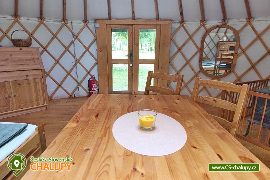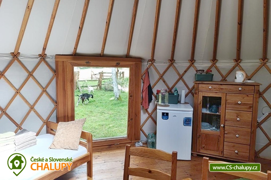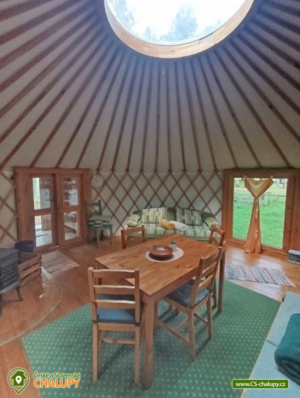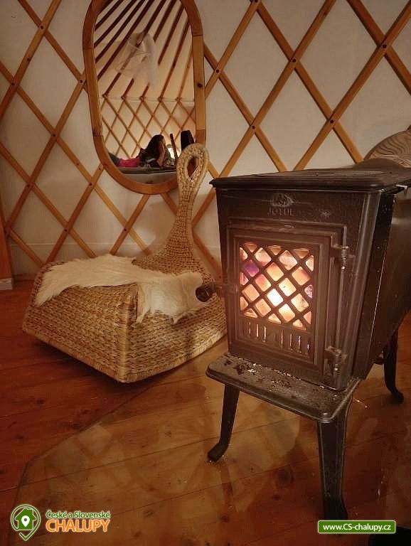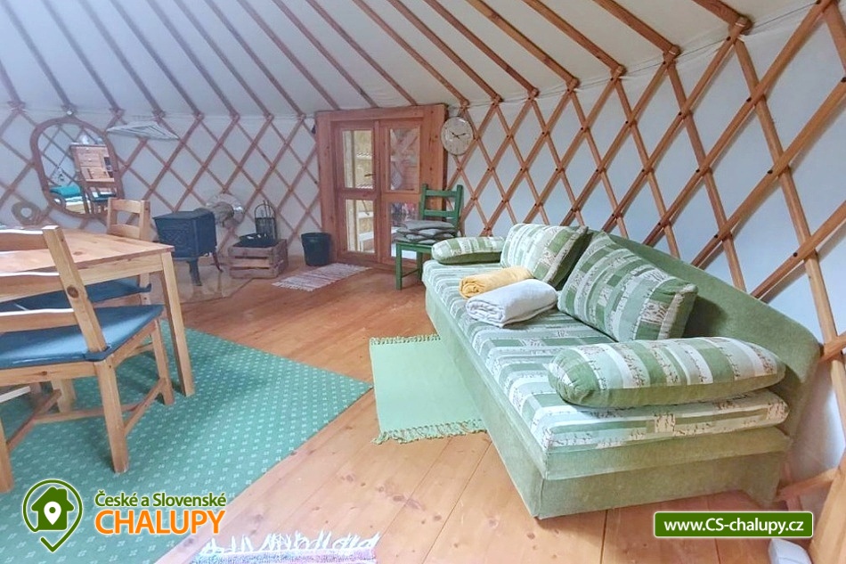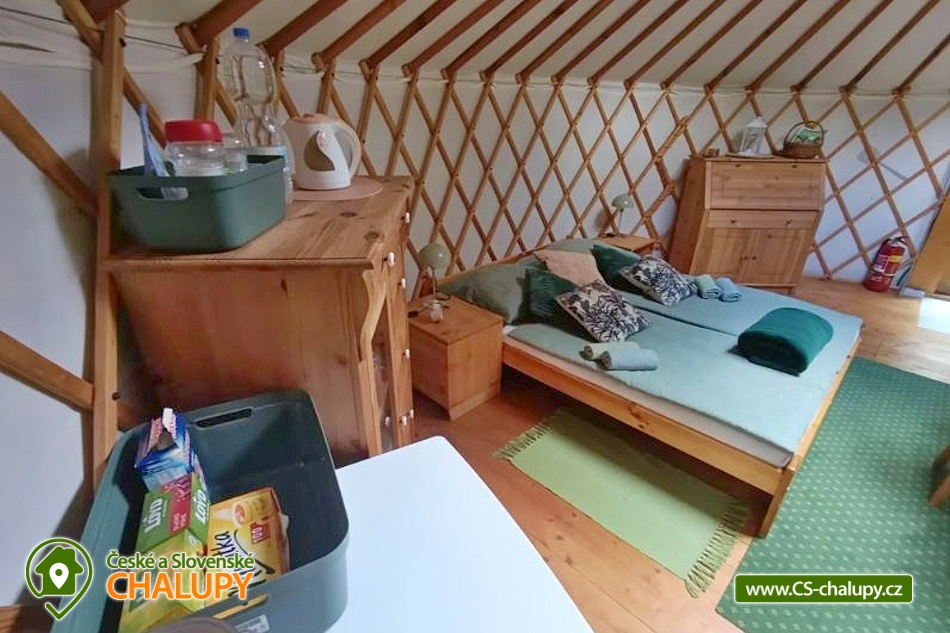 Glamping jurta s vířivkou na farmě mezi zvířatky se nachází v blízkosti krásné přírody CHKO Slavkovský les a Krušných hor a nedaleko lázeňského města Karlovy Vary. Kapacita objektu je až pro 4 osoby. Komfortně zařízená jurta je umístěná na polosamotě u lesa na oploceném pozemku u pastviny, kde se poklidně pasou ovce, kravičky či koně. Do jurty se vstupuje přes menší předsíňku s policemi a venkovními přezůvkami. Součástí jurty jsou také další dveře vedoucí přímo do zahrady. Kruhový, otevřený prostor jurty je rozdělen na obývací, kuchyňský a spací prostor. V obývací části je k dispozici pohodlná pohovka (2x přistýlka - 190 x 140 cm), litinová krbová kamna, jídelní sezení se 4 židlemi, houpací křesílko a úložný prostor. V další části je umístěn menší kuchyňský kout (lednice, varná konvice, elektrický vařič, nádobí, mikrovlnná trouba, kávovar a toustovač). V ložnicovém prostoru zajišťuje komfortní spánek manželská postel (160 x 200 cm), ze které si lze díky skleněné kopuli na vrcholu jurty užívat krásné výhledy na oblohu a stromy. Sociální zařízení se nachází v exteriéru jurty a zahrnuje jednu koupelnu se sprchovým koutem, umyvadlem, teplou vodou a samostatné WC. K dispozici jsou ručníky, mycí prostředky, župany a fén. Vytápění je řešeno krbovými kamny nebo elektrickými přímotopy. Kolem jurty se rozléhá travnatá zahrada s venkovním posezením (stůl a židle). K dispozici je gril na dřevěné uhlí, grilovací náčiní a ohniště. Těšit se můžete na tiché prostředí s občasnými zvuky zvířat. Odpočinek si lze užít v koupací kádi nebo v houpací síti. Přímo u objektu je k dispozici jedno parkovací místo. Po domluvě je možné na farmě zajistit interaktivní prohlídku zvířat s mazlením za doprovodu lektora, svezení na koni nebo v kočáře a ukázku výroby domácího sýra či pečení domácího chleba. V okolí jurty možnost turistiky, cykloturistiky, koupání, rybaření, houbaření, lyžování a snowboarding. V blízkosti jsou tenisové kurty, fotbalové hřiště, golfové hřiště, jízdárna, wellness a bowling. Jurta je v blízkosti cyklostezky a krásných meandrů řeky Rolavy. Mezi možnosti koupání patří např.: Koupaliště Rolava, plavecký areál Karlovy Vary (Mattoni Arena), Alžbětiny Lázně, Aquacentrum Agricola, Aquapark Klášterec nad Ohří a další. V zimním období jsou k dispozici blízká lyžařská střediska: Skiareál Merklín, Skiareál Plešivec - Abertamy atd. K výletům v okolí láká lázeňská kolonáda města Karlovy Vary, Jan Becher muzeum, Sklářské muzeum Moser, Rozhledna Diana, Hrad Loket, Přírodní rezervace Soos, Boží Dar - Ježíškova cesta nebo Kyselka a Mattoniho stezka. Těšíme se na Vás u nás.