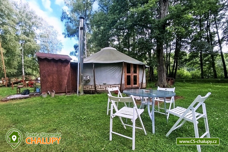 „Glamping jurta (4 os.) - koupací sud - farma - Hrad Loket - Karlovy Vary“