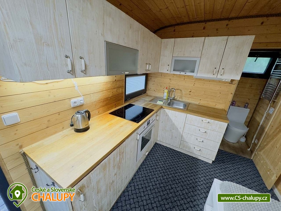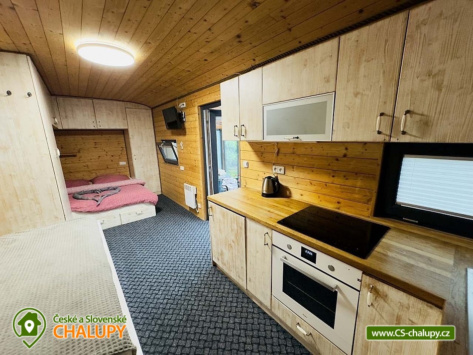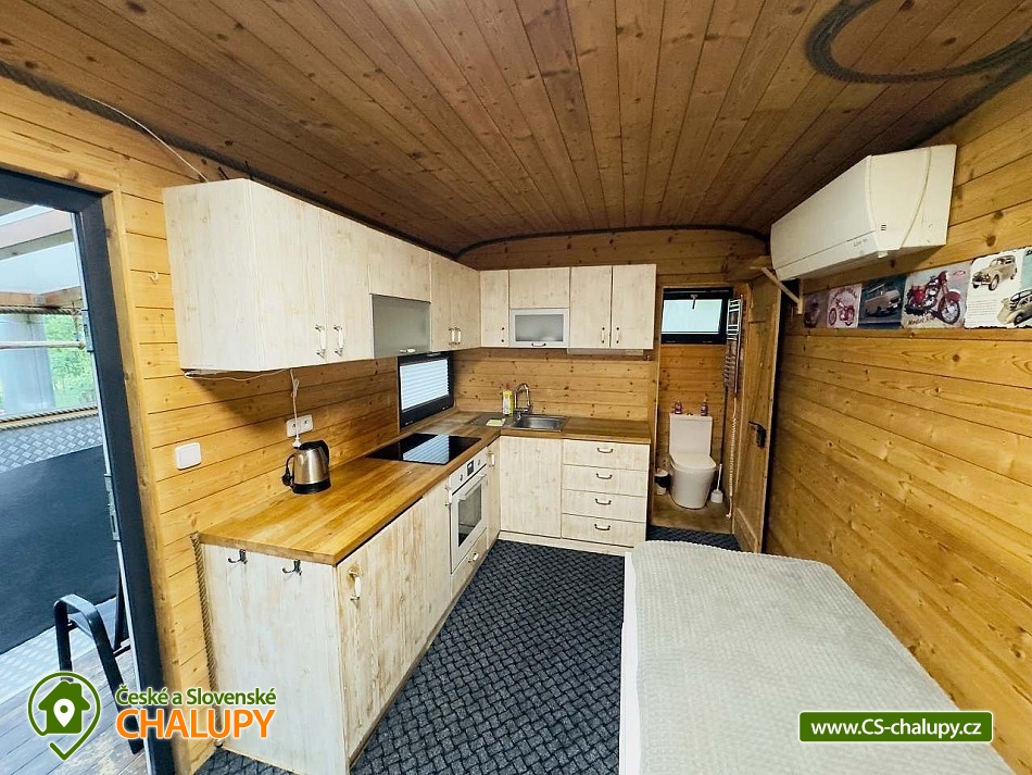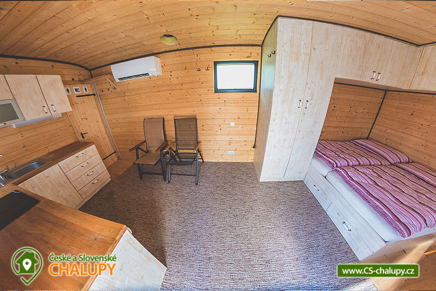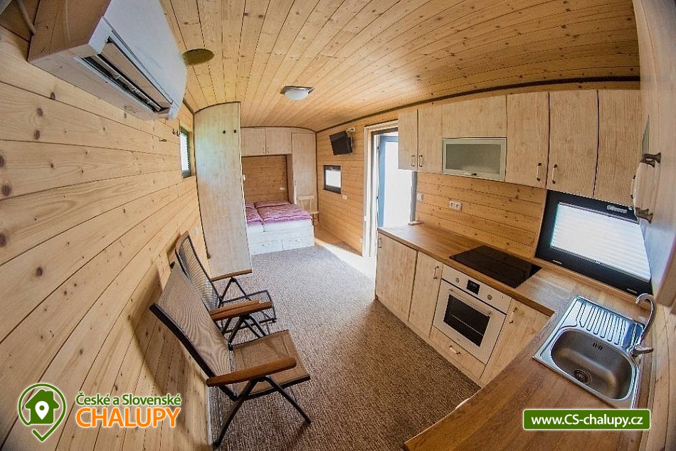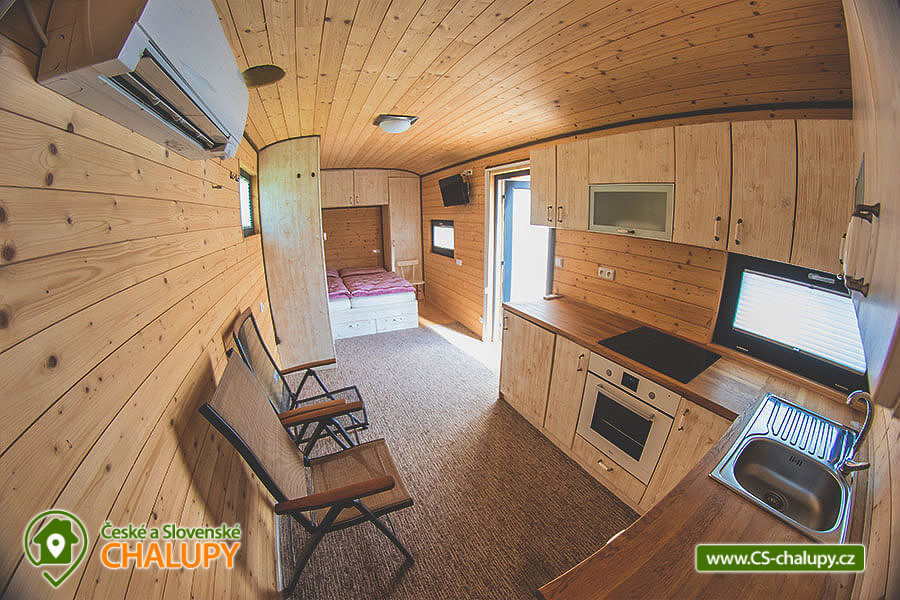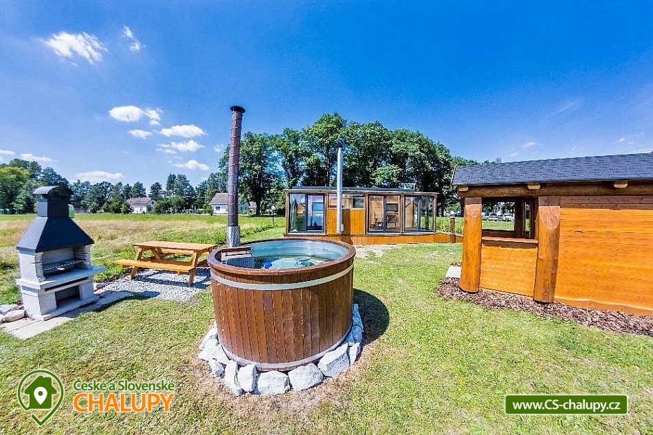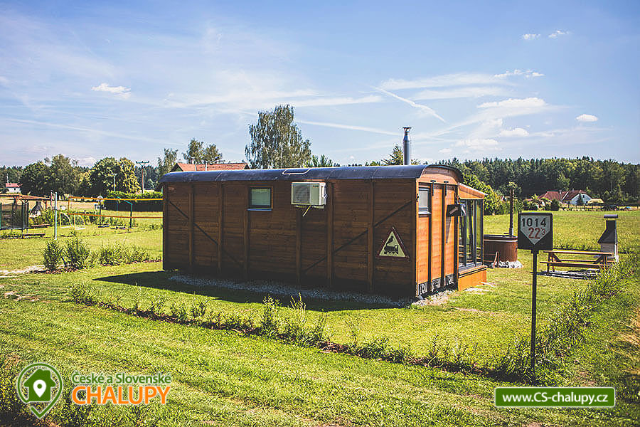 Wellness Vagón - cottage Chlum u Třeboně - whirlpool, outdoor bathing barrel, Finnish log cabin and air conditioning. We offer the possibility of non-traditional accommodation for 4 people in a converted wagon from a legio train. Possibility to use private wellness, whirlpool is located in the winter garden, outdoor bathing barrel, outdoor Finnish sauna and barbecue. The car has a toilet + shower, kitchen, built-in refrigerator + hot air oven and glass-ceramic hob. The kitchen is fully equipped, there is also an electric kettle. The car is heated by a solid fuel stove and air conditioning. In summer, the car is air-conditioned, and Wi-Fi is available. The building has a double bed and 1 double sofa bed. Parking by the accommodation facility. Hand-made bathing barrel for the perfect pleasure of the outdoor bath, whether the sun is burning outside or flakes are flying. Find the most suitable time for you. Early evening, sunset, black night, free afternoon or early morning bath. At a temperature of 40 degrees, the greatest muscle relaxation and muscle tension occur. Staying in a heated barrel therefore simulates spa conditions. In addition, staying in the barrel is a pleasant social affair. The average heating time of a bathing tub is 2.5 to 3 hours. THE WATER IN THE COURT FALLS ONLY AT 3 DEGREES AT THE NIGHT, SO THAT THE OTHER DAY, IT IS NECESSARY TO HEAT FOR A SMALL MOMENT. We change the water in the barrel after each customer. The water in the bath tub is heated by wood stoves placed in the water. We have wood ready for you Come and enjoy what you have not experienced before. Wellness - wagon is a great place for families or couples who want to relax in complete privacy, providing countless opportunities for hiking and biking. The location is suitable for active and relaxing holidays (bike paths, hiking trails, a mushroom paradise). Swimming possibilities and water areas in the vicinity: Hejtman pond, Staňkovský pond, Suchdolské pískovny, Novomlýnský pond - Peršlák, Nový Stříbřecký pond, Blanko pond or Mnišský pond.