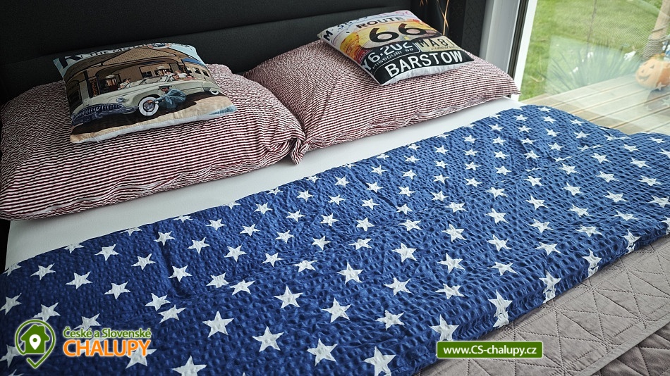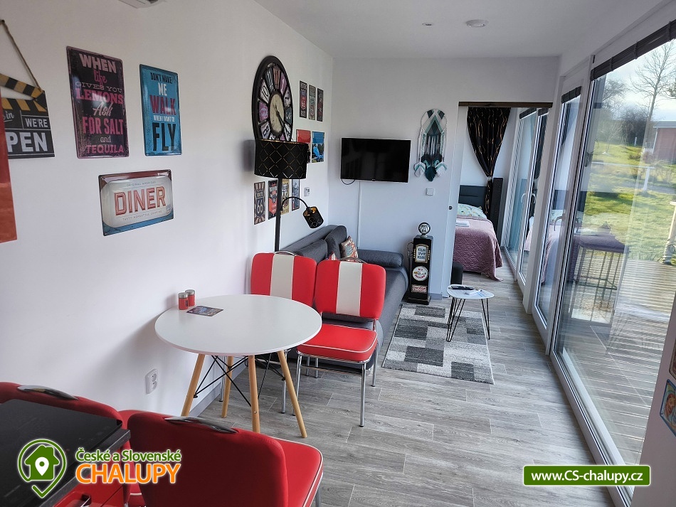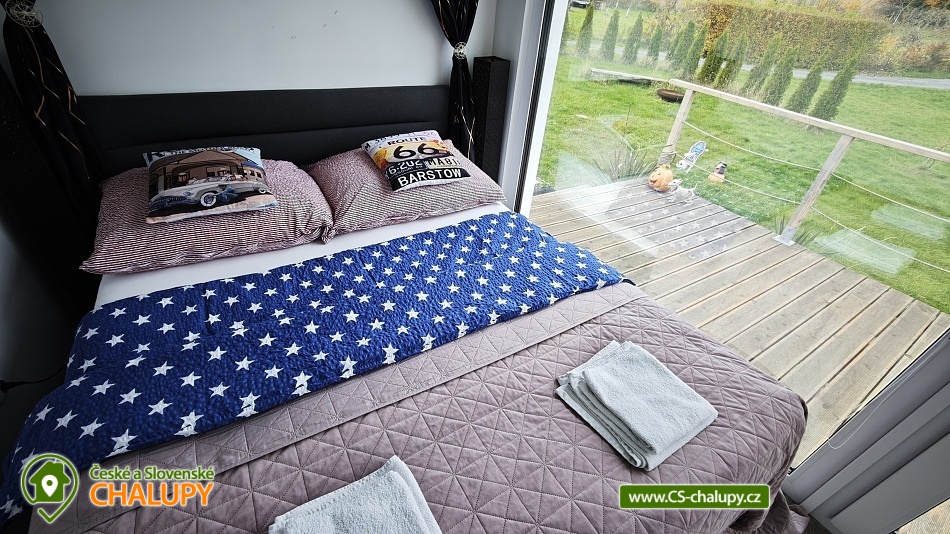 Tiny House Black Swallow - Hostkovice in the style of Route 66 is located in Hostkovice, part of the municipality of Tršice. In a beautiful environment near Olomouc within reach of nature, horses and the city. It is located in the large garden of Ranch 66 together with another object Chata Arizona and near the house of the owners who are fans of Route 66. In the garden there is a swimming pool with solar heating. The Tiny House offers accommodation for four people in a double bedroom and a living room with a sofa bed. The property has a fully equipped kitchen (dishes, refrigerator, microwave oven, two-burner stove and coffee maker), dining table, TV, Wi-Fi connection and air conditioning. The sanitary facilities include a shower, sink and toilet. Towels, shower gel and hairdryer are available. Hot water is provided by a boiler with a capacity of 80 l. Heating is possible in two ways. The first is heating with air conditioning (heat pump), the most economical method. Another option is electric floor infrared heating, with a thermostat in each room. Parking is possible right next to the building in the fenced garden. You can sit outside on the terrace with a beautiful view of the garden and nature. There is a swimming pool, grill and fire pit. You can go on foot or by bike to the memorial to the victims of the First World War. Twenty minutes walk there and twenty minutes back, a four kilometer walk. You can then continue on your bike to the village of Velký Týnec, or connect to the Chlum route - this route runs mostly through the forest and is approximately 9 kilometers long. It is suitable for both cyclists and pedestrians. You can also visit the city of Olomouc, where there is a lot of culture and entertainment. You can also arrange horse riding in the local stable or just walk around the stable and look at the different animals. The stable is within sight of the accommodation, a 3-minute walk. Possibility of swimming: water park Olomouc, Tršice dam or Penčice swimming pool. In winter, you can visit the nearby Hlubočka ski area. We look forward to seeing you here.