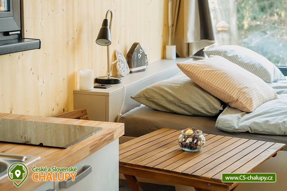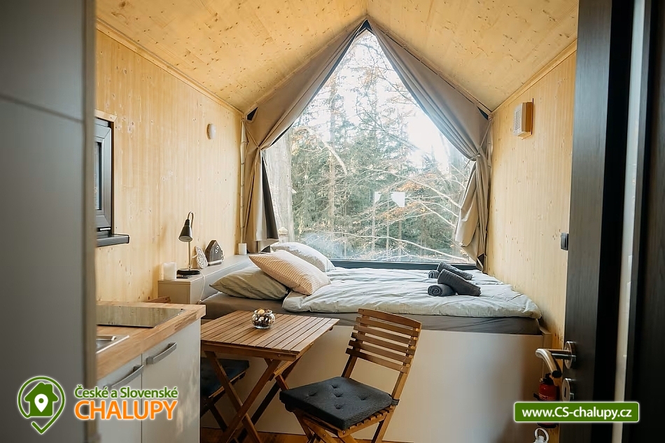 Luxusní Glamping s venkovní sudovou saunou v CHKO Český ráj u Příhrazských skal nedaleko nedaleko hradu Valdštejn a romantického zámku Hrubá Skála. Přímo z terásky Glampingu pro 2 osoby si užijete výhledy na hrad Trosky. K dispozici máte plně vybavenou vnitřní kuchyni, koupelnu se sprchou a splachovacím záchodem. Glamping je zateplený a automatické topení zajistí, že vám bude příjemně ve všech sezónách. Západy slunce zde mají zvláštní kouzlo – ideální pro romantické večery. Manželská postel s teplými peřinami a výhledem do krásné přírody. Záclony pro maximální soukromí. Kamínka, která vyhřejí glamping i při největších mrazech. V našem glampingu se budete cítit součástí přírody, ale zároveň budete v naprostém luxusu. Přímo v glampingu najdete teplou sprchu, splachovací záchod a umyvadlo. U glampingu je také finská sudová sauna. V glampingu najdete plně vybavenou kuchyň s elektrickou plotnou, pánví, nádobou na vaření čaje, tchibo kávovar na kapsle, jídelní nádobí (talíře, misky, skleničky, hrnky apod.), příbory. Nechybí utěrka, ručníky ani mycí prostředek na nádobí. V teple našeho glampingu, s výhledy na krásnou přírodu si užijete naprostý relax a úžasnou romantiku. Parkování přímo u domku zdarma - zhruba 10 metrů od Glampingu. Nastavitelná ztlumovací světla pro dokonalou atmosféru večer. Zasloužíte si vypnout! Těšíme se na Vás u nás.