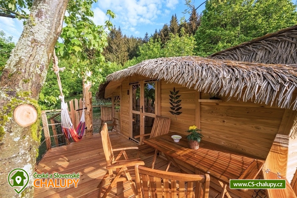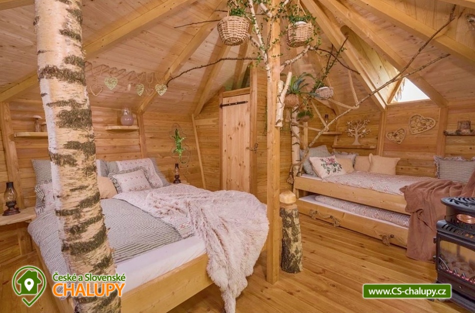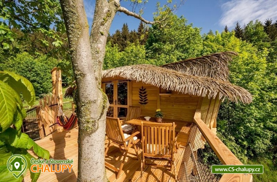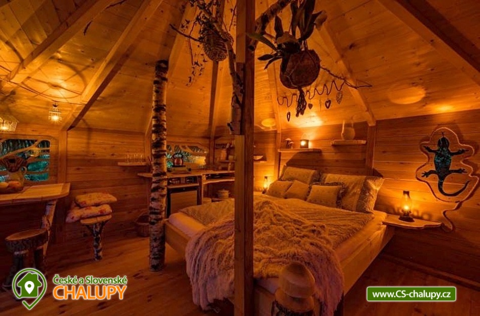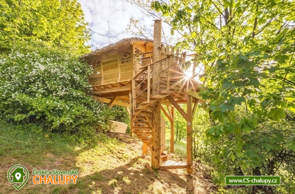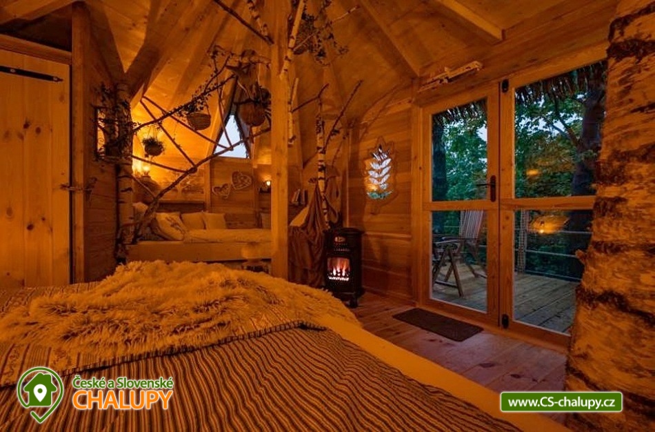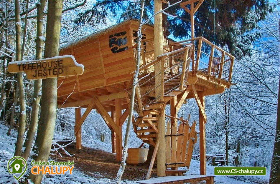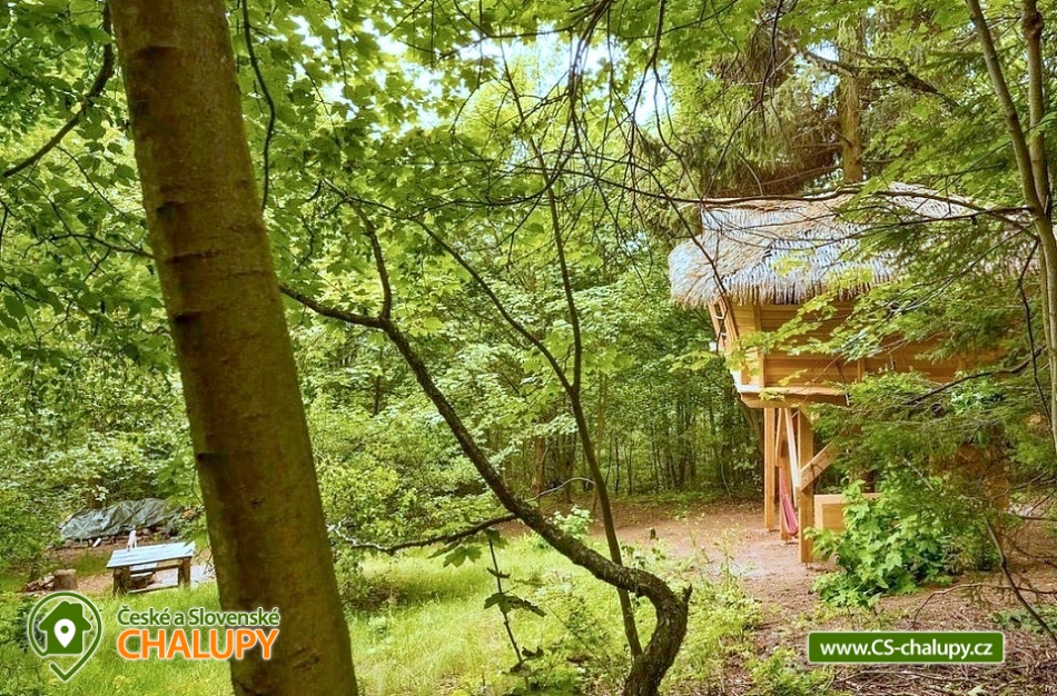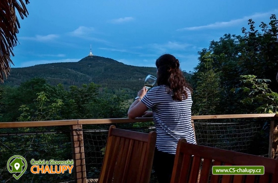 Glamping v korunách stromů - výhled na Ještěd. Z prostorné terasy se vám nabízí jedinečné panoramatické výhledy do okolní přírody s dominantou hory Ještěd. Užívat si můžete také venkovní saunu. Glampingu - Treehouse dominují přírodní materiály, od postele z masivu až po dekorace na stěnách, všude je cítit vůně dřeva a samotného lesa. Treehouse je bez elektrické energie, přesto luxusně vybaven a nabízí maximální komfort tak, abyste byli ze zážitkového ubytování skutečně "na větvi". Je určena především pro milovníky volného prostoru a jedinečných výhledů. Prostor poskytuje příjemné ubytování se snídaní pro až 4 osoby (z toho max. 3 dospělí) – celkem pro 2 osoby na manželském lůžku s výhledem na Ještěd přímo z postele, a 2 osoby na pohodlné přistýlce. Treehouse je vybaven kuchyňským koutem s jednoplotýnkovým vařičem, malou, plnohodnotnou lednicí, kompletní sadou nádobí a jídelním stolkem s lavicí. Po domluvě lze naplnit lednici vyzrálým naloženým masem, grilovací zeleninou nebo marinované sýry na gril s rajčátky. Ráno pro vás může být připravena snídaně (čerstvé pečivo, sýry a uzeniny, poctivý jogurt s cereáliemi nebo míchaná vejce s cibulí a slaninkou a k tomu domácí čaj nebo vynikající káva). Zatopit si můžete ve stylovém litinovém krbu s automatickou funkcí, který večer dokreslí útulnou atmosféru a spolehlivě vyhřeje treehouse v chladnějších nocích. Objekt není napojen na elektřinu ani vodu, přesto si večer lze posvítit led svítidly a opláchnout se v koupelnovém koutku přímo v treehousu. Vykoupat se můžete v přírodní lesní sprše se studenou vodou nedaleko vyhlídkového posedu. Voda do přírodní sprchy je čerpána z pramene přímo na pozemku. Zásoba pitné vody je samozřejmostí. V korunách stromů, se také nachází ekologické WC. Tradiční kadibudka v soukromí lesa se nachází nedaleko. Během ubytování je k dispozici káva, čaj, cukr, sůl, koření, smetana, ručníky, osušky, vymazlené chodící spací pytle (pohodlné posezení na terase i za chladnějších nocí), svíčky, pepo, zapalovače a knihovnička. Wellness v srdci přírody si lze užívat v privátní sudové sauně s kamny na dřevo. Venkovní posezení uprostřed krásné krajiny je doplněno o ohniště a gril. K prozkoumávání okolí poslouží dalekohled, kterým dohlédnete až na vrchol Ještědu. K pozorování si můžete udělat výbornou kávu, kterou si připravíte v moka konvičce. Večer si můžete zpříjemnit s některou ze zábavných stolních her nebo můžete skočit do luxusních spacích pytlů a se sklenkou pozorovat noční Ještěd. Vyzkoušet můžete i svůj balanc na Slackline, nebo svoji pevnou ruku při lukostřelbě. Parkovat lze 900 m od objektu. V okolí Treehousu možnost turistiky, cykloturistiky, koupání, houbaření, rybaření a lyžování. V blízkosti je také jízdárna, golfové hřiště a in -line stezka. Nedaleko Treehousu se nachází Lesopark Horka - volnočasový areál pro celou rodinu. Po domluvě lze zajistit vyhlídkový let anebo jízdu na koloběžkách z Ještědu, kolem treehousu až do Kryštofova údolí. Napojení na turistickou Ještědskou hřebenovku je vzdálené necelých 150m lesní pěšinou. Z ní vedou nepřeberné cesty Ještědským přírodním parkem. Mezi možnosti koupání patří např.: vodní nádrž Hamr na Jezeře, koupaliště Kryštofovo Údolí, aquapark Centrum Babylon - Liberec, plavecký bazén Liberec, Vesecký rybník - Tajch, přehrada Harcov, koupaliště Obří sud - Javorník, vodní nádrž Horka - Stráž pod Ralskem, atd. V zimním období blízká lyžařská střediska: Ještěd, Světlá pod Ještědem, Dolní Pláně, Vesec, Obří sud - Javorník. K výletům láká příroda Jizerských hor, Ještěd, ZOO a Botanická zahrada Liberec, Kryštofovo údolí, Kouzelné Lázně Kundratice, Zámek Nový Děvín či Zámek Nový Falkenburk. Přijeďte si odpočinout od shonu všedního života, nabrat síly a zažít něco nevšedního. Těšíme se na Vás u nás.