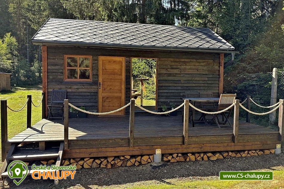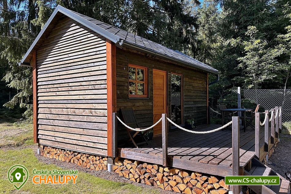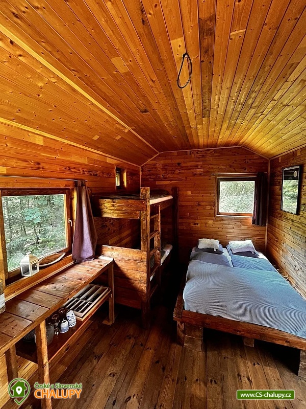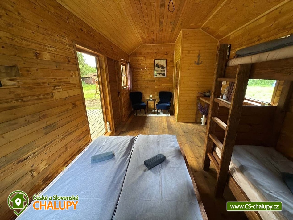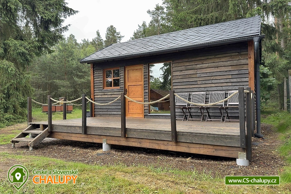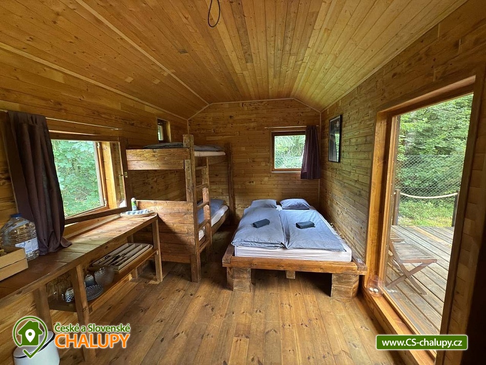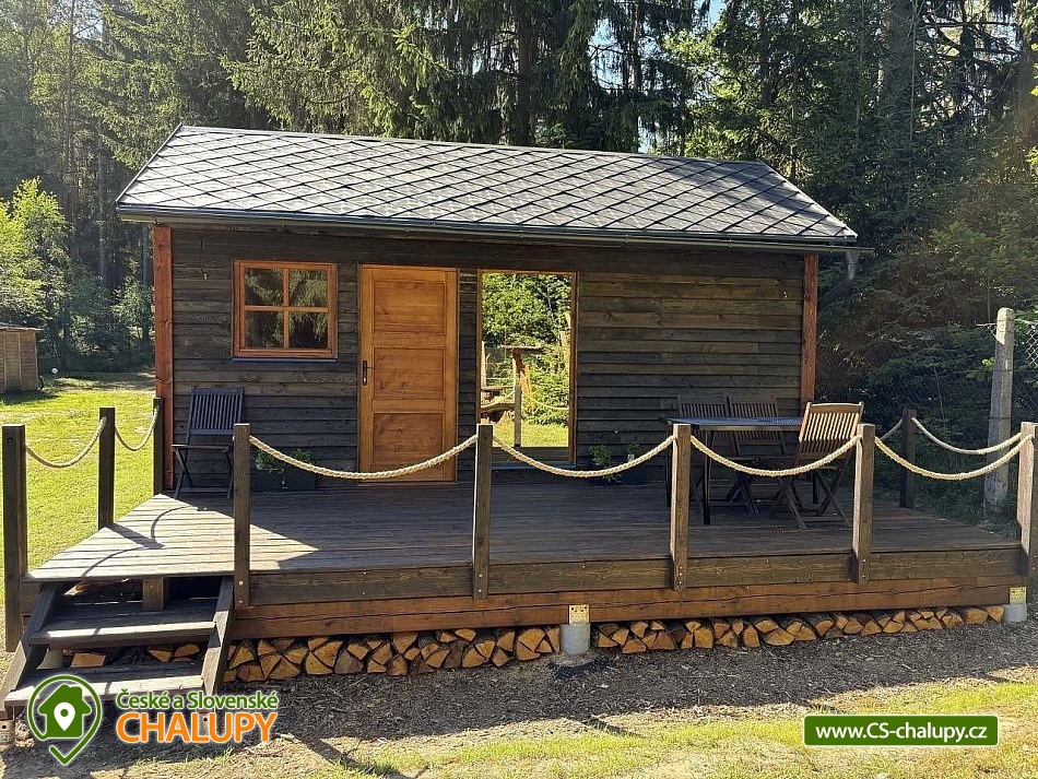 Glamping u cyklostezky - Hamr na jezeře - Ralsko. Kapacita glampingové chaty je až 4 osoby v 1 ložnici. Atraktivní lokalita nabízí nepřeberné množství aktivního vyžití. Od klidných posezení na terase nad rybníkem s výhledem na panorama Ještědu, přes houbaření či toulky v okolních lesích až po výšlap na Krásnou vyhlídku, ze které je jedinečný výhled téměř na celou Ralskou pahorkatinu. Na své si přijdete I jako sportovně založení návštěvníci – nedaleko glampingové chaty totiž vede oblíbená cyklostezka z Osečné přes Hamr na Jezeře do Stráže pod Ralskem. U chaty je pro hosty připraveno ohniště s grilem a posezením. Děti si užijí pískoviště s prolézačkami a houpačkou. Mazlíčci jsou tu vítáni. Sprcha tu není přímo v domečku (je venkovní s nádrží), ale suchá ekologická toaleta ano. V chatě se vyspíte klidně hned ve čtyřech lidech. Ideálně dva dospělí na manželské posteli a dvě děti na palandě. Chcete-li si užít pobyt v přírodě jen ve dvou, pošlete děti na tábor a vyrazte sami. Romantika při svíčkách zaručena. Chata je vybavena manželskou postelí a dvěma lůžky na patrové posteli. Vždy jsou pro Vás připravené deky pro chladnější večery na terase a voňavě povlečené peřiny. V chatě je suchá toaleta a nechybí ani venkovní kadibudka. Také jsou pro vás připraveny barely s pitnou vodou. K dispozici je také venkovní sprcha, lůžkoviny a ručníky. Pokud budete chtít na pár dní přijet ve větší skupině (6-8 lidí), přibalte si s sebou stan a můžete se v domečku pohodlně vystřídat. Stanování na pozemku u chaty je bez příplatku. V létě možnost koupání v místním kempu u rybníka. V chatě zatím není k dispozici elektřina, ale lucerničky na baterky a svíčky jsou k dispozici. Cyklostezka je vedena lesem, takže nemusíte mít strach o děti ani projíždějící auta. Těšíme se na Vás u nás.