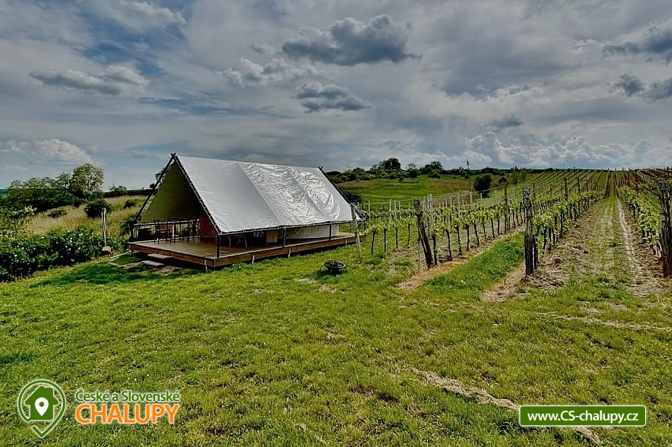 Glamping - Tent Nature between vineyards - Čejkovice is located directly among the vineyards of South Moravia, in the village of Čejkovice. Enjoy an unforgettable experience and breathtaking views of the vineyards and scenery of South Moravia, directly from the tent terrace. Sleeping for 4 people (a double bed and two folding mattresses) and other tent equipment are ready for you: two bedside tables, kerosene lamps, candles, books, and for various emergencies, a power bank, first aid kit, fire extinguisher or toilet paper. For your comfort there are pillows and blankets, towels, clean bed linen and of course plenty of blankets for the colder days. In the kitchen you will find basic utensils (cutlery, bowls, plates, mugs), a gas stove, a coffee/tea set, salt and pepper, dishwashing detergent and a sponge. At the beginning of your stay, you will receive a welcome package from us, which of course contains Moravian wine and specialties from local farmers. We recommend taking mainly non-perishable food with you, as there is no fridge in the tent. A short distance from the tent you will find our self-service bar, where you can buy alcoholic and non-alcoholic drinks, various snacks or something sweet. The bar works on the basis of trust, so you only leave us money there for what you take. But we regularly supplement and change the assortment, so there will be plenty to choose from. A fire pit with all the necessary equipment will serve you well for cooking and heating food as well as roasting and grilling. There is no electricity or Wi-Fi. Outside there is a grill, kettle, fireplace, outdoor seating, table and outdoor games, flashlight, lanterns, wine bar, water cooler, solar shower, two bicycles suitable for trips around the area. You will find an outdoor solar shower on site and a dry toilet (kadibudka) is located a short distance from the tent. Drinking water canister available. Parking is possible approx. 150 m from the tent. There are plenty of trips in the area, whether by bike, on foot or by car: Templar cellars - wine cellars in Čejkovice, T.G.M House, Mutěnice - Vyšičko Lookout, Kobylí lookout, Windmill between Čejkovice and Starý Poddvorov or Lednicko Valtický area. Swimming options include: Němčičky swimming pool and Hodonín swimming pool. We will be happy to help you plan trips and bike tours exactly according to your wishes. If you are interested, we will also provide a guide who will accompany you to the most interesting places. We look forward to seeing you here.