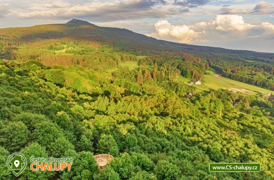 Glamping v korunách stromů - výhled na Ještěd Jizera Mountains