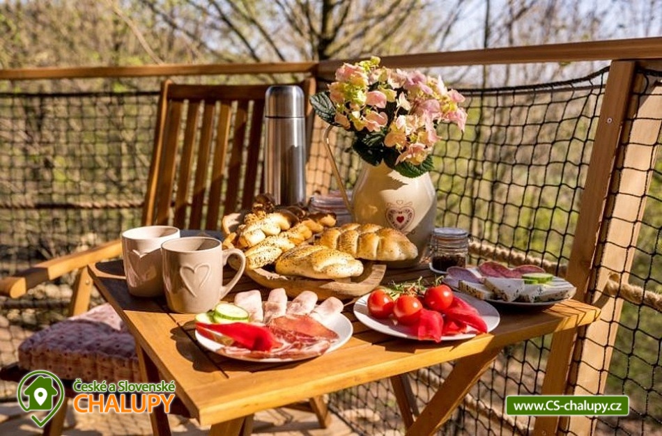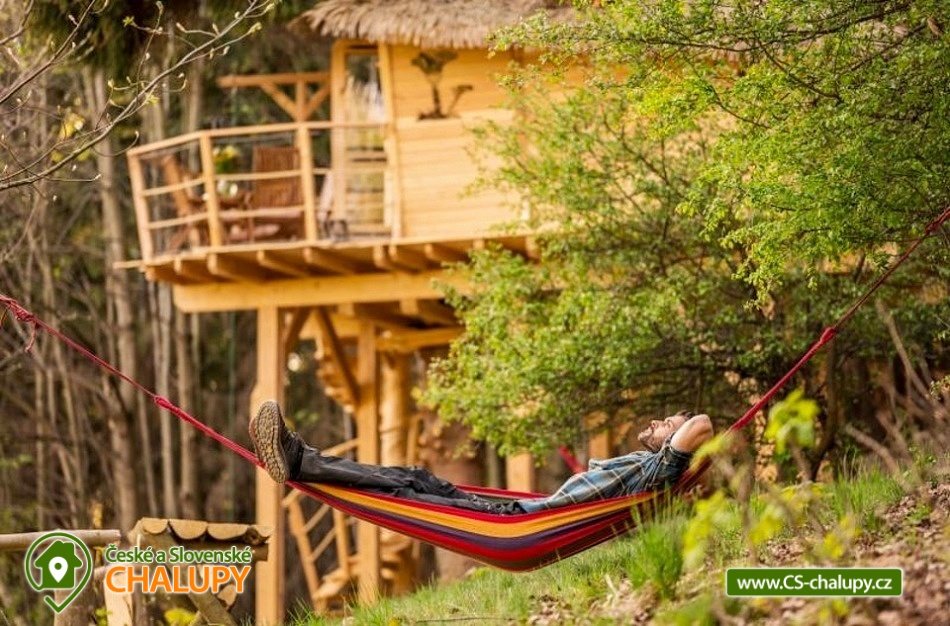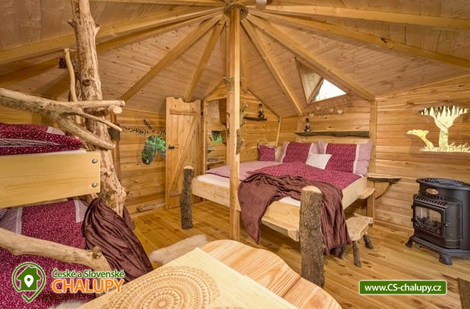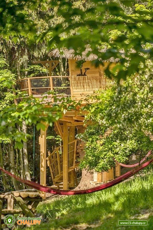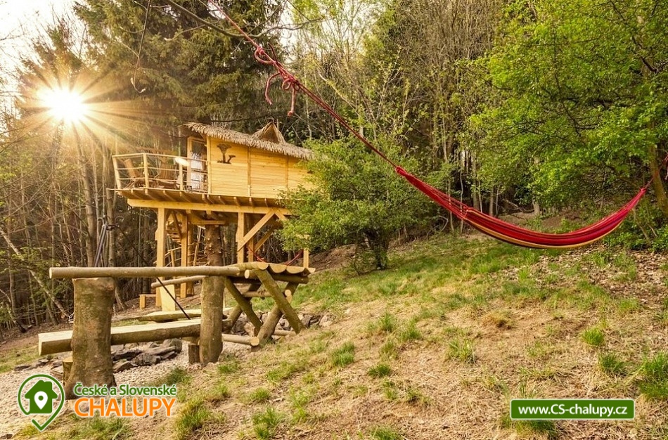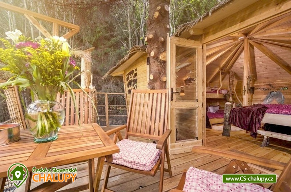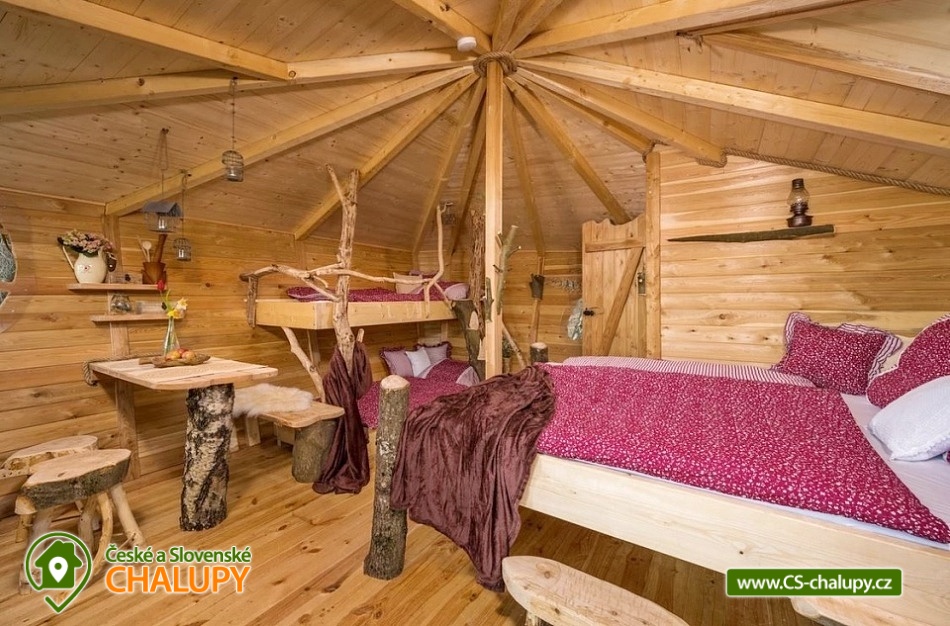 Glamping v lese - Treehouse a sauna - výhled na Ještěd. Treehouse nabízí unikátní typ trávení dovolené vysoko v koruně majestátního smrku, s úžasným průhledem z prostorné terasy na dominantu hory Ještěd a do ševelících listů stromů hustého lesa. Užívat si můžete také venkovní saunu. Treehouse je bez elektrické energie, přesto luxusně vybaven. Je postavený v dokonalém souladu s okolní hornatou přírodou a připravený poskytnout maximální komfort tak, abyste byli ze zážitkového ubytování skutečně "na větvi". Prostor poskytuje příjemné ubytování se snídaní pro až 4 osoby (z toho max. 3 dospělí) – celkem pro 2 osoby na manželském lůžku s výhledem do korun stromů přímo z postele, a 2 osoby na útulné patrové posteli. Treehouse je vybavený kuchyňským koutem s jednoplotýnkovým vařičem, malou lednicí, kompletní sadou nádobí a jídelním stolkem s lavicí. Po domluvě lze naplnit lednici vyzrálým naloženým masem, grilovací zeleninou nebo marinované sýry na gril s rajčátky. Ráno pro vás může být připravena snídaně (čerstvé pečivo, sýry a uzeniny, poctivý jogurt s cereáliemi nebo míchaná vejce s cibulí a slaninkou a k tomu domácí čaj nebo vynikající káva). Zatopit si můžete ve stylovém litinovém krbu s automatickou funkcí, který večer dokreslí útulnou atmosféru a spolehlivě vyhřeje treehouse v chladnějších nocích. Objekt není napojen na elektřinu ani vodu, přesto si večer lze posvítit led svítidly a vykoupat se můžete v přírodní lesní sprše se studenou vodou nedaleko vyhlídkového posedu. Voda do přírodní sprchy je čerpána z pramene přímo na pozemku. Zásoba pitné vody je samozřejmostí. V korunách stromů, se také nachází ekologické WC. Tradiční kadibudka v soukromí lesa se nachází nedaleko. Během ubytování je k dispozici káva, čaj, cukr, sůl, koření, smetana, ručníky, osušky, vymazlené chodící spací pytle (pohodlné posezení na terase i za chladnějších nocí), svíčky, pepo, zapalovače a knihovnička. Wellness v srdci přírody si lze užívat v privátní sudové sauně s kamny na dřevo. Venkovní posezení na stylovém lesním nábytku je doplněno o ohniště a grilovací mříž. Dřevo si můžete naštípat sami. Sekyrka a pilka je k dispozici. K prozkoumávání okolí poslouží dalekohled, kterým dohlédnete až na vrchol Ještědu. K pozorování si můžete udělat výbornou kávu, kterou si připravíte v moka konvičce. Večer si můžete zpříjemnit s některou ze zábavných stolních her nebo můžete skočit do luxusních spacích pytlů a se sklenkou pozorovat noční Ještěd i při chladnějších dnech. Vyzkoušet můžete i svůj balanc na Slackline, nebo svoji pevnou ruku při lukostřelbě. Parkovat lze 800 m od Treehousu. V okolí Treehousu možnost turistiky, cykloturistiky, koupání, houbaření, rybaření a lyžování. V blízkosti je také jízdárna, golfové hřiště a in -line stezka. Nedaleko Treehousu se nachází Lesopark Horka - volnočasový areál pro celou rodinu. Po domluvě lze zajistit vyhlídkový let anebo jízdu na koloběžkách z Ještědu, kolem treehousu až do Kryštofova údolí. Napojení na turistickou Ještědskou hřebenovku je vzdálené necelých 150m lesní pěšinou. Z ní vedou nepřeberné cesty Ještědským přírodním parkem. Mezi možnosti koupání patří např.: vodní nádrž Hamr na Jezeře, koupaliště Kryštofovo Údolí, aquapark Centrum Babylon - Liberec, plavecký bazén Liberec, Vesecký rybník - Tajch, přehrada Harcov, koupaliště Obří sud - Javorník, vodní nádrž Horka - Stráž pod Ralskem, atd. V zimním období blízká lyžařská střediska: Ještěd, Světlá pod Ještědem, Dolní Pláně, Vesec, Obří sud - Javorník. K výletům láká příroda Jizerských hor, Ještěd, ZOO a Botanická zahrada Liberec, Kryštofovo údolí, Kouzelné Lázně Kundratice, Zámek Nový Děvín či Zámek Nový Falkenburk. Přijeďte si odpočinout od shonu všedního života, nabrat síly a zažít něco nevšedního. Těšíme se na Vás u nás.