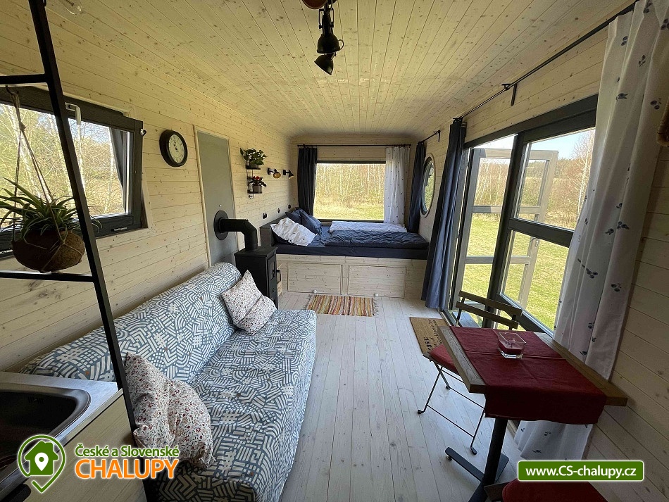 Glamping v přírodě Středočeského kraje, poloha nedaleko Prahy, kousek od lesa a řeky Jizery - maringotka je jako stvořená pro romantiku ve dvou, avšak přijeďte klidně i s dětmi - nedaleko je jezero Lhota a rodinný park Mirakulum. Cyklisté uvítají blízkou cyklostezku u Jizery. Přímo z maringotky koukáte na krásný les vhodný na procházky, cyklistiku, či sběr ostružin a hub. POPIS - vybavení: Vybavení: dvojlůžková postel pro dvě osoby s matrací (180×220 cm) a s lůžkovinami, plně vybavená kuchyň (elektrická indukční deska, hrnce, konvice, kávovar Nespresso, hrnky, sklenice, talíře, příbory, otvírák), lednička s mrazákem na led, ekologické hygienické prostředky (jar, mýdlo), základní potraviny (sůl, cukr, pepř, káva v kapslích, čaj), balená pitná voda, teplá i studená voda ze studny na mytí, sprchování, mytí nádobí, sprchový kout, splachovací WC, ručníky, základní toaletní potřeby, elektrický topný žebřík na ručník, kamna a dřevo na topení, terasa s venkovním posezením, relaxační houpačka na meditaci nebo čtení, venkovní ohniště a dřevo, zásuvky (i venku), parkování 50 m od maringotky, hrací karty a hasicí přístroj. Okolí: V létě se můžete vykoupat v řece Jizeře, či nedaleké známé pískovně Lhota, nebo v klidnější pískovně Konětopy. Vodáci mohou využít nedaleké půjčovny lodí a zažít jednodenní 16 km úsek na Jizeře s odvozem. Večer si můžete rozdělat oheň, opéct buřty, či jen tak relaxovat. Po ránu celkem jistě spatříte z okna srnky, zajíce, či bažanty. Turistická místa v okolí: Zámek Benátky nad Jizerou, kde se nachází Muzeum historických hraček a lapidárium (6 km), Zámek Brandýs nad Labem (12 km), Park Mirákulum (15 km), Centrum řemesel a bylinné zahrady Botanicus - Ostrá (17 km), Muzeum Moto & Velo - Přerov nad Labem (19 km), Zámek Stránov (21 km), Zámek a Labyrintárium Loučeň (24 km), Muzeum Škoda Mladá Boleslav (27 km), Zřícenina hradu Michalovice (28 km), ZOO Chleby (32 km). Koupání: Jizera - koupání v řece (150 m), Jezero Konětopy (10 km), Jezero Lhota (14 km), Probošťská jezera (15 km). Těšíme se na Vás u nás.