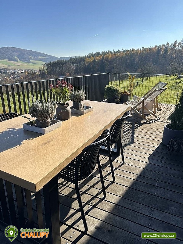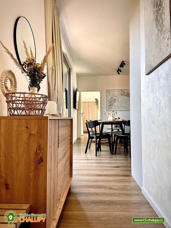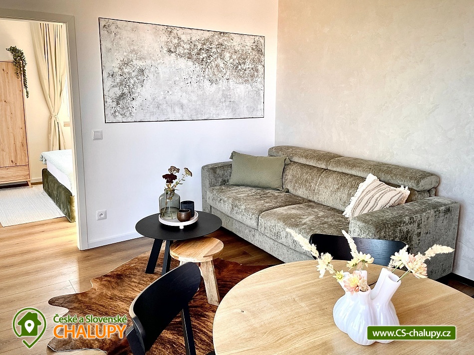 Glamping cottage with a hot tub - Valašské kopce is surrounded by Wallachian nature, where the peace of the forest naturally meets the comfort of modern living. Located on the edge of the forest in a thorn orchard above a pond, it offers privacy and a feeling of complete isolation from the outside world. The interior is airy and thoughtfully designed down to the last detail - large windows let in light and views of the landscape, while high-quality equipment ensures comfort throughout the stay. An ideal place for a romantic getaway for two, which will easily welcome a family of four thanks to a full-size sofa bed. The outdoor terrace invites you to slow mornings and long evenings - whether with coffee, barbecue or relaxation. A luxurious hot tub awaits you, which will give you a feeling of perfect peace and allow you to deeply relax in the middle of nature. DESCRIPTION of the cottage: Separate bedroom, full-size sofa bed in the living room 160x200cm. Sanitary facilities - 1x bathroom with shower and toilet. Boarding - Fully equipped kitchen. Heating - Fireplace, underfloor heating in the bathroom, electric heating. Parking at the cottage. The surrounding Wallachian hills, the silence of the forest and clean air create an atmosphere in which it is easy to slow down and forget about the everyday hustle and bustle. A stay with us is not just about accommodation, but about an experience that will not be forgotten. Surroundings: Hiking and cycling trails - the surrounding ridges and forests are interwoven with marked trails. Vysoké Pole lookout tower - a short walk with a stunning view. Čertovy skály in Lideček - a fascinating rock formation suitable for children. Lázně Luhačovice - colonnade, healing springs and atmospheric cafes. Pulčínské skály - a nature reserve with breathtaking views. ZOO Zlín - Lešná - one of the most beautiful zoos in the Czech Republic. Královec u Valašské Klobouky - a popular tourist destination with a view of the White Carpathians. Vizovice – a castle with a beautiful park. Pustevny – famous wooden buildings by Dušan Jurkovič, a statue of Radegast and beautiful ridges. We look forward to seeing you here.