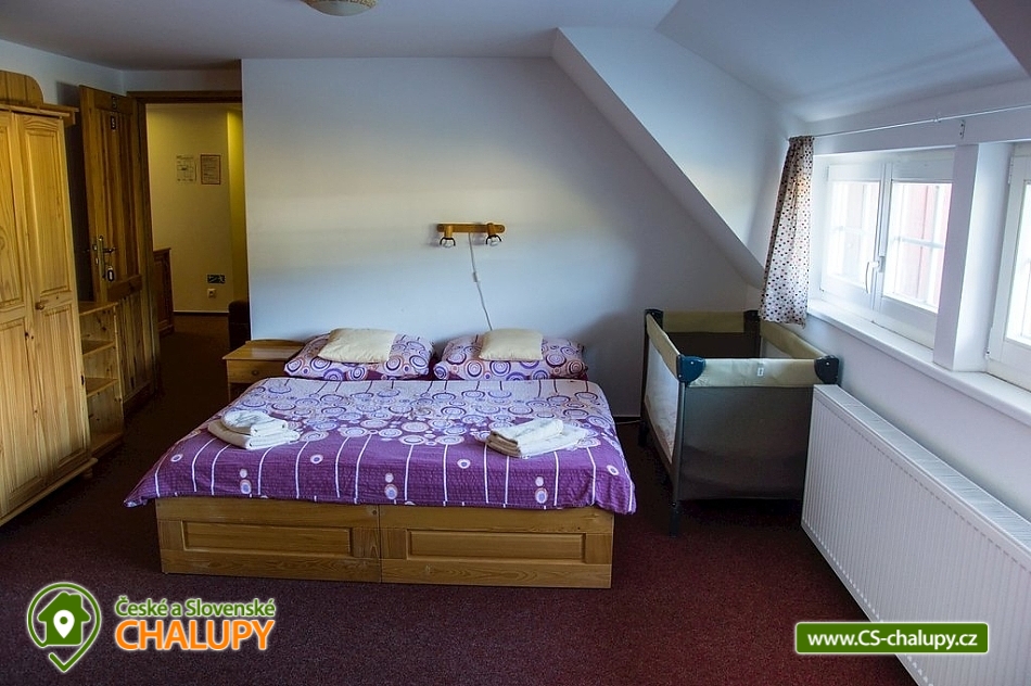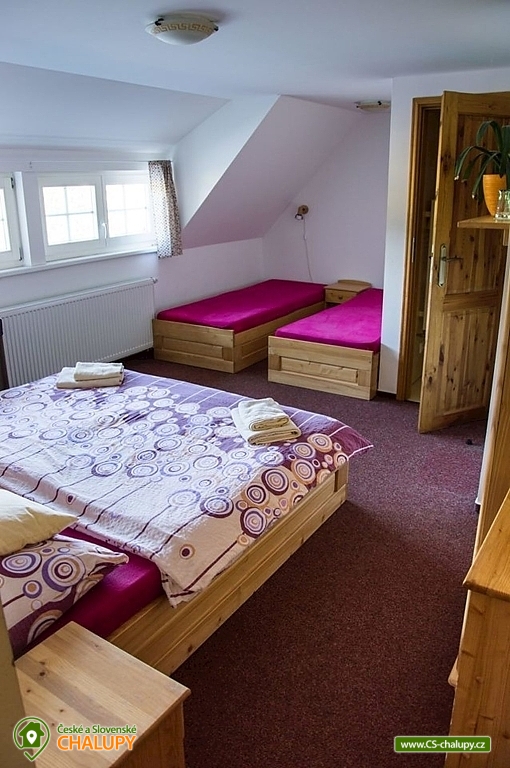 Horská roubená chalupa se saunou, vyhřívaným koupacím sudem, solnou jeskyní a s výhledem na Sněžku se nachází ve východní části Krkonoš v obci Horní Malá Úpa, kde si můžete užít pravou horskou atmosféru. Chalupa Vás nadchne nejen svým typickým vzhledem, ale i překrásným výhledem do krajiny, kde se tyčí Sněžka a z protějšího lesa Vám srnky přijdou dát večer dobrou noc. Chalupu je možno pronajmout jako penzion se snídaní nebo polopenzí a nebo bez stravování jako chalupu. Celková kapacita je až 25 lůžek. Na výběr máte z těchto pokojů: jednoho 2-lůžkového pokoje s manželskou postelí (pokoj č. 5), dvou 2-lůžkových pokojů s manželskou postelí a jednolůžkem (pokoj č. 10) nebo dvěma přistýlkami (pokoj č. 4) na rozkládacím křesle, dále jeden 3-lůžkového pokoj s manželskou postelí, samostatným lůžkem a přistýlkou na rozkládacím křesle (pokoj č. 6), a nakonec tři 4-lůžkové pokoje (č. 7, 8 a 9) s manželskou postelí a dvěma samostatnými lůžky. Všechny pokoje disponují kromě příslušného počtu lůžek i vlastní koupelnou se sprchovým koutem, umyvadlem, ručníky a toaletou. V objektu mohou hosté využívat bezplatné WiFi připojení na internet. Hosté během pobytu mají k dispozici jídelnu s krbem a barem, kde si mohou dopřát různé speciality, objednat snídaně nebo polopenzi a ochutnat širokou škálu míchaných nápojů. Dětičky se potěší prolézačky, houpačce a skluzavce. Blahodárný relax na tělo i duši si dopřejete v solné jeskyni a finské sauně nacházejících se přímo v objektu. Pokud přijdete s maličkými dětičkami, pro tyto Vám zajistíme dětskou postýlku. Vaše auta bezpečně zaparkujete u chalupy a v zimě na nedalekém parkovišti, odkud Vás odvezeme na zimních skútrech. Tak neváhejte a přijďte si k nám užít skvělou dovolenou s výbornými službami a skvělým jídlem. Horní Malá Úpa patří mezi okouzlující a klidnou část Krkonoš, odkud vedou tři krásné turistické trasy s různou náročností, přímo až na vrchol Sněžky. V zimním období si jen nasadíte běžky přímo u chalupy a užijete si krásně upravené běžkařské tratě. V blízkosti se nacházejí dvě nenáročné sjezdovky Pomezní Boudy a U kostela. Těšíme se na Vás u nás.