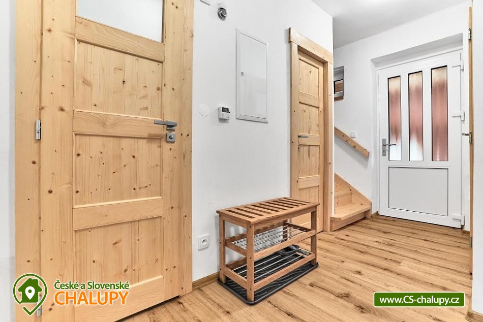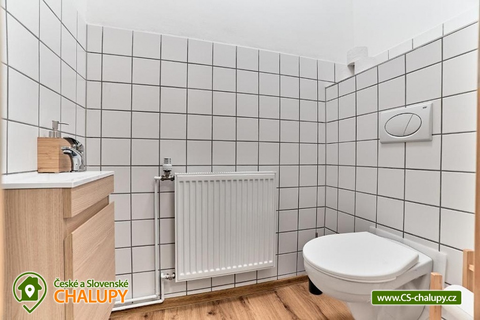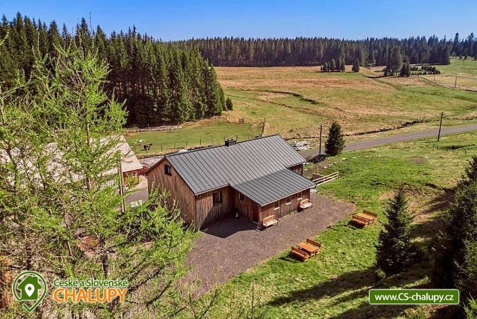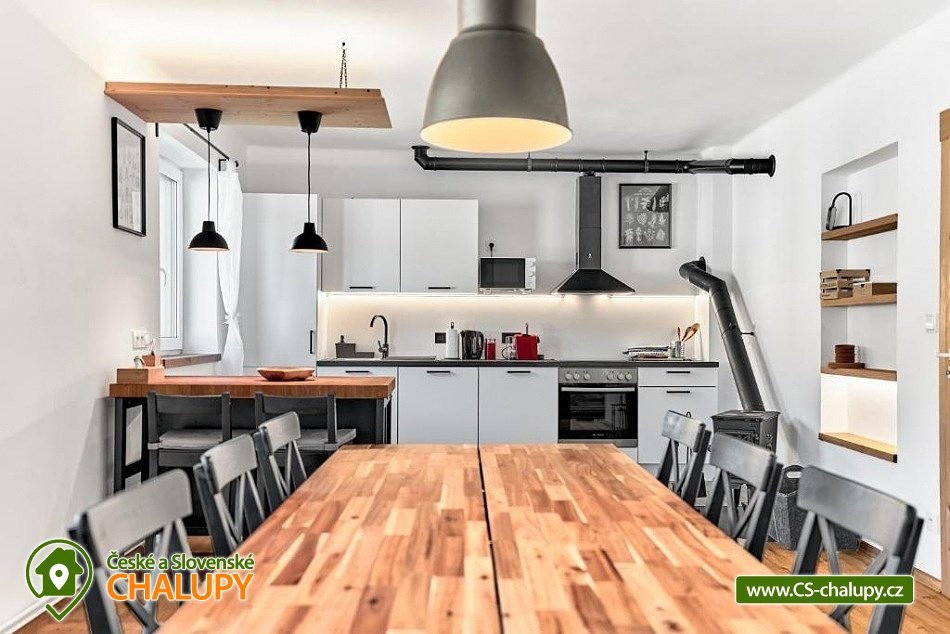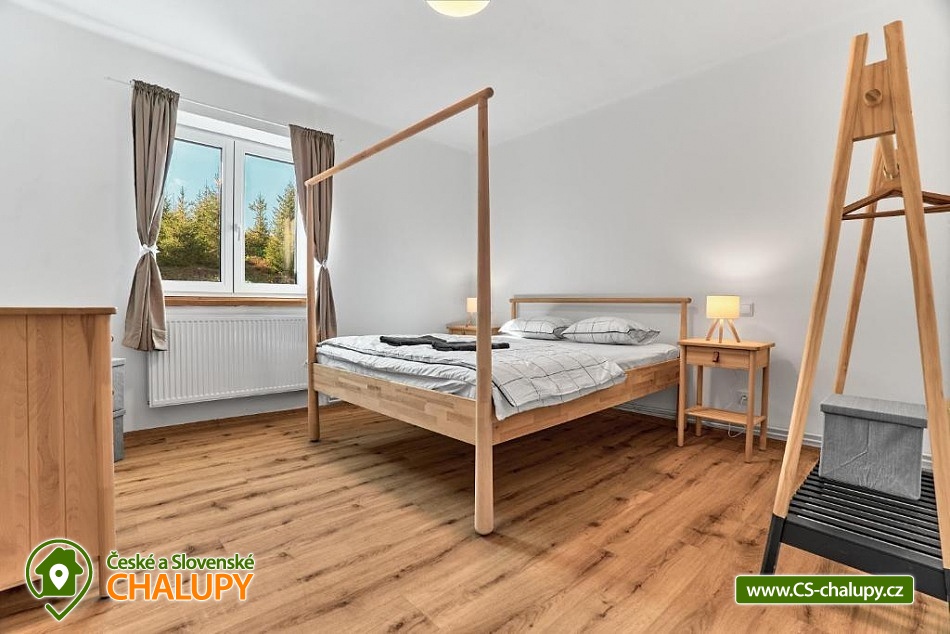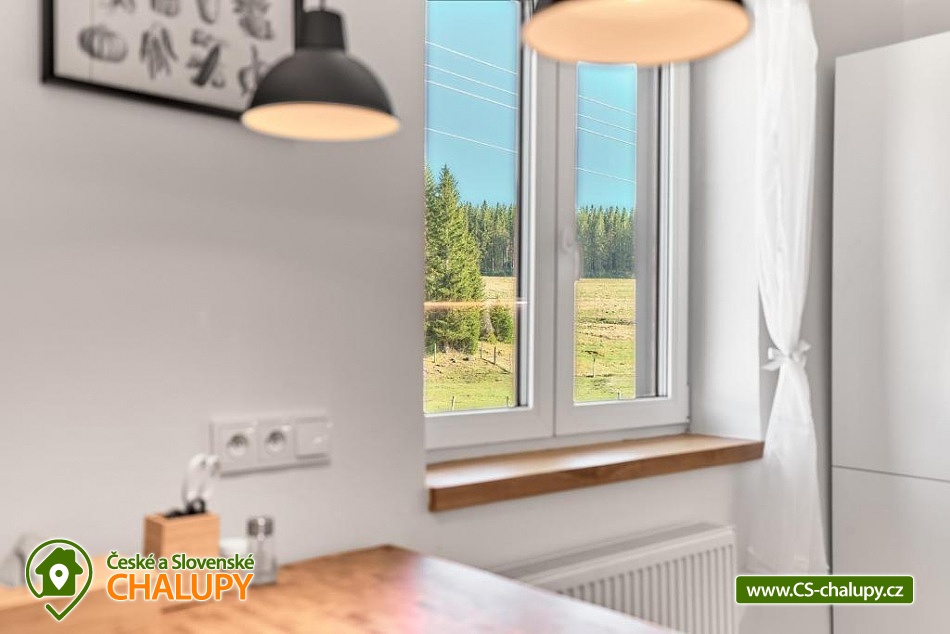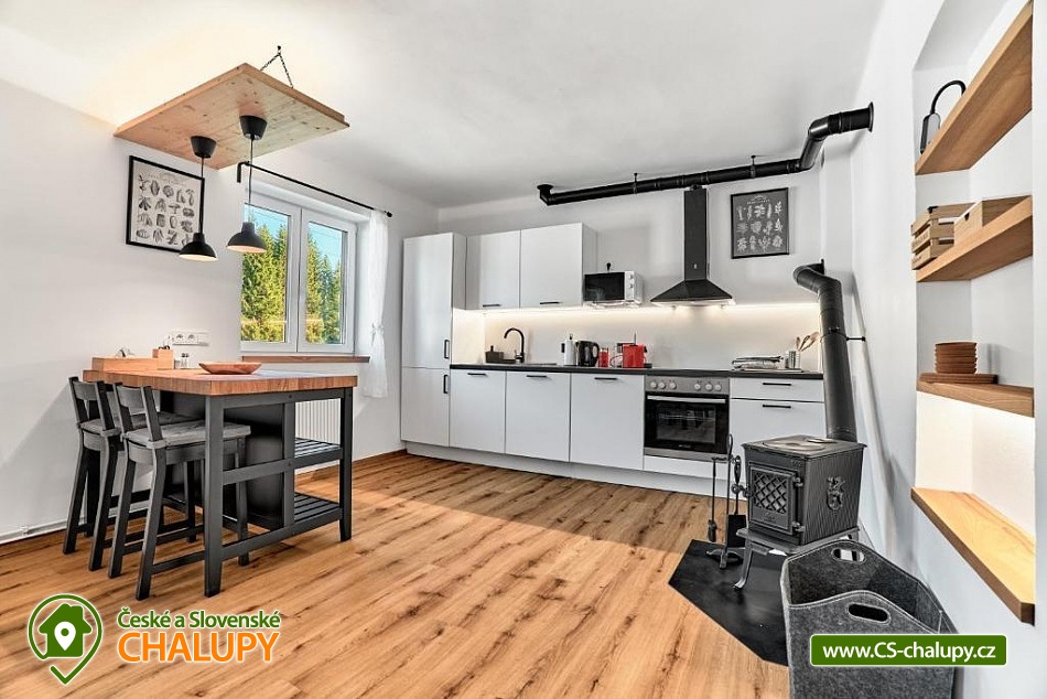 Comfortable mountain chalet (2 apartments 8 + 8 people) by the Bukový potok stream in the Ore Mountains. The location near the natural monument Rolavská vrchoviště and the village of Horní Blatná - the location in close proximity to the state border with Germany offers countless options for summer and winter activities - from hiking trails and cycling paths leading through virgin landscapes to cross-country skiing trails and nearby ski slopes for winter sports enthusiasts. The capacity of the modern mountain chalet is up to 16 people in 2 apartments (8 + 8 people). Two spacious Nordic-style apartments are ideal for families and friends looking for a place to relax and have some adventure. A designer interior, fully equipped kitchen, Wi-Fi, free parking and magical nature all around await you. DESCRIPTION: Both apartments offer - Widescreen LED TV with standard programs and the ability to connect Netflix and other services. Wi-Fi High-speed connection. Fully equipped kitchen - refrigerator, dishwasher and tablets, oven, microwave, induction hob, toaster, coffee maker and kettle. Bedroom No. 1 - large double bed, Bedroom No. 2 - 6 single beds and Living room - sofa bed. Bathroom with shower, separate toilet. Parking at the house. Guests have access to a common room for storing bicycles, skis and other equipment. Both apartments have their own seating area in the garden. Surroundings: Nové Hamry is a picturesque mountain village in the Ore Mountains, ideal for lovers of peace, nature and active relaxation. In winter, there are groomed cross-country ski trails and a smaller ski area suitable for families with children. In summer, they are a great starting point for hiking and cycling trips. The lookout tower on Tisovský vrch (Pajndl) with a view of the entire Ore Mountains, or Jelení vrch, from where there is a beautiful view of the valley, is worth a visit. The surroundings are interwoven with marked trails and invite you to walk through the forest and to take trips to technical monuments, such as the remains of mining and iron smelting. Many tourist trails, along which you can ride a bike and in winter cross-country ski. A trip to Karlovy Vary is also worth it. In Boží Dar there is the so-called Jesus' path, great fun for children.