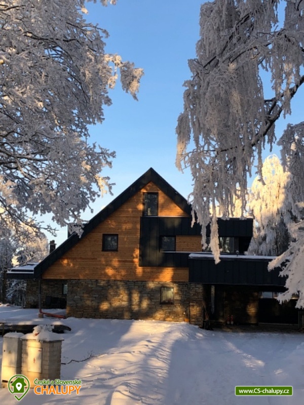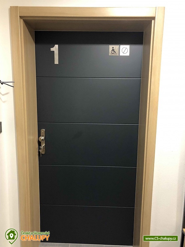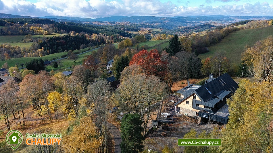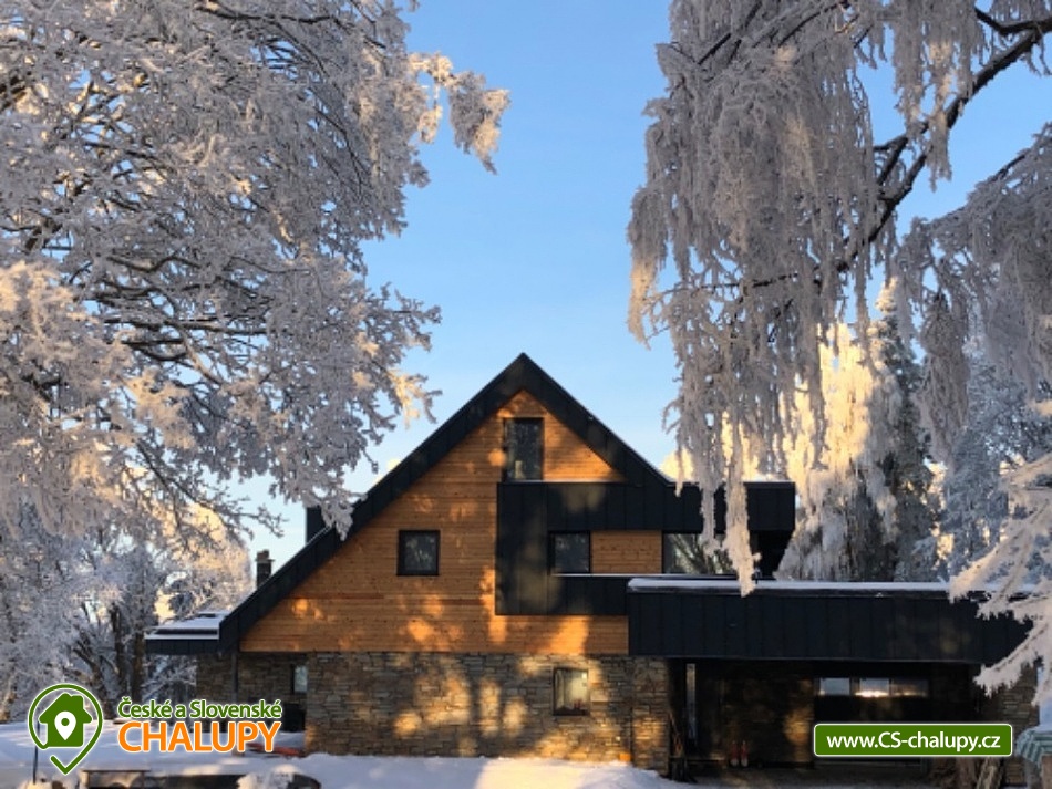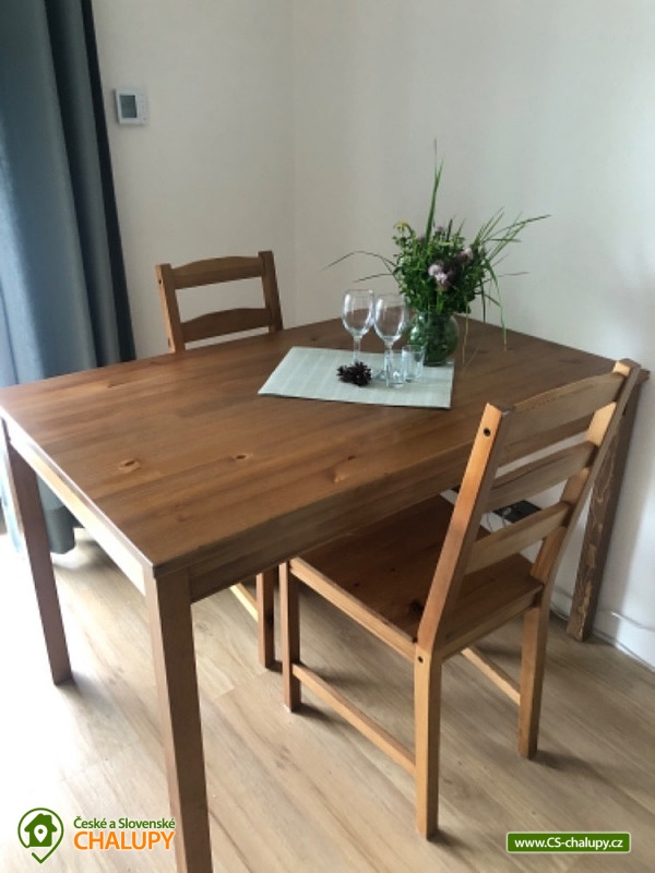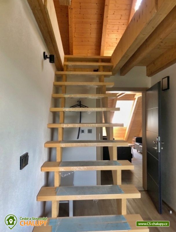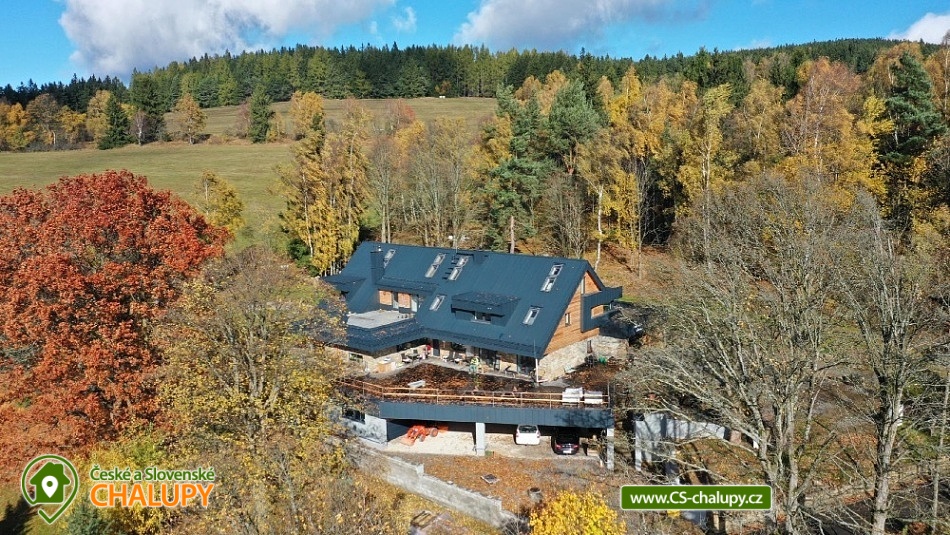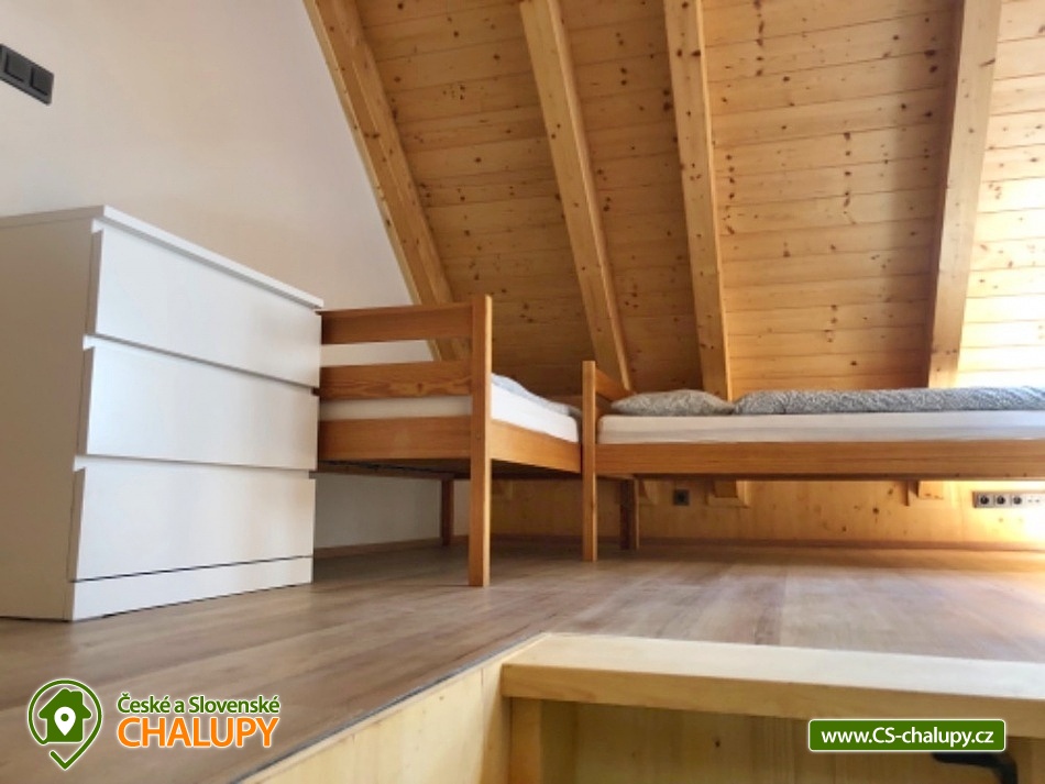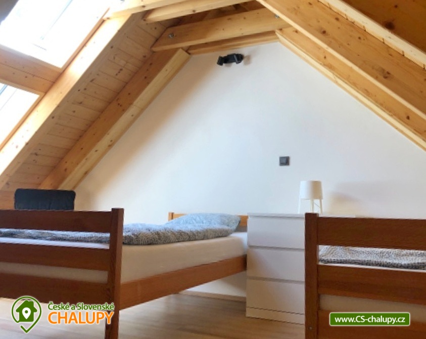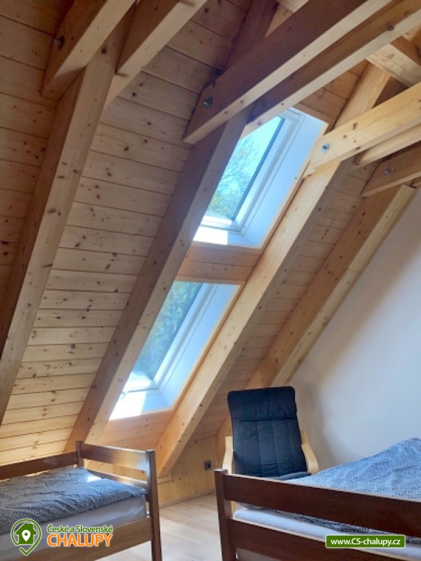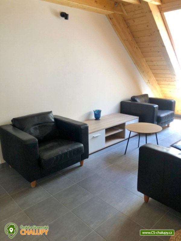 Mountain chalet in the picturesque Šumava region near the town of Kašperské Hory in the village of Nicov with a romantic surrounding landscape. In the vicinity of the towns of Stachy, Zadov and Vimperk. The chalet can be rented as a whole with a capacity of 18 people or each room/apartment separately. You can stay in five fully equipped accommodation units. Each accommodation unit is equipped with its own bathroom with a sink, shower and toilet and a fully equipped kitchen (dishes, fridge, freezer, two-burner stove, microwave and kettle). On the ground floor there are two double rooms, one of which also allows accommodation for disabled guests. The attic offers two five-bed apartments and one four-bed apartment. Each is equipped with a separate bunk bed sleeping floor (in the gable of the chalet). Apartment no. 5 also has a terrace. Each accommodation floor has a common area. The lower common room allows for various training sessions, meetings, lectures or refreshments during celebrations. The upper common room allows for gatherings outside the apartments. The building is heated by underfloor heating. Direct heating is available in AP 3, 4 and 5 for an additional fee. Wi-Fi access and the possibility of storing bicycles and skis in a separate lockable storage room are available. Parking directly in front of the building. There is an outdoor seating area at the cottage. In the area you can go hiking, cycling, mushroom picking, skiing or cross-country skiing. Swimming options: swimming pool Luh u Sušice, swimming pool Vimperk, swimming pool Kvilda, swimming pool Hartmanice. In winter, the proximity of cross-country skiing trails and ski areas Javorník and Zadov-Churáňov is an advantage. Zadov-Churáňov is one of the most famous cross-country skiing centers in the Czech Republic. Tips for trips: nearby Královský kámen, Klostermann's lookout tower, Kašperk Castle, lookout tower on the Sedlo, Rabí Castle, Vimperk Chateau, Velhartice Castle, the town of Kašperské Mountains, Sklařská Huť, Firefighter Museum Stachy, Kvilda, and Modrava. We look forward to seeing you at our place.