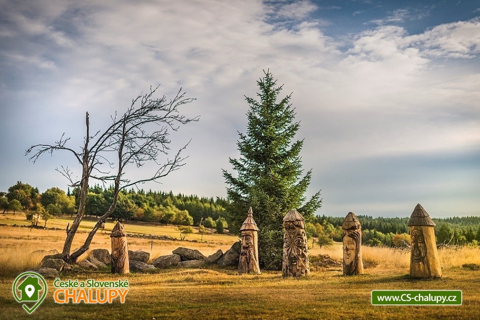 Horská chata Krušné hory - poloha nedaleko lokality Eduardova skála a Lesenská pláň. Horská chata se nachází na vrcholcích Krušných hor (6 km od státní hranice se SRN) s nádherným výhledem do krajiny v nadmořské výšce 911m. Kapacita chaty je 6 pokojů s 20 lůžky. Na některé pokoje lze přidat celkem až 6 přistýlek, čímž se rozšíří celková ubytovací kapacita na 26 lůžek. Pokoje: pokoj č. 1 (4 lůžka), pokoj č. 2 - (3 lůžka), pokoj č. 3 - (4 lůžka), pokoj č. 4 - (3 lůžka), pokoj č. 5 - (2 lůžka) a pokoj č. 6 - (4 lůžka). V celé budově jsou celkem 3 koupelny. V přízemí je sauna s masážním koutem, menší místnost, místnost s kuchyňským koutem a zejména prostorný sál, kde je možné pořádat různá firemní školení, svatby, semináře, workshopy apod. Sál je vybaven interaktivní tabulí propojenou s notebookem a dataprojektorem. Celý objekt je pokryt Wi-Fi signálem. Za budovou se nachází prostorné parkoviště, dětské hřiště, ohniště k pronájmu, geopark, arboretum, zážitková naučná stezka (průvodce je skřítek), rozcestník turistických značek, lokalita oblíbená pěšími turisty i cyklisty, v zimě počátek běžkařských stop Krušnohorské bílé stopy, půjčovna běžek (lze zajistit i instruktora). V blízkosti areálu jsou skalní útvary pro lezení (taktéž můžeme zajistit instruktora). Při svých výletech zdejší krajinou nebudete narážet na davy turistů a budete si moci vychutnat krásu přírody plnými doušky. Ve vzdálenosti 500 m se nachází Horský hotel, kde je bar s restaurací s celotýdenním provozem, možnost grilování, víceúčelové sportovní hřiště s nočním osvětlením, půjčovna sportovního náčiní. U hotelu se nachází Krušnohorské muzeum – je tvořeno třemi, pro Krušné hory, typickými stavbami – modelem 1:1 Krušnohorského lidového domu, funkční zvonicí svatého Antonína a novým objektem hrázděného domu. V Horském areálu se konají téměř každý měsíc atraktivní akce, jako jsou např. Mezinárodní závody psích spřežení, Velikonoční jarmark, Dětský den – Pohádková Lesná, Řezbářské sympozium, Šlapání zelí, Adventní neděle, Tříkrálová nadílka. Těšíme se na Vás u nás.