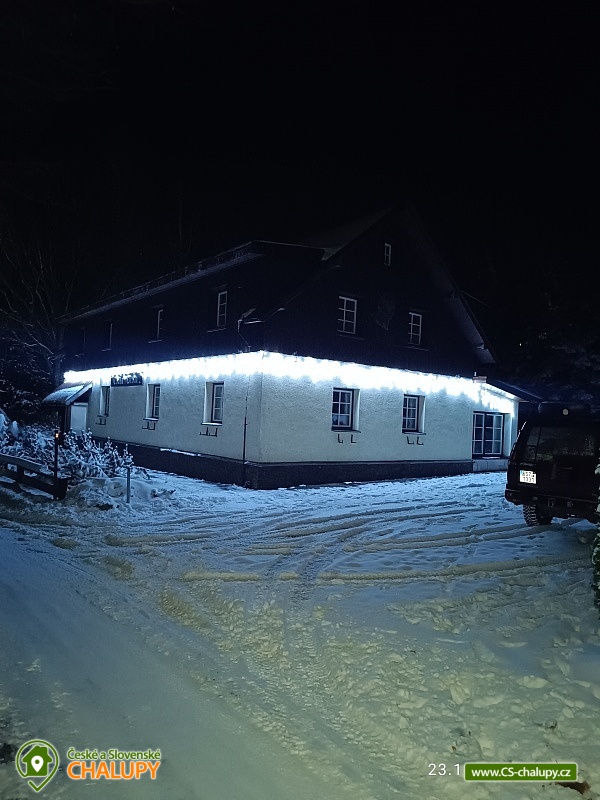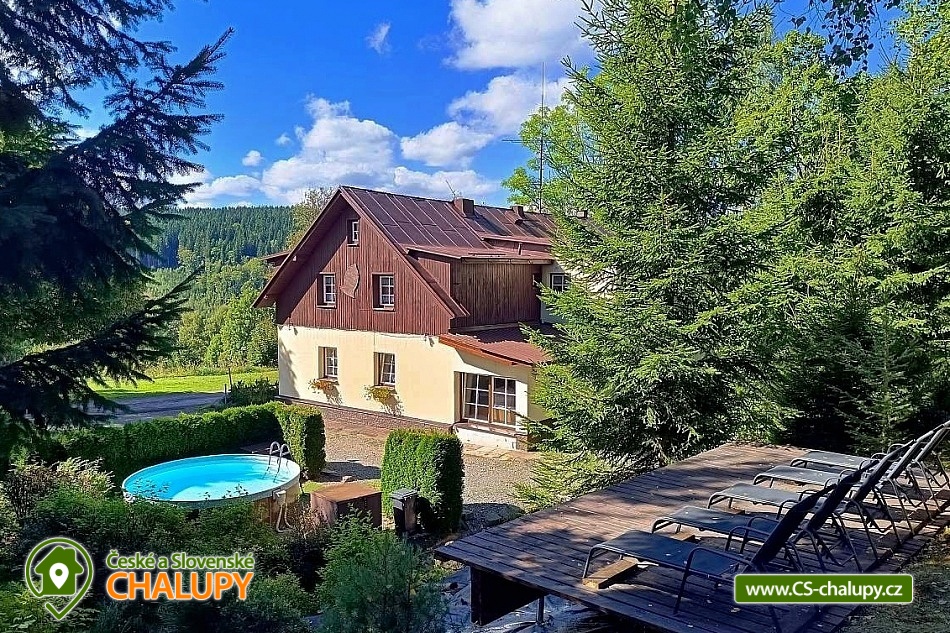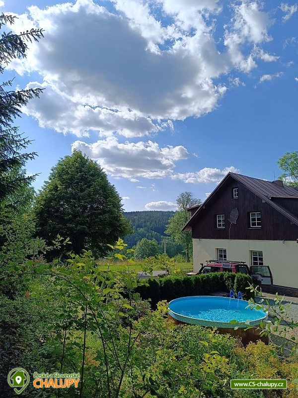 Rent cottage Děvín - Zdobnice. Rent of cottage Orlické hory. Horská Chata Děvín is located in the quiet and most beautiful place of the mountain village Zdobnice in the Orlické Mountains, directly above the skiing area overlooking the slopes. On the ground floor of the cottage there is a spacious kitchen (electric stove, fridge, microwave, coffee maker, electric kettle, kitchenware) with a dining area for 25 persons and a common room (table football, electric darts, drafts, billiards, TV). With toilet. There are 3 separate apartments in the cottage (the property is always rented as a whole). 1. AP is on the ground floor and has two rooms, the first room has a total of 4 beds (1x bunk bed, 2x single bed). The second room has a total of 3 beds (1 bed, 1 double bed). Separate toilet, shower and smaller kitchenette with el. Stove, el. Oven and kettle. 2. AP is on the first floor and has three rooms. First room with 1 single bed and TV. The second room has 4 beds (2x double bed). The third room has 4 beds (1x bunk bed, 2x single bed). Separate toilet and shower. 3. The AP is also upstairs and has three rooms. The first room has a total of 4 beds (1x bunk bed, 2x single bed). The second room has a total of 4 beds (1x bunk bed, 2x single bed). Third room in total 1 single bed and TV. Bathroom with toilet and shower. Infrasauna available. The building is heated by central heating with an automatic coal boiler. In the vicinity of the cottage there is a free uncovered area offering a pleasant sitting in the garden furniture by the fireplace or the fireplace or swimming in the outdoor pool (3.5 m). For children sandpit, swings, children's monkey track and trampoline with a diameter of 3m. Accommodation in Děvín v Orlických horách in Zdobnice in the summer offers ideal conditions for cyclists, ie mountain roads and roads crossing the Orlické Mountains almost without traffic, diverse terrain, interesting nature and many cultural monuments far from the industrial centers. Zdobnice is located in the heart of the protected landscape area of Orlické hory and is an ideal starting point for hiking and cycling. The Zdobnice municipality runs through the main cycle path of the Orlické Mountains, which connects Deštné in the Orlické Mountains, Říčky and Bartošovice. The cottage in the Orlické Mountains is also used to accommodate mushroom picking and fishing lovers. Accommodation Orlické hory - in winter: The cottage welcomes you in the quiet ski resort of Zdobnice in the Orlické Mountains. Strenuous skiers can take advantage of downhill runs in the centers of Říčky in the Orlické Mountains or Deštné v Orlických horách. Location in the middle of the protected landscape area of Orlické hory and altitude of 680 m. Is also suitable for cross-country skiers. After 5 km of climbing on a machine-prepared cross-country trail, you will reach the main skiing route of the Orlické hory Jirásek route, which connects the highest mountain of the Orlické Mountains with the Big Deštná and Komáří vrch. From the ski trail there is a beautiful view of the whole Orlické hory, the Jeseníky mountains and the landscape of eastern Bohemia and southern Poland. For lovers of cross-country skiing, the Zdobnice Circuit with beautiful views, which measures nine kilometers and connects Zdobnice with the village of Říčky in the Orlické Mountains, is also adapted. For relaxation after strenuous skiing you can also use the swimming pool in Rychnov nad Kněžnou.