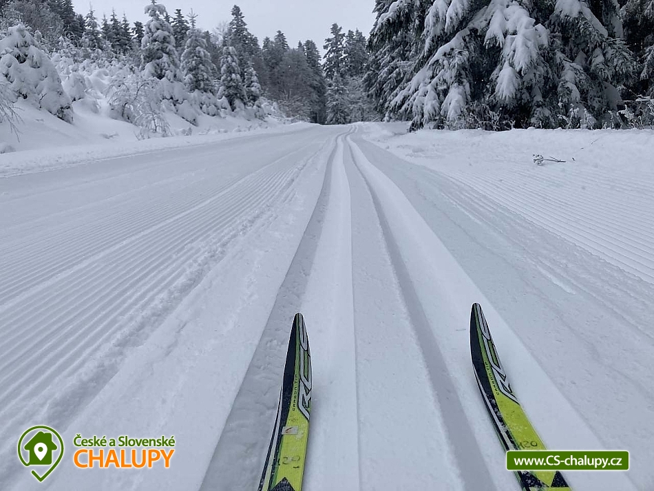 Horská chata Šumava je apartmánový dům, který je součástí Šumavských Strání na Brčálníku v obci Hojsova Stráž na Šumavě v údolí Úhlavského potoka. K pronájmu nabízíme Apartmán - plně vybavený nekuřácký apartmán 2+kk o výměře 56 m2 se samostatným vchodem a samostatnou ložnicí, balkónem s výhledem na hřeben Královského Hvozdu a plně vybaveným kuchyňským koutem. Apartmán poskytuje ubytování pro až 4 osoby. K apartmánu přináleží sklepní kóje, kde si lze uložit kola, kočárky nebo lyže. POPIS: Obývací pokoj: Rozkládací pohovka pro celoroční spaní s kvalitní matrací, pracovní stůl, WiFi, smart TV (možnost přehrávání zpětné TV). Ložnice: Manželská postel, vestavná skříň, dětská postýlka, trezor. Kuchyň: Plně vybavená kuchyňská linka, indukční varná deska, myčka nádobí, kombinovaná mikrovlnná trouba s troubou, konvice na indukci, lednice s mrazákem, mycí prostředek, tablety do myčky, utěrky. Předsíň: Věšák, vestavná skříň, pračka se sušičkou. Balkón: Stolek se židlemi. Sociální zařízení: V koupelně WC, sprchový kout, fén, topný žebřík, umyvadlo, ručníky, osušky, nočník. Vytápění elektrokotlem. Sklep (4m²): Mazací kopyto na lyže, držáky na kola, vysoušeč bot, zásuvka pro dobíjení elektrokol. Při příjezdu můžete zastavit před budovou přímo před apartmánem, po vyložení věcí pak prosím přeparkujte Váš vůz na vyhrazené parkovací stání před sousední budovou. V místě můžete zrelaxovat také v sauně, která se nachází v sousedním domě. V okolí - Na běžky: Co víc si přát... Šumavské zasněžené pláně, třpytící se tisíce ledových krystalků. Při každém vydechnutí se do vzduchu uvolní obláček páry. Člověk klouže a klouže světem ticha a jeho myšlenky se zklidňují. Jen tak brázdí krajinu s prázdnou hlavou.... Na kolo: Stovky kilometrů značených cyklotras a dalších lesních silniček bez provozu jsou pravým eldorádem pro cykloturisty. Turistika: Šumava nabízí jedinečné podmínky k prožití dovolené plné zážitků. Naučná stezka Brčálnické mokřady. V blízkosti zastávky vlaku Hojsova Stráž - Brčálník začíná 4,5 kilometru dlouhá okružní naučná stezka. Černé jezero: Černé jezero je rozlohou největší na Šumavě. Své jméno dostalo od zdánlivě černé barvy vody jezera, vznikající odrazem okolních hustých lesů. Čertovo jezero: Jezero leží na jižním svahu Jezerní hory ve výšce 1030 m n. m.. Podle pověsti je zde prý utopen ďábel. Hřebenovka Pancíř - Můstek - Prenet celkem 16 km krásný výlet vhodný i pro rodiny s dětmi. Malé Javorské jezero - Kleiner Arbersee: Kolem jezera vede zajímavá turistická stezka - okružní procházka trvá ¾ h. Jezero je vhodné ke koupání. Těšíme se na Vás u nás.