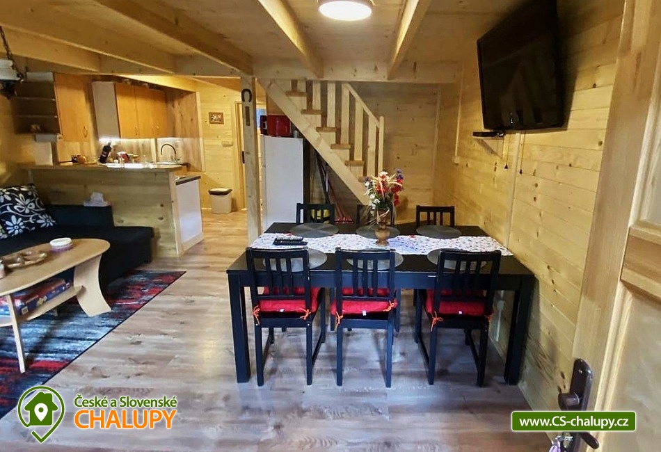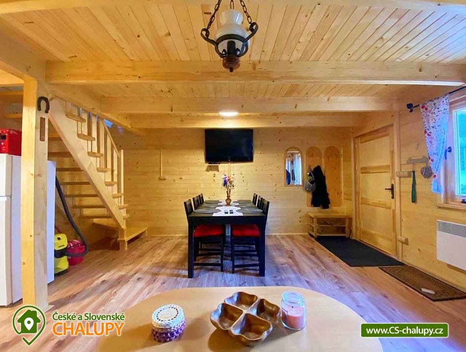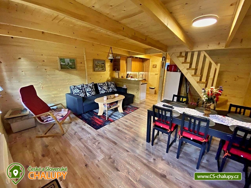 The Hanička Cottage is located in a quiet part of the village of Velké Losiny, in the picturesque foothills of the Hrubý Jeseník Mountains, near thermal baths and popular ski areas. The village also includes the Velké Losiny chateau and handmade paper mill. During your stay, you can look forward to a terrace with seating or relax in the outdoor pool. The cottage provides accommodation for 9 people in 3 bedrooms. In the attic there is a 3-bed bedroom (3x single beds) and a 2-bed bedroom (2x single beds). A cot is available. On the ground floor you will find a 2-bed bedroom (1x double bed) and 2 extra beds (sofa bed) in the living room. There is also a coffee table, TV, fireplace and dining area. The living room is connected to a fully equipped kitchen (dishwasher, oven, fridge with freezer, hob, kettle, microwave, coffee maker and dishes). The bathroom includes a bathroom with a shower, sink and toilet. Heating is provided by electric heaters (additional heating with a fireplace is possible). There is free WiFi internet access throughout the property. The cottage is surrounded by a fenced garden with a grassy area. You can spend your free time on the terrace with seating or in the outdoor pool. You can relax on the garden swing. There is also a wooden seating area with a fireplace and a grill. The little ones will appreciate the children's playground with a sandbox, slide, swings and trampoline. Parking is available directly at the property (max. 4 cars). In the area around the cottage there is the possibility of hiking, cycling, swimming, mushroom picking, fishing, skiing and cross-country skiing. Swimming options include: Velké Losiny thermal spa, Rapotín swimming pool, Velké Losiny thermal swimming pool, Šumperk - Bratrušák swimming pool, Krásné dam, Šumperk - Aquacentrum swimming pool, Ruda nad Moravou swimming pool, Bludov - Vlčí Důl swimming pool or Karlova Studánka swimming pool. Fishing is possible in the Kocián pond in Loučná nad Desnou. Nearby ski resorts are available, for example: Kouty nad Desnou, Ski Center OAZA - Loučná nad Desnou, Kocián - Loučná nad Desnou, Sobotín, Vernířovice - Brněnka, Kareš - Kouty nad Desnou, Přemyslov or Klepáčov. The surrounding area is attractive for trips: the Velké Losiny handmade paper mill, Velké Losiny chateau, Velké Losiny pralines, Velké Losiny spa, Bukovka lookout tower, Loučná nad Desnou chateau and chateau park, Dlouhé stráně power plant, Sobotín chateau resort, Praděd, Šumperk (Museum of Witch Trials and Museum of Roads), etc. We look forward to seeing you here.