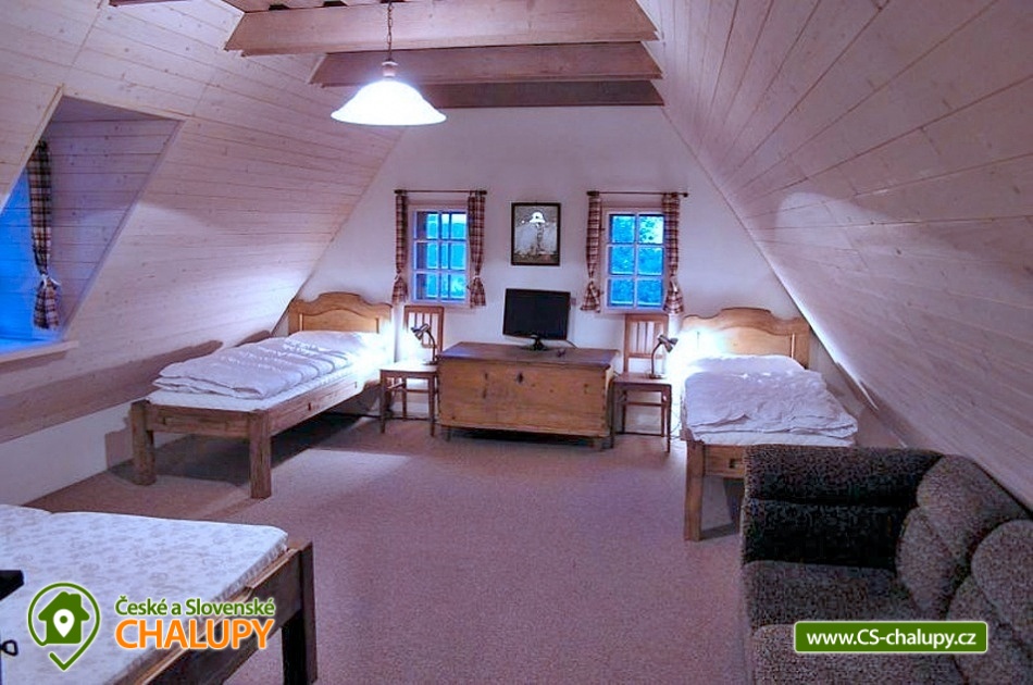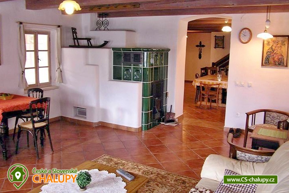The original, spacious, sensitively reconstructed and partly barrier-free Maruška Cottage is located on the outskirts of the village of Velké Losiny in the flat valley of the Desná River below the main massif of the Jeseník Mountains at an altitude of around 450 m above sea level. Due to its ideal location, the Cottage offers many possibilities for summer and winter tourism. In Velké Losiny you can visit the castle, the Handy paper mill or the spa, including the new thermal water park. In winter, the close proximity of the Loučná nad Desnou ski area (approx. 5 km) is an advantage. During your stay, you can look forward to pleasant outdoor seating and relaxation in the sauna or hot tub. The period-furnished Chalupa Maruška offers accommodation for 14 people, there is one double and three-bed bedroom on the ground floor, two four-bed bedrooms in the attic and a single bed in the hall serving as an extra bed (by arrangement for up to 2 people). Two cots and a high chair are available for rent. The entire ground floor of the cottage is wheelchair accessible. There is a spacious room with a dining table and a fully equipped kitchen (electric stove, microwave oven, dishwasher, two refrigerators, espresso coffee machine, coffee maker, toaster, portable electric grill). From the kitchen you can walk into the living room, which is dominated by a beautiful tiled stove, and there is also a corner sofa, a table with chairs, a bed and a TV. There are a total of 5 modern TVs with internet and satellite connection available throughout the cottage. The sanitary facilities include one bathroom on the ground floor with a wheelchair-accessible shower, bathtub, sink and toilet and one bathroom on the first floor with a shower, sink and toilet. There is an automatic washing machine. Upon agreement, an electric lift for disabled people can be provided above the bathtub and near the bathing barrel. Heating is provided by electric underfloor heating and a tiled stove in the kitchen with central distribution of warm air throughout the cottage. An indoor heat pump unit (heating and cooling) is also located in the center of the kitchen. A high-speed powerful WIFI internet connection is available throughout the building and partly in the garden. Around the cottage is a fenced and well-maintained plot (1,500 m2). You can sit on the outdoor covered terrace or in the garden house. There is an outdoor fireplace for barbecuing. You can relax in the Polar Aqua King thermal massage tub from a Finnish manufacturer with thermal heating, filtration and a whirlpool for up to six people or in the Finnish sauna. In the summer months, you can cool off in the circular plastic pool with a diameter of 3.7m with sand filtration. A sandpit and a swing are available for children. You can park directly at the building. In the surroundings of the cottage, hiking, cycling, swimming, fishing, mushroom picking, cross-country skiing and skiing are possible. There is a riding stable and tennis courts nearby. Swimming options include, for example: Velké Losiny thermal swimming pool, Velké Losiny - thermal baths, Rapotín swimming pool, Krásné dam, Šumperk - Bratrušák swimming pool, Šumperk - Aquacentrum swimming pool, Ruda nad Moravou swimming pool, Bludov - Vlčí Důl swimming pool, Domašov - Bělá pod Pradědem swimming pool , etc. In winter, nearby ski resorts are available: Ski area Loučná nad Desnou, Ski area Kouty nad Desnou, Ski area Přemyslov, Červenohorské Sedlo or Ramzová. The Dlouhé Stráně pumped water power station, the Hanušovice Brewery Museum, Petříkov - Bobsled track, Dlouhé Stráně - descents on mountain bikes, scooters and an inline track, the Rapotín Glassworks Museum, the Na Pomezí and Na Špičáku Caves, the Path in the Clouds of Dolní Morava or the towns of Šumperk and Jeseník. We look forward to seeing you here.