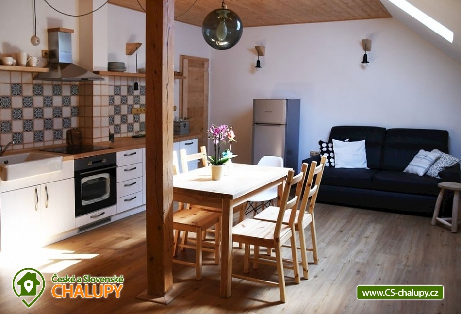 Apartments Kamenka Mičovice - Prachatice - comfortable accommodation in 2 apartments for 2x 4 people in the Šumava foothills. We offer accommodation in two apartments with an area of 42 and 45 square meters, both for a maximum of 4 people. Each apartment has a double bedroom, living room with sofa bed, fully equipped kitchen: refrigerator, dishwasher, oven, hood, coffee maker, kettle and TV. Each apartment has a bathroom and toilet. The apartments are heated by a cast iron wood stove. There is free WIFI, a garden with outdoor seating and a fireplace, as well as a storage space for bicycles. Parking is possible free of charge directly at the building. The apartments are the right place to spend time in a quiet rural environment with the possibility of various outdoor activities and trips to the surrounding area. It is an ideal place for cycling, hiking and sightseeing. Accommodation offers the possibility of rock climbing courses on the rocks in the vicinity for complete novices, beginners and intermediate and advanced. The course is also suitable for children. The village of Klenovice is located in the Šumava foothills at an altitude of 720 m. The nearby southern part of the Šumava Mountains attracts trips to nature. The most popular destinations are Lipno, Plešné Lake, the Plechý - Třístoličník border ridge, Zadov, Borová Lada and the surrounding area.