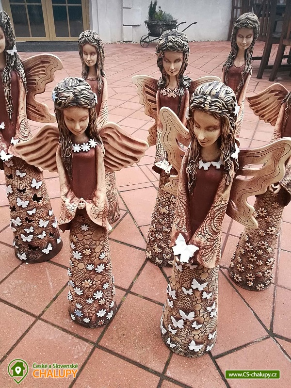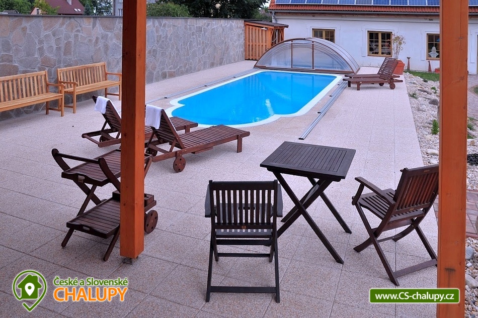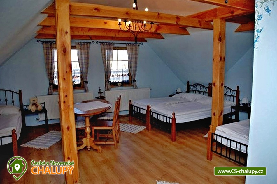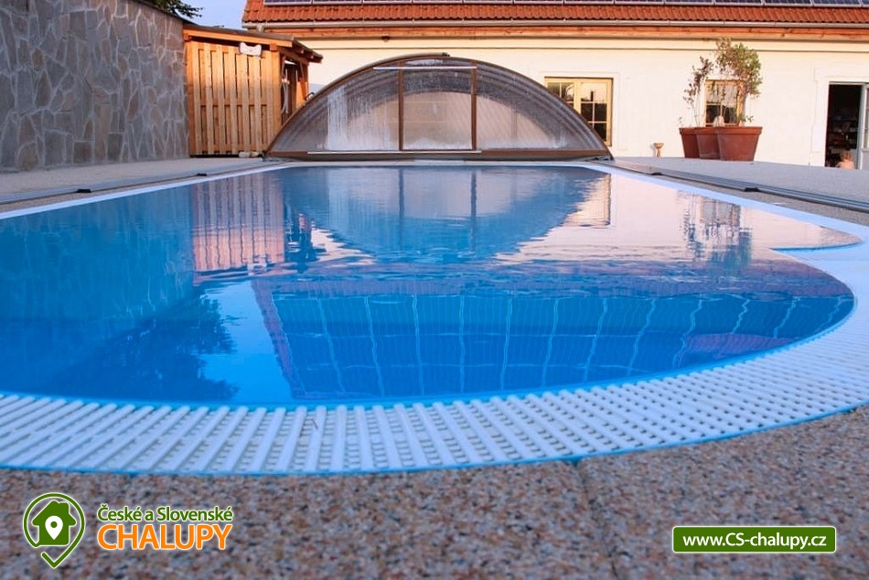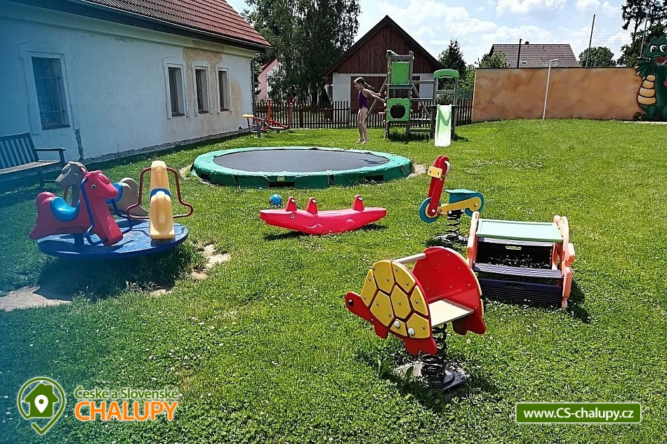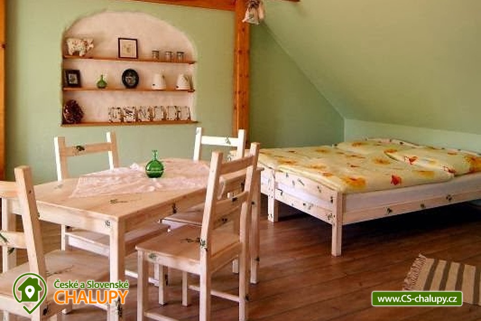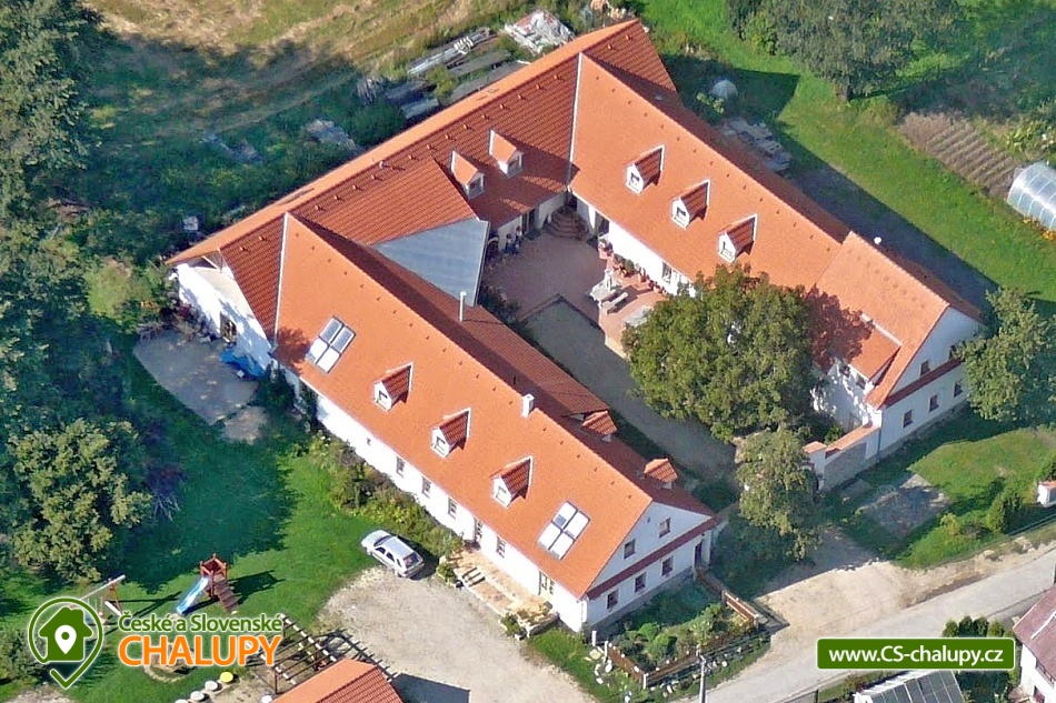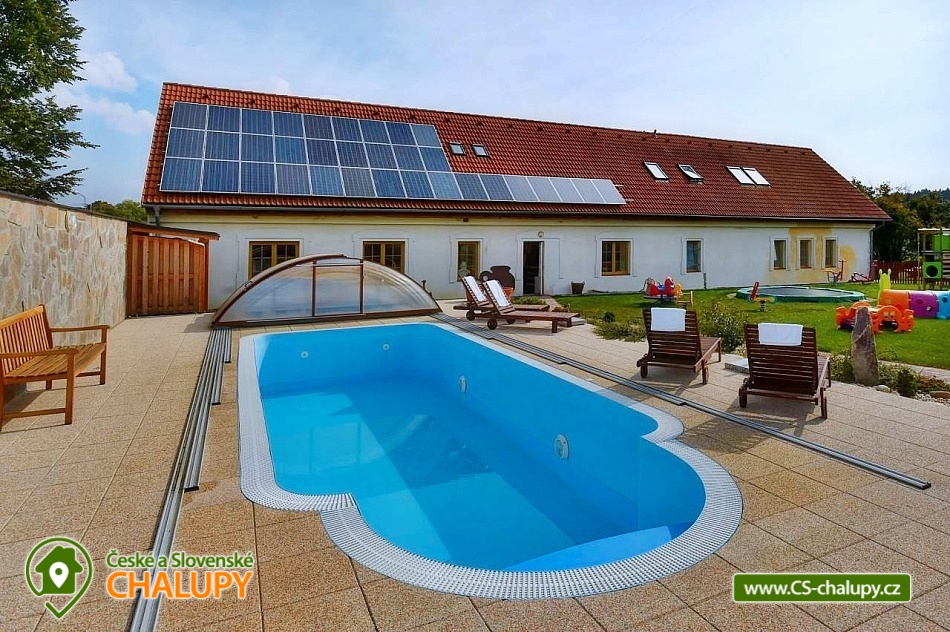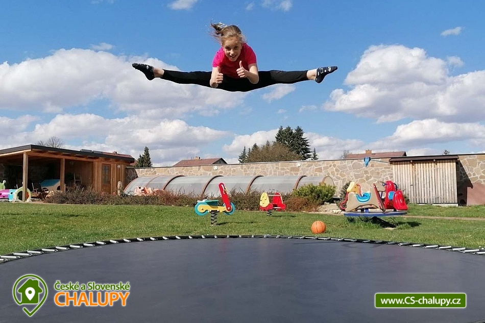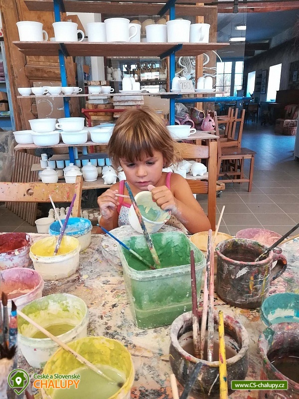 Cottage Keramika with pool is located in the picturesque landscape of southern Bohemia. We offer accommodation in a charming South Bohemian farmhouse in the village of Děbolín near the town of Jindřichův Hradec. The cottage offers accommodation for 36 beds + 7 extra beds in a total of 12 rooms (the object can be rented as a whole for 1 group, or individual rooms separately). There is an indoor swimming pool with salt water and solar water heating (in operation from June to August and depending on the weather) - unlimited access to the garden and to the pool for the guests during the entire stay. Sunbeds are available, as well as shade on a bench. Chalupa Keramika includes art workshops that you can visit during your stay with your children (they are only available to the public by appointment). DESCRIPTION: A large common room with a self-service bar with alcoholic and non-alcoholic drinks (the men's section usually appreciates a self-service tap with the option of Bernard beer on tap). There are 12 rooms (36 beds + 7 extra beds). Rooms: Right part of the cottage - Herb room for 4 people, Memory room for 5 people, Pink 2+1 people, Music room for 2 people, Sky suite for 5 people, Castle room 3+1 people, Art room 3+1 people, Studio 3+2 people , Royal room 2+1 person. Left part of the cottage - (The rooms have a separate common room available), Angel's room 3 persons, Waterman's room 2+1 persons and Comůrka 2 persons. Meals - fully equipped kitchen, seating in the closed yard, portable fireplace and grill. Import of pizza, pasta salads and others from Jindřichov Hradec (3 km). EVERYTHING FOR CHILDREN: two closed children's playgrounds, another open children's playground with seating, sandpit, trampoline. Swimming pool with salt water, heated - covered outdoor. Creative workshop, ceramic workshop. Cots, dining chairs, stools, potties, bouncers, toys. common room for games. ROOMS: TV, fridge, wifi and in larger rooms kitchenettes. Heating: gas, wood and heat pumps. Free parking right next to the cottage. The cottage is surrounded by a network of cycle paths, cultural and natural monuments. The city of Jindřichův Hradec with its beautiful historic center and castle. Also: Červená Lhota, Jemčina and Stráž nad Nežárkou castles. Landštejn Castle, Jindřichhradecké narrow gauge railways. The spa town of Třeboň and others. Swimming is offered by an indoor pool and an outdoor water park in Jindřichov Hradec (3 km), the Holná natural swimming pool (5 km), the Elf's Paradise Roseč (6 km), the ZOO in the castle Dolní Pěná (10 km) and Hopsálkov JH. Accommodation agreement - please call the owner directly - Aunt Romana will arrange a free date and price for your stay with you. We look forward to seeing you here.