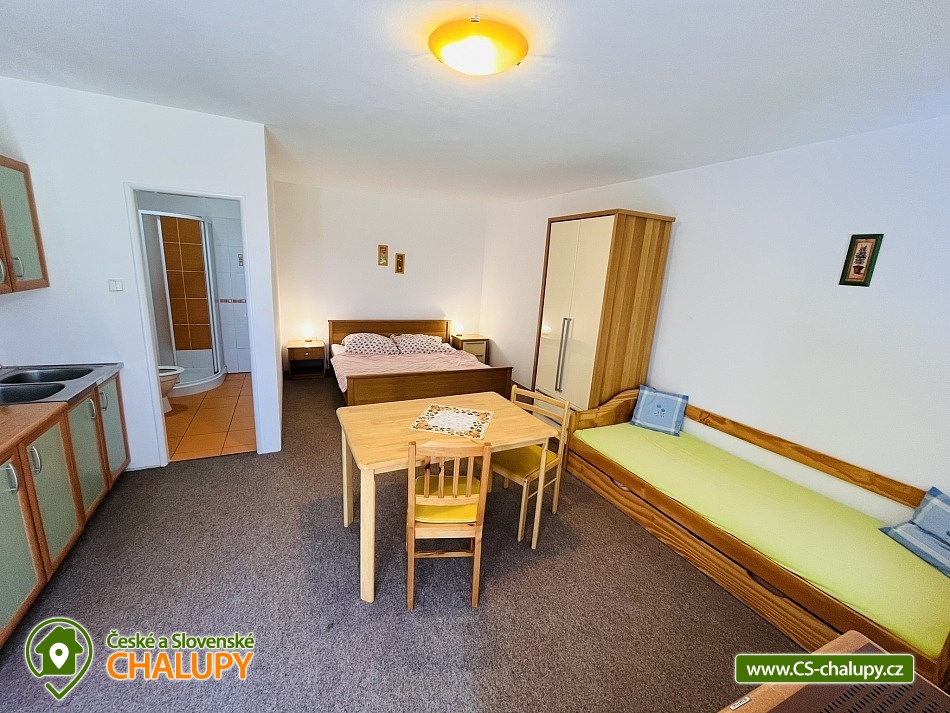 Jihočeská chalupa v CHKO Třeboňsko nedaleko řeky Nežárka a Jindřichova Hradce. Nabízíme ubytování ve 3 rodinných apartmánech, které jsou součástí bývalého nově rekonstruovaného klasického statku. Zdejší krajina je protkaná cykloturistickými trasami, je vhodným místem jak pro výlety do přírody, tak do četných historických měst (Třeboň, Jindřichův Hradec) a objektů s bohatým kulturním programem v letních měsících. Proč právě k nám: 3 oddělené unikátní venkovské apartmány s celkovou kapacitou až 13 osob, soukromí - vlastní terasa se zahradním nábytkem a slunečníkem ke každému apartmánu, každý apartmán má vlastní koupelnu a kuchyňku, velká zahrada pouze pro vás, 2 venkovní ohniště se dřevem nebo půjčení grilu zdarma, ideální poloha pro výlety, hospůdka, dětské hřiště a tenisový kurt jen 3 minuty chůze. K dispozici jsou pro vás 3 samostatné apartmány pro celkem 13 osob. Apartmány je možno pronajmout samostatně i hromadně 1 skupině klientů. Každý apartmán má vlastní venkovní terasu. K dispozici jsou dvě venkovní ohniště a také gril. K dispozici je v každém apartmánu plně vybavená kuchyňka spojená s jídelnou (stůl a židle), vlastní moderní koupelna s WC a sprchovým koutem. Apartmány jsou vybaveny vlastní televizí, lednicí a mikrovlnou troubou. Pro romantické večery je jeden za apartmánů vybaven krbovými kamny, pomocí nichž se dá celý apartmán lehce vytápět při chladnějším počasí. Ostatní apartmány mají akumulační kamna. Apartmány mají vlastní příjezdovou cestu s místem pro parkování vozu. Apartmány jsou od sebe odděleny stěnou z živého plotu a ze všech stran je statek obklopen velkou zahradou, kterou lze také využívat. Jen tři minuty chůze od apartmánu je zde dětské hřiště a sportovní víceúčelový kurt (tenis, basketbal). Ve vesnici je také hospůdka. Vřele doporučujeme jízdní kola s sebou. Okolí je protkáno cyklostezkami, velice oblíbené jsou vyjížďky do lesů na Jemčině a návštěva zámečku - možnost krátkých i delších výletů do míst jako Stráž nad Nežárkou, Třeboň a rybník Svět, Libořezy, Malíkov, Dolní Žďár, Lásenice, Lutová, Staňkov, Chlum u Třeboně a další. Těšíme se na Vás u nás.