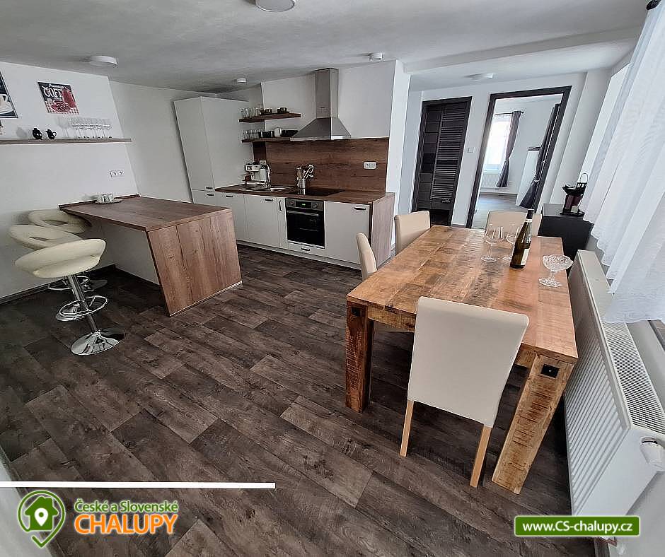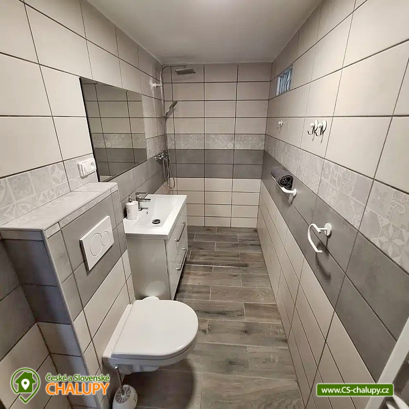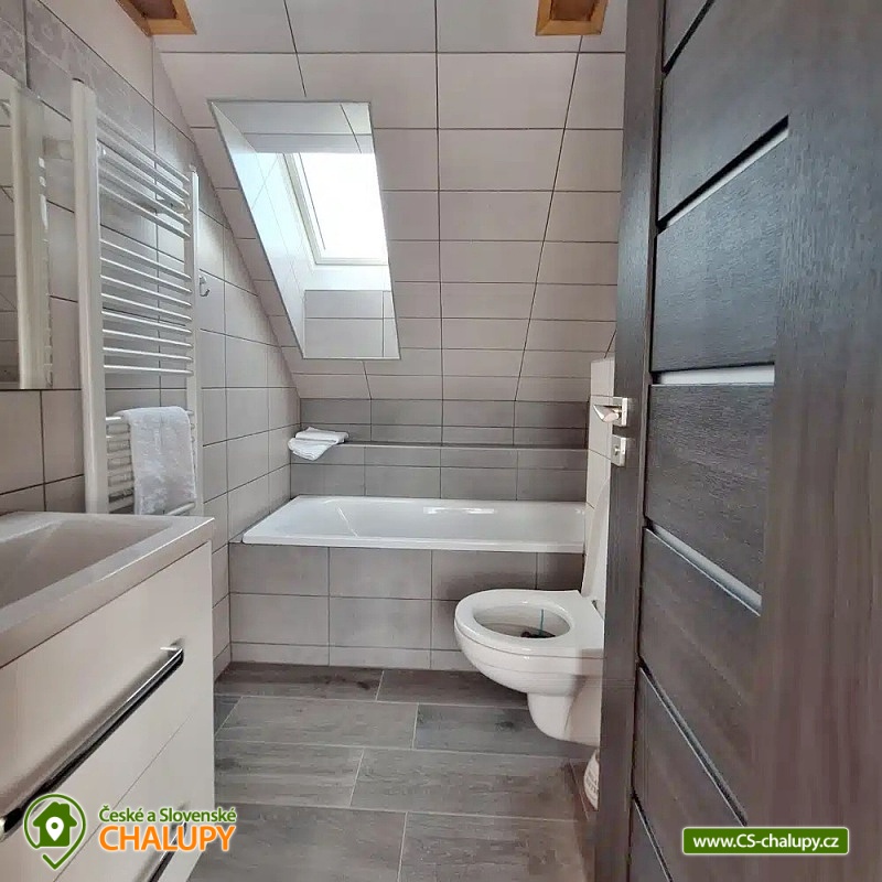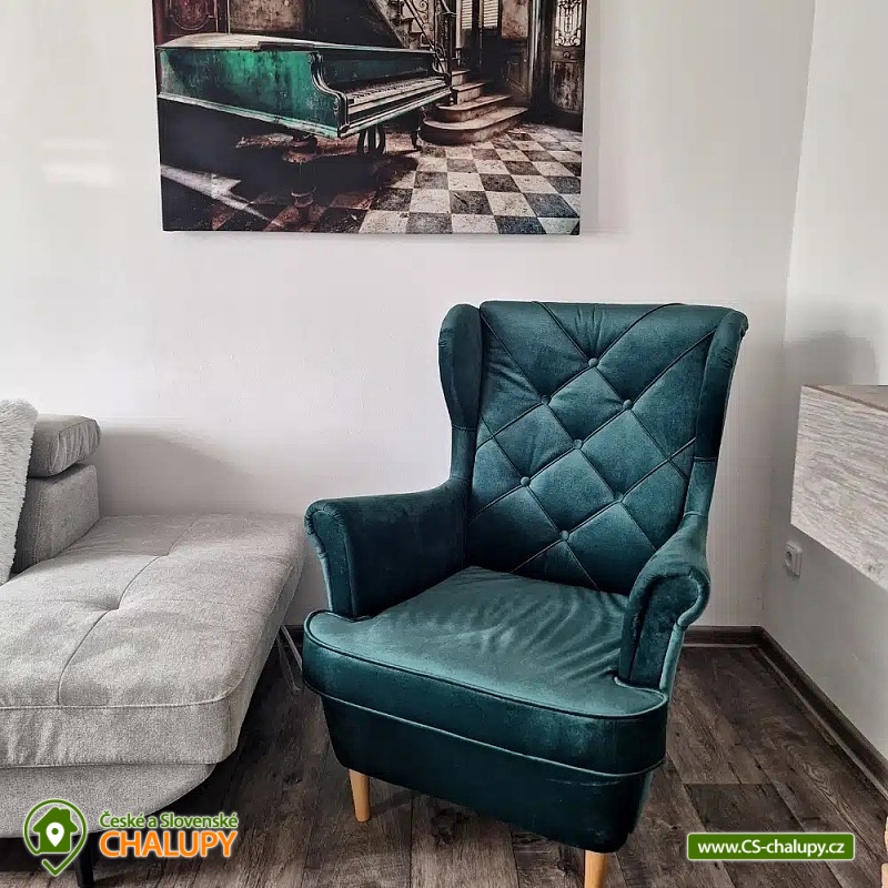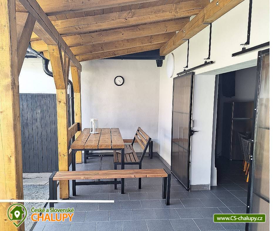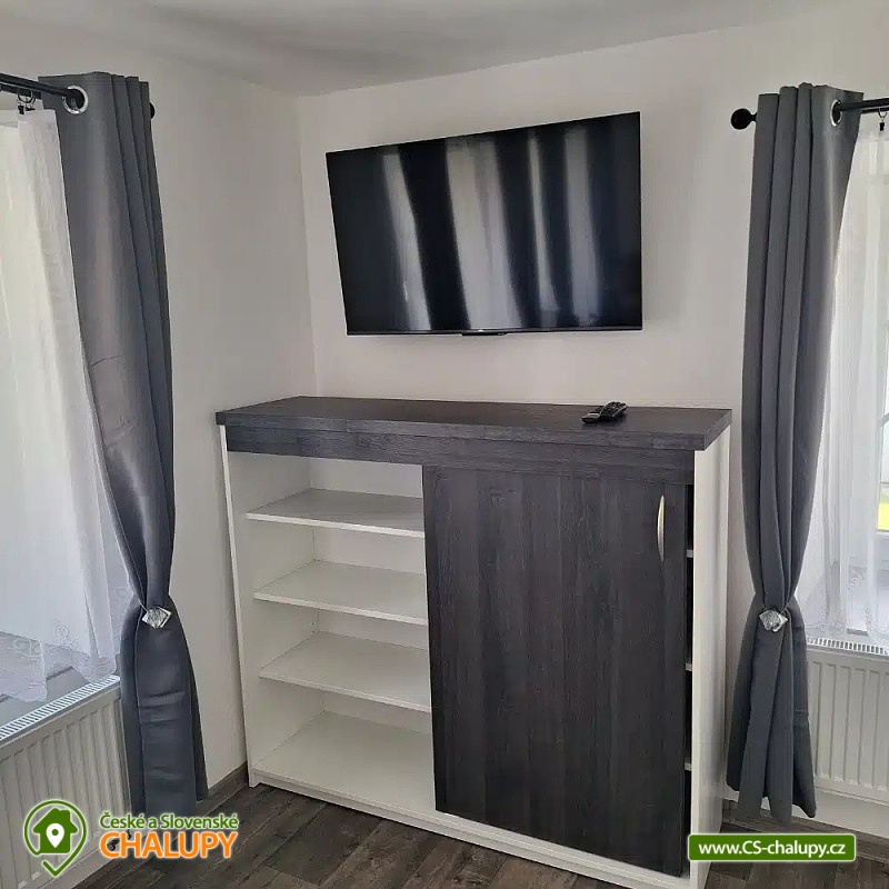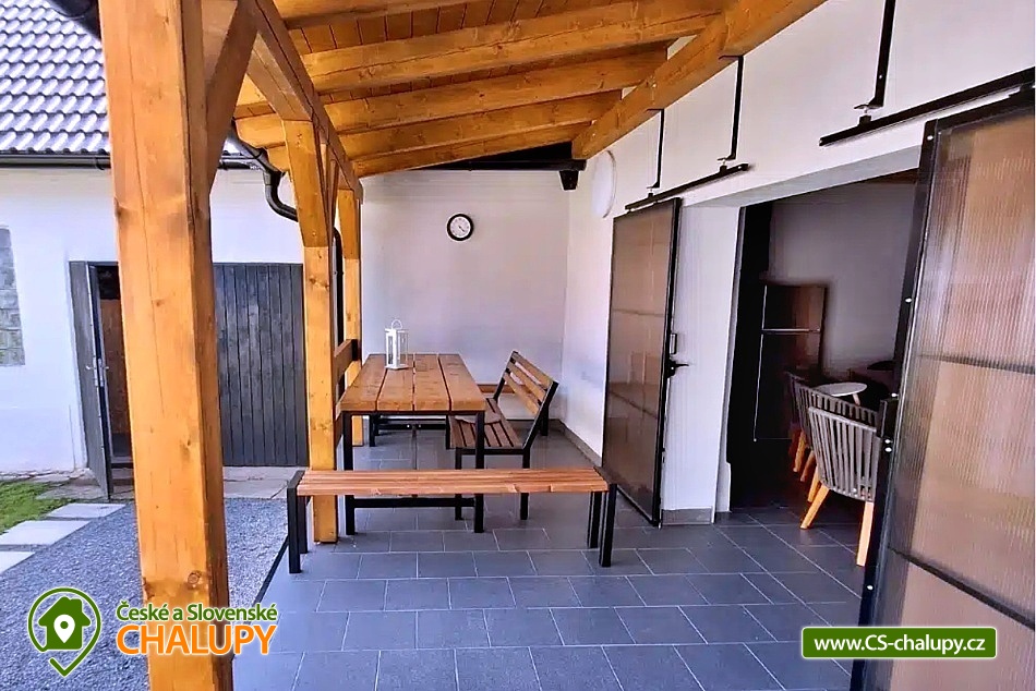 The stylishly furnished renovated Chalupa Jedlany is located by the pond in the small village of the same name near the popular tourist town of Tábor in South Bohemia. You can look forward to the complete privacy of the fenced garden, where you can enjoy the hot tub and sauna, game room, barbecue and outdoor seating. Chalupa Jedlany offers accommodation for 10 people in three bedrooms, a total of 8 fixed beds and two extra beds are available with a sofa bed and its size is more suitable for children under 12 years of age. On the ground floor there is a double bedroom (1x double bed). There are two more bedrooms in the attic, one of them has three beds (1x double bed and 1x single bed) and the other has five beds (1x double bed, 1x single bed and 1x sofa bed for 2 children). Towels and bed linen are provided. All bedrooms have a TV with SAT. On the ground floor, you enter the entrance hall, from which you can enter the walk-through fully equipped kitchen (glass ceramic hob, electric oven, fridge with freezer, dishwasher, press, electric kettle, washing machine, table, 4 chairs and 3 bar stools). . From the kitchen you enter the living room with a comfortable sofa set, TV+SAT and radio (gramophone). The social facilities include two bathrooms. One is on the ground floor with a shower, sink and toilet, and the other is in the attic with a bath, sink and toilet. Heating is provided by a heat pump and a fireplace stove. WIFI internet connection is available throughout the building. Around the cottage is a fenced garden (300 m2) providing a great relaxing environment. There is an acrylic hot tub for 5 people, a pergola with outdoor seating and a portable fire pit. In the former barn you will find the so-called barbecue room - a sitting room with a built-in grill and a garden kitchen (fridge with freezer, electric kettle and cold water), which is followed by a spacious games room with billiards, table tennis and table football. From the pergola you also enter the sauna area, where, in addition to the Finnish sauna itself for 4 people, there is a shower, a sink and a toilet. An above-ground circular pool (diameter 3.6 m, depth 0.8 m) is also available in the summer months. You can park directly at the building. In the surroundings of the cottage, hiking, cycling, swimming, fishing, mushroom picking, cross-country skiing and skiing are possible. Children will appreciate that there is a municipal playground just 50 m from the cottage. There are tennis courts nearby. Swimming options include, for example: Tábor pool, Košín I water reservoir, Šebor pond, Mladá Vožice swimming pool, Jordán water reservoir, Tábor swimming pool, Knížecí pond, Pohoda swimming pool, Jistebnice pond, Smolík pond, Nový pond Jistebnice, Pilský pond Jetřichovice, etc. In in winter, the nearby ski resort - Horní Kouty - Radvánov is available. The historical center of the town of Tábor, the ruins of Šelmberk Castle, the ruins of Borotín Castle, the Chotoviny Museum of Historic Vehicles and Motorcycles, the historical center of Bechyně, the Choustník Castle, the Chýnové Caves, the Stádlecký chain bridge or the Monínec sports and recreation area are alluring for trips in the area. We look forward to seeing you here.