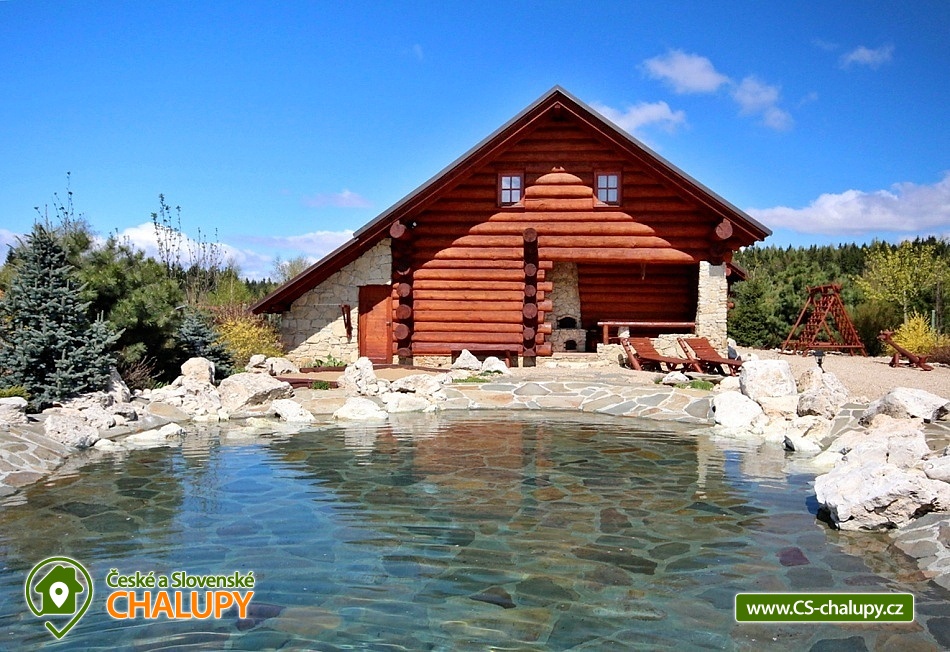 „Pronájem kanadského srubu s koupacím jezírkem - jižní Morava.“