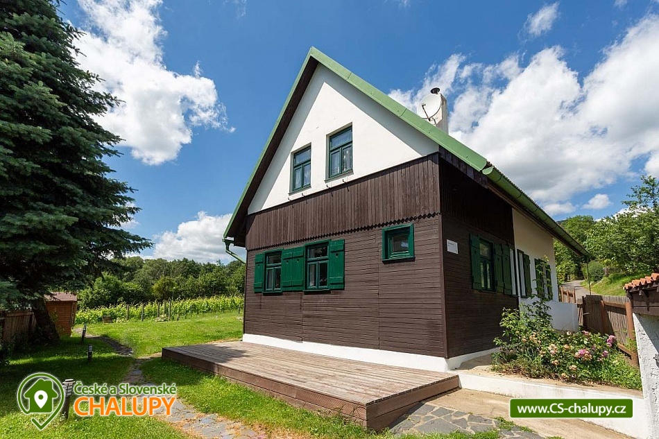 Chata s bazénem - CHKO České středohoří se nachází v malebné obci Horní Chobolice, která leží na úpatí hory Sedlo v nádherném prostředí Českého středohoří. Chata sousedí s vinicí, nedaleko od chobolických rybníků a v blízkosti lesa. Chata představuje ideální místo pro odpočinek a skvělou základnu pro výlety v okolí. Chata je ideální pro rodiny s dětmi a pro milovníky turistiky, cyklistiky, přírody, památek i dobrého vína, které vyrábí přímo naše malé vinařství. Pozemek je kompletně oplocen a nesdílíte ho s nikým dalším. Chata k pronajmutí poskytuje ubytování pro až 8 osob ve 2 ložnicích. Přízemí: Do chaty se vchází prosklenou prostornou verandou do obývacího prostoru s kachlovými kamny, rozkládací pohovkou (pro dvě osoby), jídelním koutem, kuchyňskou linkou, koupelnou s WC, samostatným WC a schodištěm do prvního patra. Kompletně zařízená kuchyň, vybavená dvouplotýnkovou sklokeramickou el. deskou, mikrovlnnou troubou s grilem a horkým vzduchem, varnou konvicí, topinkovačem, smoothie mixer, lednicí s mrazákem, myčkou a pračkou. První patro - Zde se nachází TV prostor s rozkládacím gaučem a 2 ložnice: 1. ložnice: jedna manželská postel s možností přistýlky po domluvě. 2. ložnice: 2 rozkládací postele (celkově 4 lůžka). Z této místnosti je pak přístup i do podkroví, kde se nachází jedná malá místnost se dvěma matracemi pro čtení/odpočinek. Ze severní strany (druhá ložnice) výhled na horu Sedlo a do zahrady. Připojení k internetu zdarma (WiFi), TV se satelitem. Sociální zařízení: Bezbariérová koupelna s WC a se sprchovým koutem. Samostatný záchod. Vytápění: Centrální elektrický kotel a krbová kamna. Parkování přímo u objektu na oploceném parkovišti pro 4 auta. Na zahradě se nachází dva altány, ohniště, gril a terasa s orientací na jih, dále zapuštěný bazének 4,5 x 3 m. Možnost uskladnit kola v uzamčené místnosti. V blízkosti zámek Ploskovice, historické město Úštěk, jezero Chmelař, hrad Helfenburk, národní muzeum v přírodě Zubrnice, město Litoměřice. Nejblíže chalupy a našeho malého vinařství je hora Sedlo, která je právem považována za chrám přírody. Pěšky jste pod jejím kopcem za 15 minut a na její vrcholek, který se tyčí v nadmořské výšce 726 m, se podíváte za celkem akceptovatelnou hodinku. Po cestě nahoru potkáte, u nás téměř ojedinělou, tmavě šedou čedičovou horninu trachybazalt, která utváří místní skály. Sedlo je čtvrtou nevyšší horou Českého středohoří a celý jeho vrchol o rozloze 42,2 ha je chráněn jako národní přírodní rezervace Sedlo v CHKO České středohoří. Důvodem této ochrany jsou zbytky původních listnatých lesů se vzácnou květenou. Ten výhled je k nezaplacení, to vám zaručujeme. Těšíme se na Vás u nás.