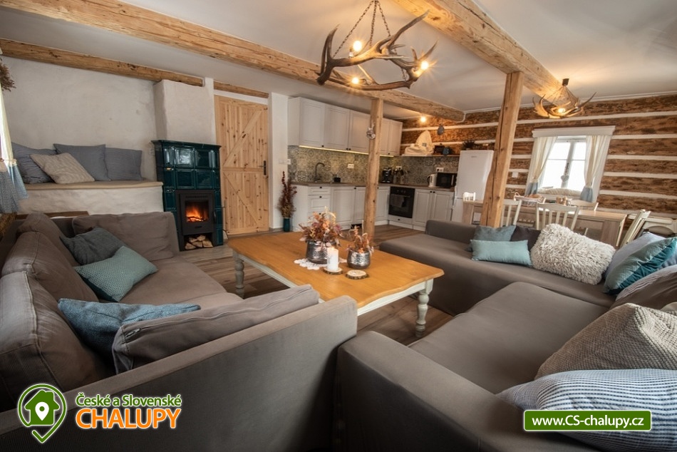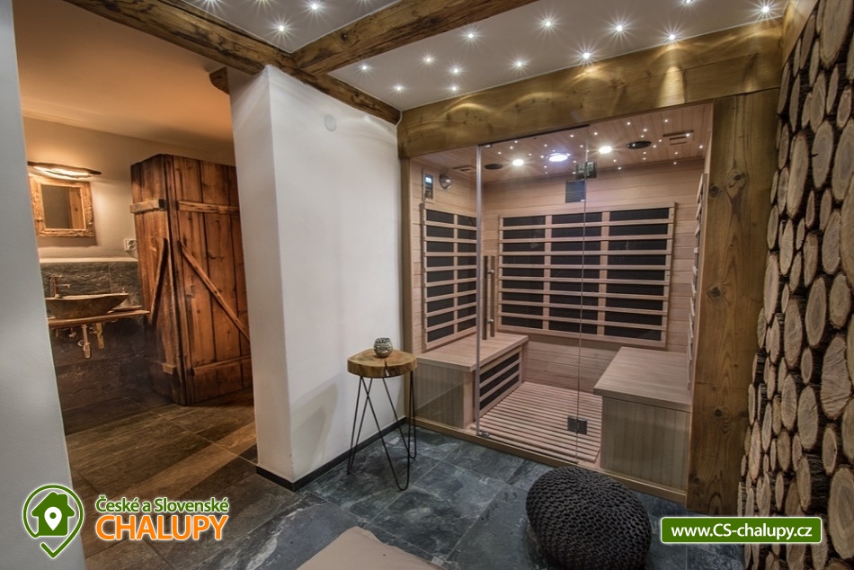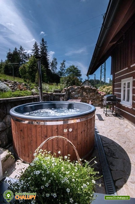 Krkonoská roubenka - infrasauna a koupací sud - kachlová kamna