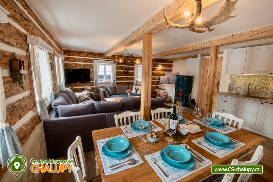 Krkonoská roubenka s wellness (koupací sud s vířivkou, infrasauna a relaxační místnost) a kachlovými kamny. Chalupa se nachází v sousedství turistických středisek Harrachov a Rokytnice nad Jizerouv, lokalita Studenov, osada Vilémov, obec Dolní Rokytnice. Roubenka k pronájmu poskytuje ubytování pro a 10 osob ve 3 lonicích. POPIS: Pokoj č.1: manelská postel + 1 lůko. Pokoj č.2: manelská postel + 1 výsuvné lůko (přistýlka). Pokoj č.3: manelská postel + 2x jednolůko + 2 dětské postýlky 120x60 cm + 1x malá dětská matrace 160x70 cm. 1x velká světnice s obývacím prostorem, jídelnou a rohovou plně vybavenou kuchyní (indukční varná deska, elektrická trouba, mikrovlnná trouba, lednice, rychlovarná konvice, kávovar), 1x infra sauna s relaxační místností, 1x lyárna. Sociální zařízení: 1x samostatná toaleta v přízemí, 1x samostatná koupelna se sprchou v přízemí, 1x koupelna s vanou a WC v 1. patře, 1x koupací sud s vířivkou. Vytápění: Podlahové vytápění v přízemí, radiátory na pokojích a v dětském koutku v 1. patře. Příjemnou atmosféru vytvoří oheň v kachlových kamnech v sednici. Venkovní vybavení: Koupací sud s vířivkou (kde si sami zatopíte dřevem), Venkovní posezení s grilem, ohnitě, dětské pískovitě, houpačka, lezecká stěna pro děti a pramen pitné vody. Samozřejmostí je připojení Wi - Fi a parkovací plocha pro vae automobily. Chalupa je situována v kopcovitém terénu. Zhruba dvě stě metrů od protékající řeky Jizery, přesto leí přímo u hlavní cesty necelých sto metrů od zastávky autobusové dopravy, celoročně tak je zajitěna velmi dobrá dopravní dostupnost. V okolí: Krkonoe - Labská bouda, Pančavský vodopád, Harrachovy kameny, Sněné jámy, Pramen Labe, Sněka. Rokytnice - lanové centrum, bike park, lanovky (i letní provoz), vyhlídka Strá, motokáry, snow i summer tubing. Harrachov - Mumlavský vodopád, muzeum skla, hornické muzeum, skokanské můstky, pivovar. V zimě: SKI Areál Paák 100 metrů do chalupy, Lyařské středisko Rokytnice nad Jizerou 4 km, SKI Areál Horní Domky 2,3 km, Lanovka Lysá Hora 2,5 km, SKI Paseky, SKI Jablonec nad Jizerou (s nočním lyováním) a SKI areály v Harrachově. Těíme se na Vás u nás.