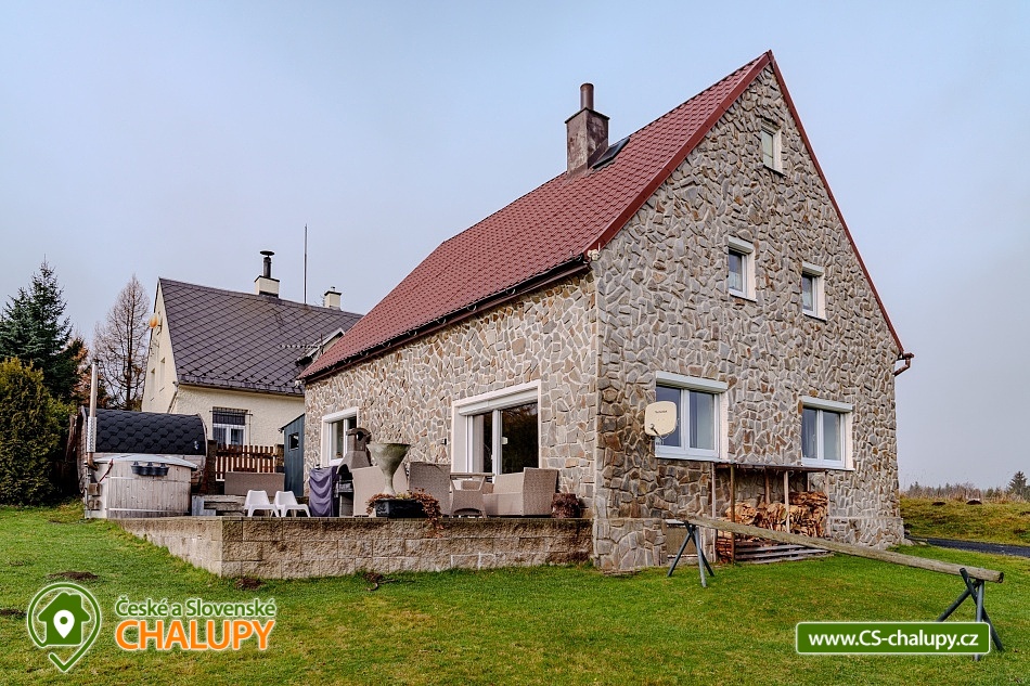 Cottage Adélka - Kovářská - sauna, whirlpool and heated barrel. Cottage Adélka is located in the village Kovářská in the picturesque surroundings of the Ore Mountains. The cottage offers accommodation in 3 rooms with a total capacity of 11 people. The rooms are tastefully and modernly furnished and on the lower floor there is a bathroom with a shower. The property includes a large grassy plot, where guests can use the outdoor seating and barbecue facilities. We are known for our rarity, the Finnish pot, which is a barrel with heated water that works on the basis of a hot bath. You can also achieve perfect relaxation in our sauna or while sitting by the crackling wood in the fireplace. We are friendly in pets, so we do not mind if you bring your pet with you. The cottage is located on a hillside and provides a beautiful view of the surroundings and the village. Thanks to the local road that is maintained throughout the year, it is easily accessible. The cottage has 2 floors, on the lower floor there is a kitchen with a dining table, a microwave, an electric stove with an oven and an electric kettle. Around the corner is a bathroom with shower and two separate toilets. Across the hall you enter the living room with TV, fireplace and dining table and a comfortable sofa. The living room has direct access to the garden, where there is a seating area and a fireplace. The hot pot is conveniently located at the entrance so that you can comfortably come out only in a towel. On the upper floor of the cottage there is a bedroom and a sleeping area. Kovářská is only 8 km away from the sports and ski center Klínovec and is an ideal place for summer and winter trips. Lovers of cross-country trails, snowboarders and skiers, as well as guests who like sports and run Nordic Walking, bike rides, mushroom picking or just like to sit in the garden will enjoy themselves. In the vicinity of Klínovec and Boží dar - ski slopes with a chair lift and several poma lifts, a snow park, beautiful cross-country trails, night skiing and artificial snow. We also recommend visiting the bobsleigh track in nearby German Oberwiesenthal.