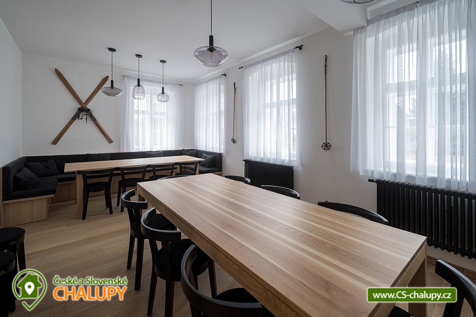 Luxusní chalupa s wellness - komfortní ubytování s finskou saunou nedaleko Přírodní památky - Skalní útvar Rotavské varhany v Krušných horách. Historická budova nabízí komfortní ubytování pro až 20 osob. Chalupa je čerstvě kompletně zrekonstruovaná v moderním stylu s úctou k historickému odkazu, v západní části Krušných Hor nabízí klidné zázemí pro Vaši dovolenou. Pro Váš maximální komfort k relaxaci nabízíme zázemí celé chalupy se 4 ložnicemi. V objektu je plně vybavená moderní kuchyňská linka s jídelnou a všemi moderními kuchyňskými spotřebiči, včetně výčepního zařízení, 3x samostatná koupelna, 4x samostatné WC, parkoviště až pro 5 aut, společenská místnost s knihovnou a TV, dále Wi-Fi v celém objektu. Součástí chalupy je zahrada a zde letní kuchyně s krbem a možností venkovního i vnitřního sezení, lyžárna/úschovna kol s elektro nabíječkou, vnitřní finská sauna se sprchou a odpočívárnou, venkovní ohniště a zenová loučka. V celém objektu je automatické topení pro Váš maximální komfort. Celý objekt je nekuřácký, venkovní místo pro kuřáky. Přidejte se k nám na vzrušující putování do tajemných koutů naší úchvatné země! Zanechte doma turistické průvodce a připravte se na objevování skrytých pokladů a úchvatných míst, která čekají na odhalení. Připravené trasy nabízejí malebná údolí, tajemné lesy a panoramatické výhledy, které vás okouzlí. Prozkoumejte pohádkové zámky, historické kostely a kouzelná kamenná moře, která rozhýbou vaše smysly. Zažijte Rotavské varhany a jejich zvukovou symfonii přírody. Objevte tajemný čedičový lom Kernberg a ponořte se do atmosféry minulosti na hřbitově a v mauzoleu z první světové války. Pokračujte do malebné oblasti Šindelové, kde na vás čekají zajímavé stezky, staré mlýnské chalupy a úžasné výhledy z Ptačí hory. Prozkoumejte krásu přírody na rašeliništích Haar a obdivujte Fišerovu studánku, skrytý skvost lesní krajiny. Milovníci historie a kultury ocení výlety do starobylých krušnohorských měst jako Horní Blatná, Potůčky, Nové Hamry, Pernink a třeba i Boží Dar a Klínovec. Naše destinace je ještě víceméně neobjevená a neprozkoumaná, je plná krásy a unikátních zážitků, které stojí za to objevit. Těšíme se na Vás u nás.