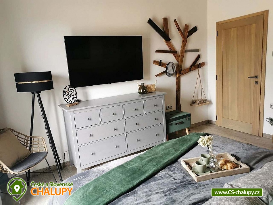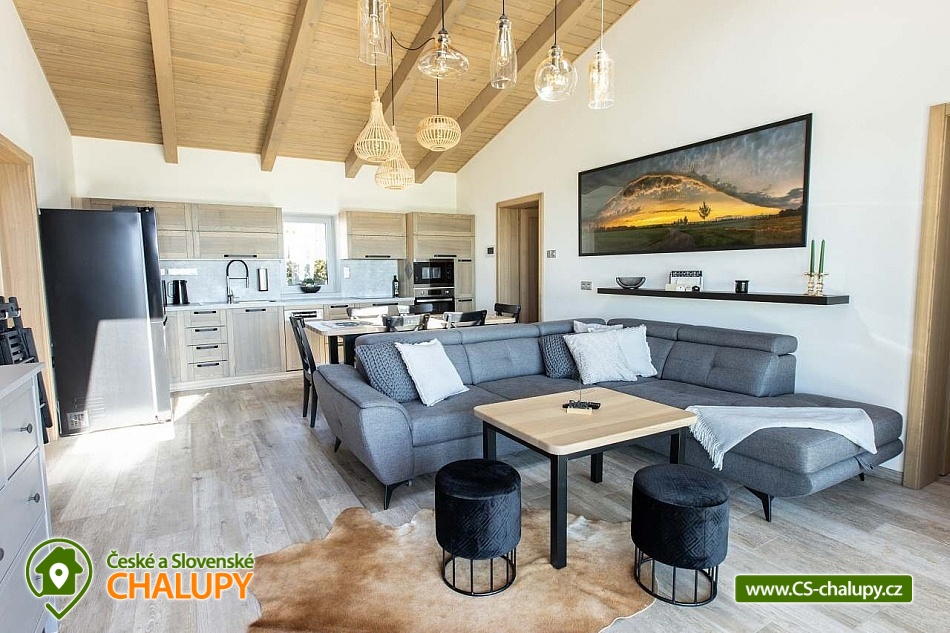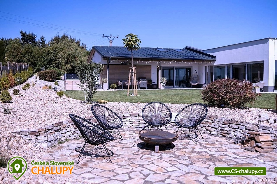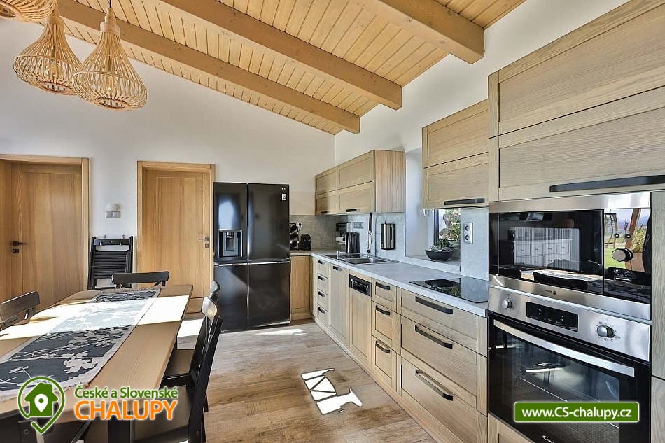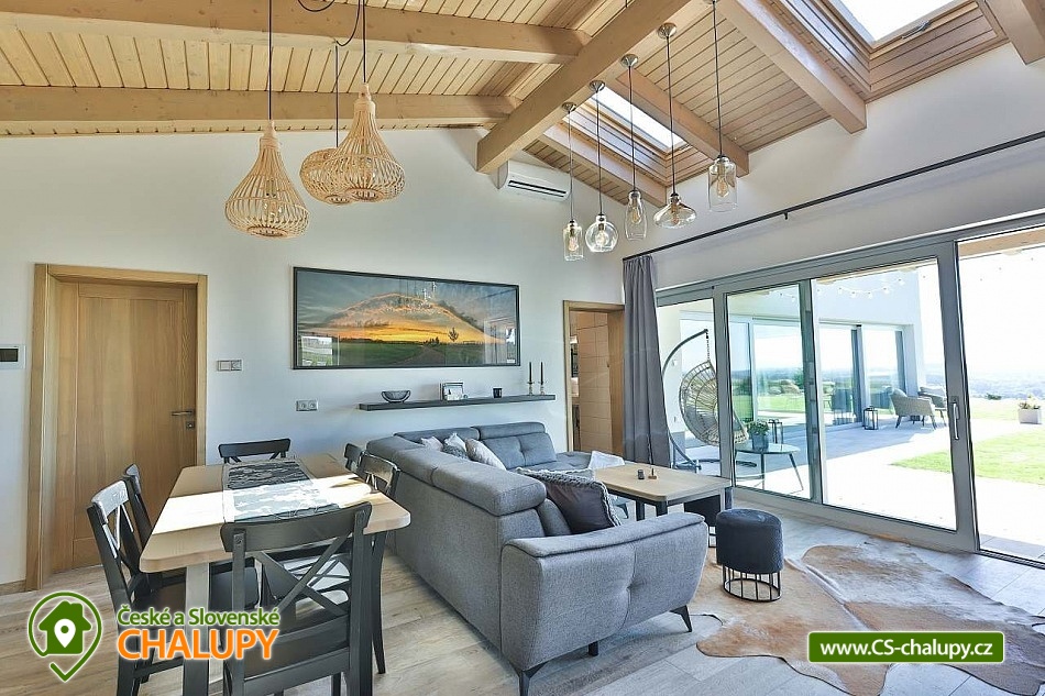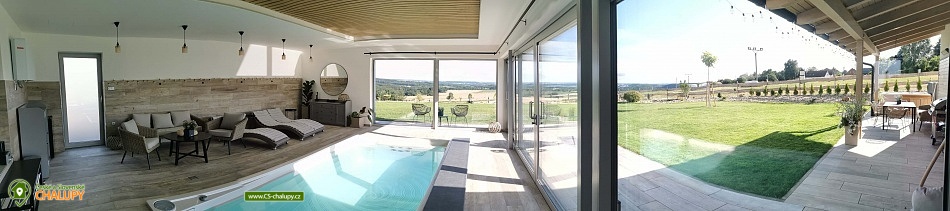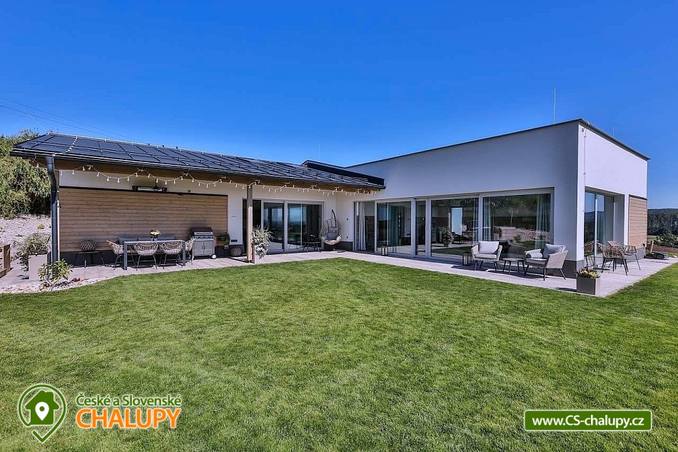 Luxury cottage with indoor pool - Grandma's Valley. The cottage is located on a hill directly above Grandma's Valley, in a region not far from Aršpach, the Safari to Dvůr Králové or the Rozkoš reservoir. The cottage has a capacity of up to 7 beds in 2 bedrooms. An indoor heated pool with a glass interior, an outdoor jacuzzi and a sauna are available throughout your stay! Thanks to the beautiful view of the surroundings of the Orlické Mountains, Rozkoš and the Hradec Králové region, it is a wonderful place for rest and relaxation not only in summer, but also in bad weather. DESCRIPTION: Layout - 2 bedrooms, kitchen with living room, relaxation room with pool, sauna, bathroom, separate toilet, utility room and vestibule. Bedroom: 1st bedroom - large double bed for 2 people, possibility of adding a cot. 2nd bedroom - large double bed for 2 people, 1 full-size sofa bed, possibility of adding a cot. 3rd living room - sofa bed for 2 people available. Total capacity 7 people and two children under 3 years old (in a cot). There is an equipped kitchen (including a coffee maker and dishwasher). Bathrooms: 1 bathroom with toilet and a separate toilet. Heating - Heat pump. You can use the terrace at the cottage in winter and summer, for night swimming under the stars. Stylish seating by an open fire, a landscaped grassy area, a grill and a view of the lake complement the above-standard of this beautiful place. You can find a washing machine and iron in the technical room, which can also be used as a storage room for sports equipment. WiFi internet connection is provided throughout the building. On-site parking at the building. Surroundings: Grandma's Valley - 3km, Rozkoš Reservoir - 6km, Castles - Náchod, Nové Město nad Metují - 10km, Safari Park Dvůr Králové - 25km, Kuks - 20km, Adršpach Region - Teplické Rocks - 25km. Furthermore, cycle paths, right in the village there are two acacia playgrounds, a lookout tower and on the football field there is a new multifunctional playground for multiple sports. Poland - Kudowa Zdroj - trout, wandering rocks, aquapark - 20km. We look forward to seeing you here.