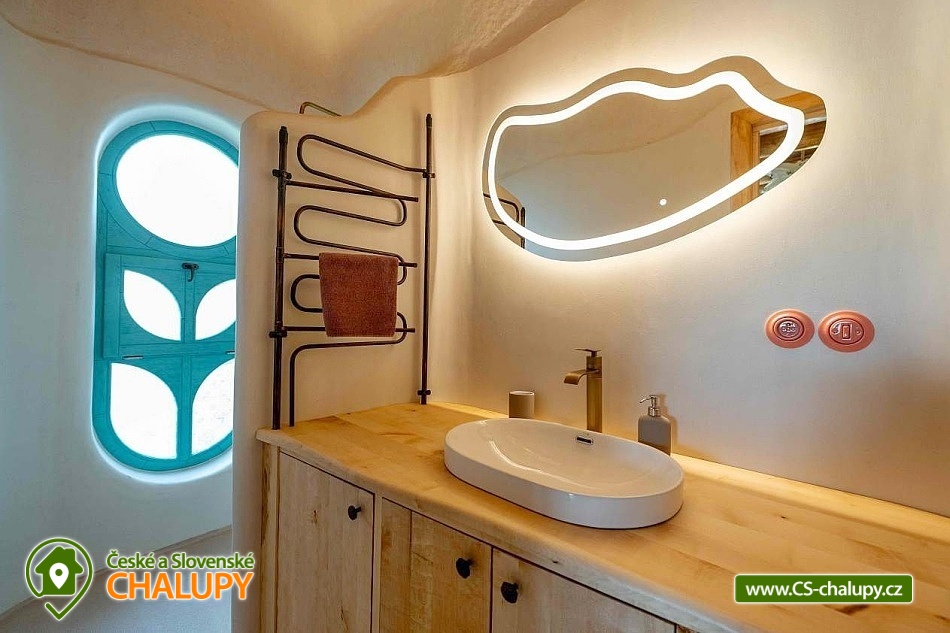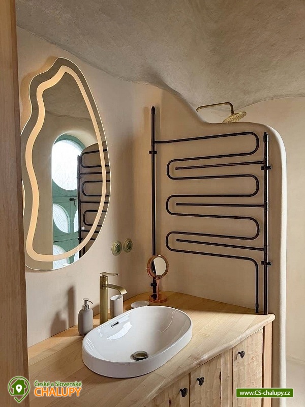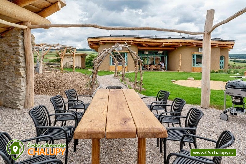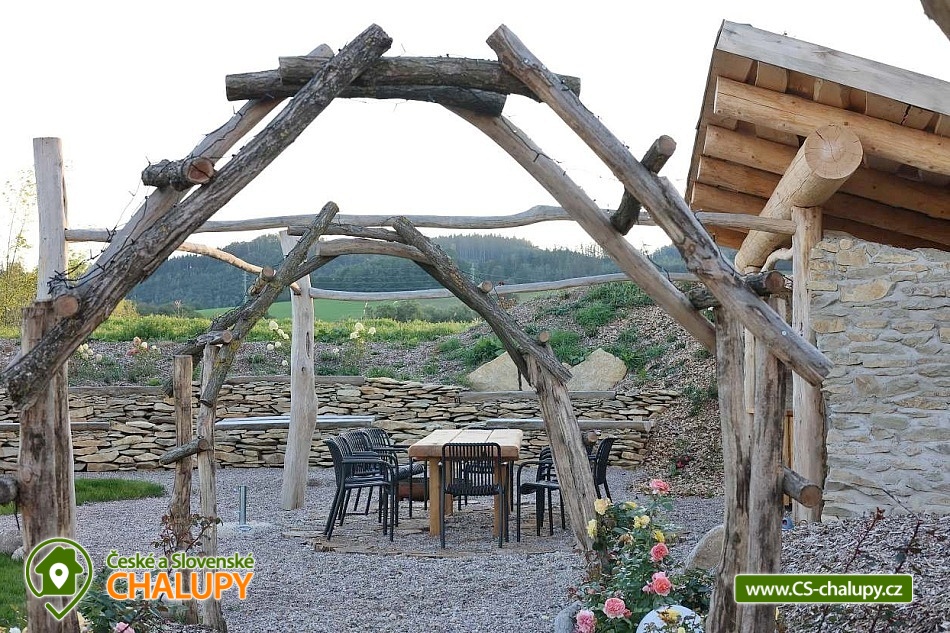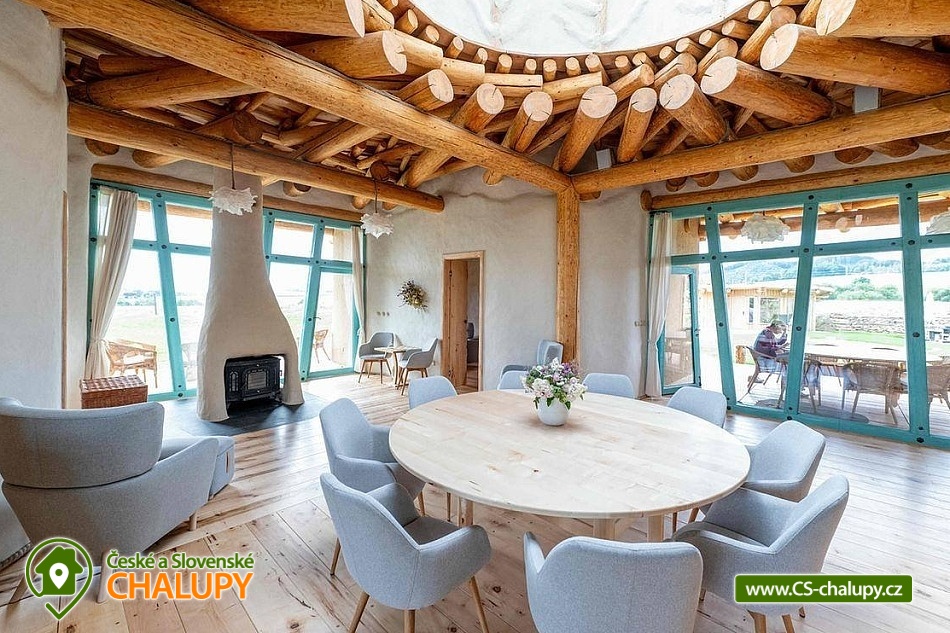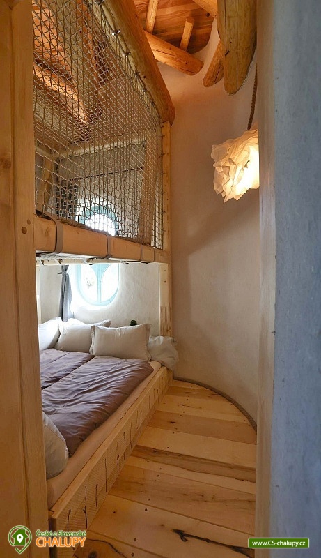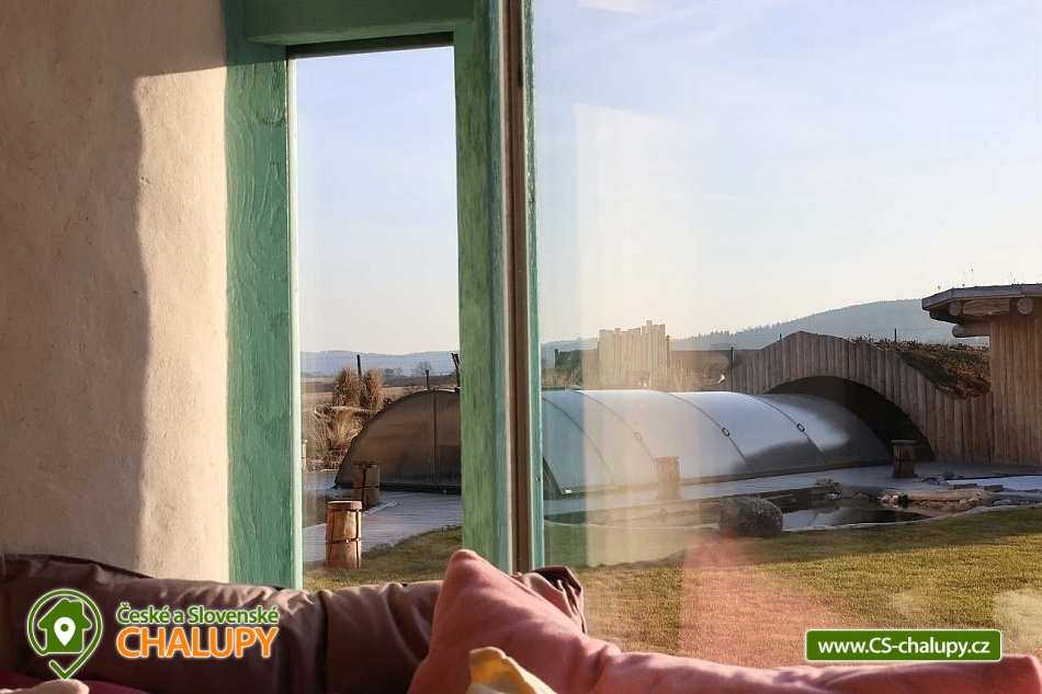 Luxury log cabin with wellness and swimming pool (outdoor heated saltwater pool with roof, Finnish sauna, infrared sauna and jacuzzi) near Orlické Podhůří and Potštejn Castle - beautiful nature of the Podorlické region near the towns of Ústí nad Orlicí and Letohrad. The capacity of the building is for up to 15 people in 5 bedrooms. You can look forward to original architecture reflecting the shapes of the surrounding landscape and an unconventional design from massive materials to fine textiles to functional details ensuring maximum comfort. The heart of the house is a spacious common room with a massive round table in the middle of the room, which is illuminated by a large round skylight with a view of the sky. The eastern alcove of the room invites you to lounge on the sofas and the southern one invites you to sit by the fireplace. Large glass entrances, a skylight and two roofed terraces - a sunny southern and a romantic western - connect the interior with the surrounding garden and pool, so you can enjoy nature all day long. The room includes a large, fully equipped kitchen (two dishwashers, a convection oven, a microwave, a kettle, a coffee maker, a tap with the possibility of tapping a keg of beer or lemonade, an American fridge + another fridge in the utility room). The island with two sinks and two hobs is oriented so that you can enjoy the view of the garden while cooking and still be part of the action in the room. You can make the evening more pleasant with a home cinema. The entire room can be adapted for social events and a dance floor. The dominant features of the log cabin are three stylish double bedrooms - the moss bedroom with a view to the east will enchant you with tones of green, the grassy bedroom facing west offers views of meadows and pastures, and the pink bedroom with romantic elements inside and outside the window has a view of the rose garden. In the grassy and pink bedrooms, you can also laze in the window niche. The moss and grass bedroom includes one smaller double bedroom (so-called “den”), which is suitable for children due to its size. The den is separated from the bedroom by a sliding door, which ensures privacy for both children and parents. A cot is available for rent. Each of the three bedrooms has its own bathroom with a shower and toilet. The cabin also has a washing machine, dryer, and wine cellar. Heating is provided by central wall heating, and in the common room by a fireplace. Each room has air conditioning and there is underfloor heating in the bathrooms. WIFI internet access is available throughout the building. Outside, a garden full of flowers, benches, and pleasant views stretches around the cabin. There is a relaxation area with hammocks. There are two terraces for sitting. There is a covered seating area, a grill, a fireplace, an outdoor kitchen, and a bike shed. The outdoor areas attract with their private wellness with a heated pool, sauna and infrared sauna with a relaxation area or a jacuzzi. A popular attraction, not only for children, is the natural paddling pool made of stones, which can be rearranged according to your wishes and enjoy various water features. Parking is available directly at the property. In the vicinity of the log cabin, there is the possibility of hiking, cycling, swimming, skiing, cross-country skiing and mushroom picking. There are tennis courts and a riding stable nearby. Swimming options include: Aquapark Ústí nad Orlicí, Swimming pool Ústí nad Orlicí, Swimming pool Brandýs nad Orlicí, Swimming pool Písečná, Swimming pool Letohrad, Aquapark Žamberk, etc. There are nearby ski resorts: Na Dlouhých Honech - Dlouhoňovice, Přívrat, Kunčice u Letohradu - Umbule and others. For trips in the surrounding area, you can visit Letohrad Castle, the Ruins of Kyšperk Castle, Potštejn Castle and Castle, the Vamberk Lace Museum, the Andrlův Chlum Lookout Tower, the Brandýs nad Orlicí Nature Maze or Litomyšl Castle. We look forward to seeing you there.