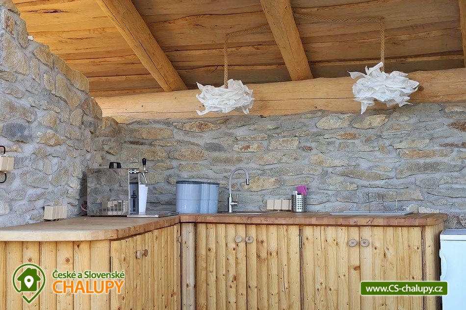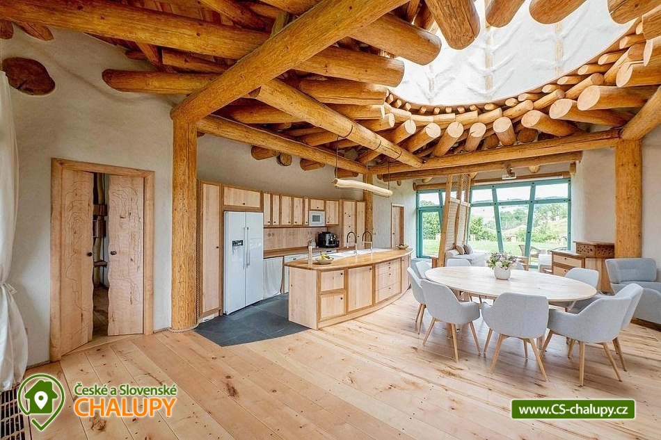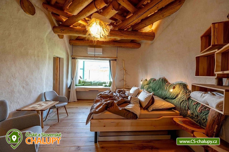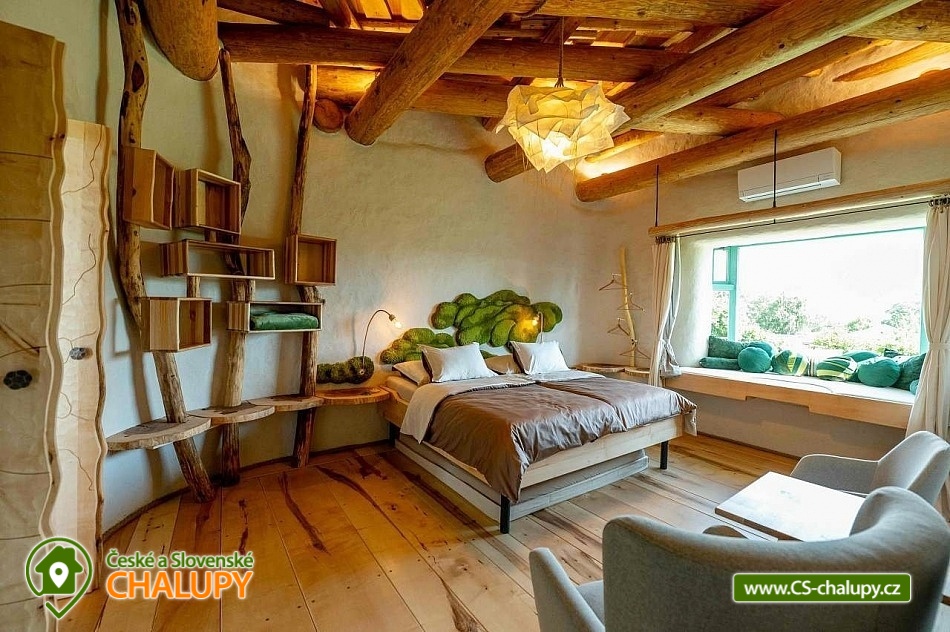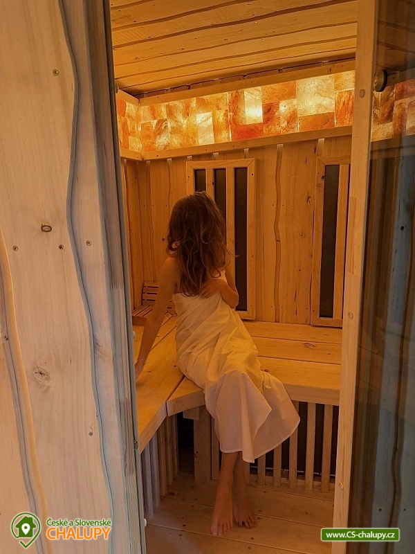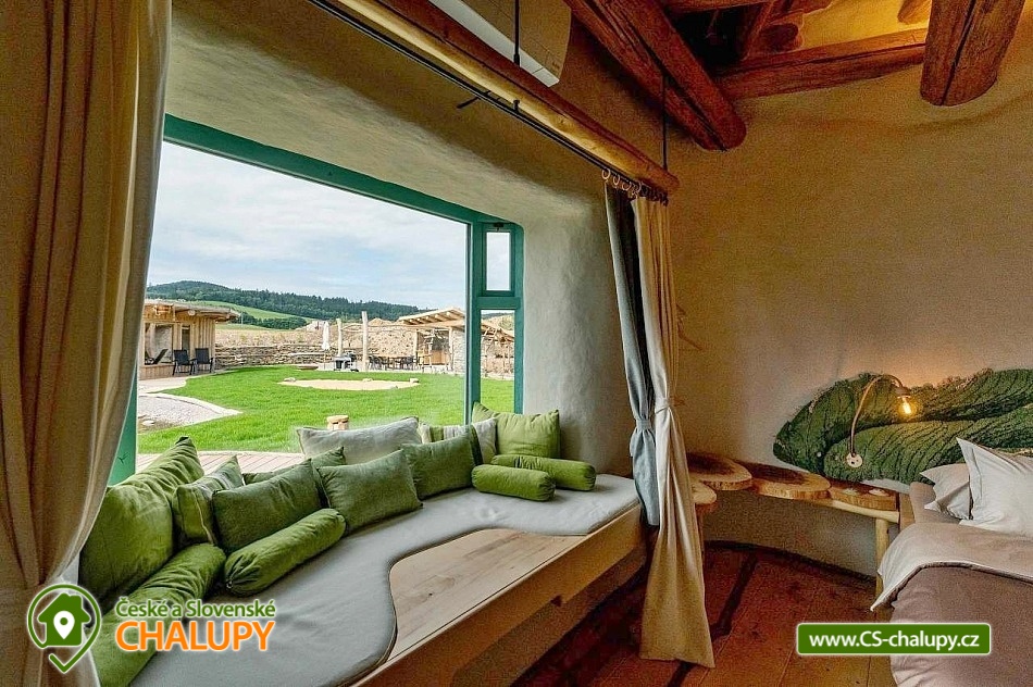 Luxury log cabin with wellness and swimming pool (outdoor heated saltwater pool with roof, Finnish sauna, infrared sauna and jacuzzi) near Orlické Podhůří and Potštejn Castle - beautiful nature of the Podorlické region near the towns of Ústí nad Orlicí and Letohrad. The capacity of the building is for up to 15 people in 5 bedrooms. You can look forward to original architecture reflecting the shapes of the surrounding landscape and an unconventional design from massive materials to fine textiles to functional details ensuring maximum comfort. The heart of the house is a spacious common room with a massive round table in the middle of the room, which is illuminated by a large round skylight with a view of the sky. The eastern alcove of the room invites you to lounge on the sofas and the southern one invites you to sit by the fireplace. Large glass entrances, a skylight and two roofed terraces - a sunny southern and a romantic western - connect the interior with the surrounding garden and pool, so you can enjoy nature all day long. The room includes a large, fully equipped kitchen (two dishwashers, a convection oven, a microwave, a kettle, a coffee maker, a tap with the possibility of tapping a keg of beer or lemonade, an American fridge + another fridge in the utility room). The island with two sinks and two hobs is oriented so that you can enjoy the view of the garden while cooking and still be part of the action in the room. You can make the evening more pleasant with a home cinema. The entire room can be adapted for social events and a dance floor. The dominant features of the log cabin are three stylish double bedrooms - the moss bedroom with a view to the east will enchant you with tones of green, the grassy bedroom facing west offers views of meadows and pastures, and the pink bedroom with romantic elements inside and outside the window has a view of the rose garden. In the grassy and pink bedrooms, you can also laze in the window niche. The moss and grass bedroom includes one smaller double bedroom (so-called “den”), which is suitable for children due to its size. The den is separated from the bedroom by a sliding door, which ensures privacy for both children and parents. A cot is available for rent. Each of the three bedrooms has its own bathroom with a shower and toilet. The cabin also has a washing machine, dryer, and wine cellar. Heating is provided by central wall heating, and in the common room by a fireplace. Each room has air conditioning and there is underfloor heating in the bathrooms. WIFI internet access is available throughout the building. Outside, a garden full of flowers, benches, and pleasant views stretches around the cabin. There is a relaxation area with hammocks. There are two terraces for sitting. There is a covered seating area, a grill, a fireplace, an outdoor kitchen, and a bike shed. The outdoor areas attract with their private wellness with a heated pool, sauna and infrared sauna with a relaxation area or a jacuzzi. A popular attraction, not only for children, is the natural paddling pool made of stones, which can be rearranged according to your wishes and enjoy various water features. Parking is available directly at the property. In the vicinity of the log cabin, there is the possibility of hiking, cycling, swimming, skiing, cross-country skiing and mushroom picking. There are tennis courts and a riding stable nearby. Swimming options include: Aquapark Ústí nad Orlicí, Swimming pool Ústí nad Orlicí, Swimming pool Brandýs nad Orlicí, Swimming pool Písečná, Swimming pool Letohrad, Aquapark Žamberk, etc. There are nearby ski resorts: Na Dlouhých Honech - Dlouhoňovice, Přívrat, Kunčice u Letohradu - Umbule and others. For trips in the surrounding area, you can visit Letohrad Castle, the Ruins of Kyšperk Castle, Potštejn Castle and Castle, the Vamberk Lace Museum, the Andrlův Chlum Lookout Tower, the Brandýs nad Orlicí Nature Maze or Litomyšl Castle. We look forward to seeing you there.