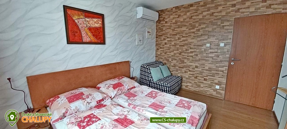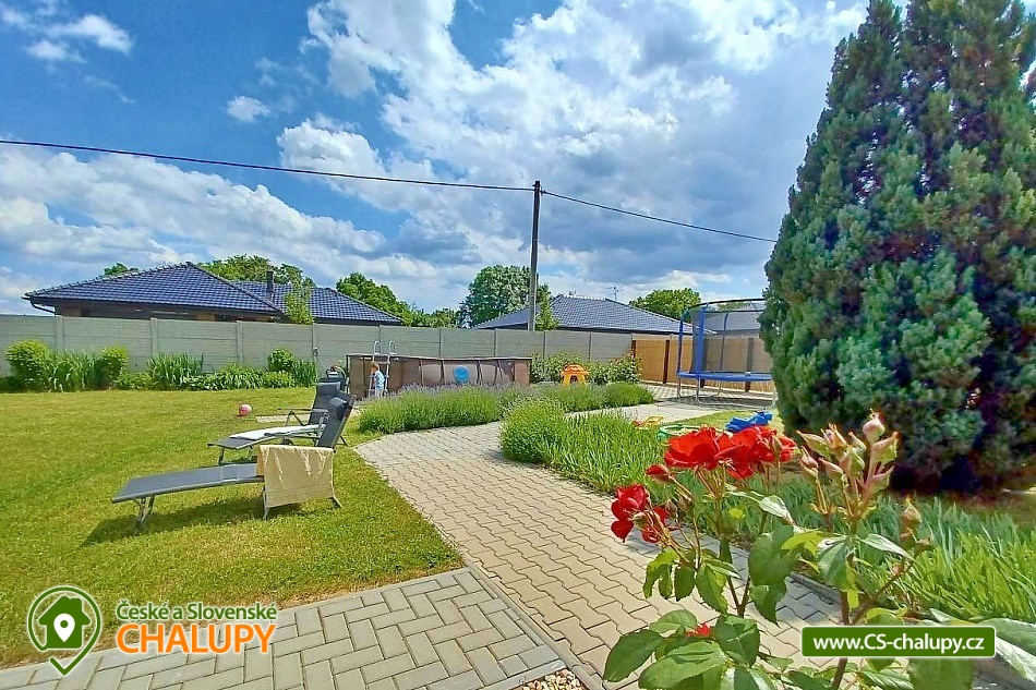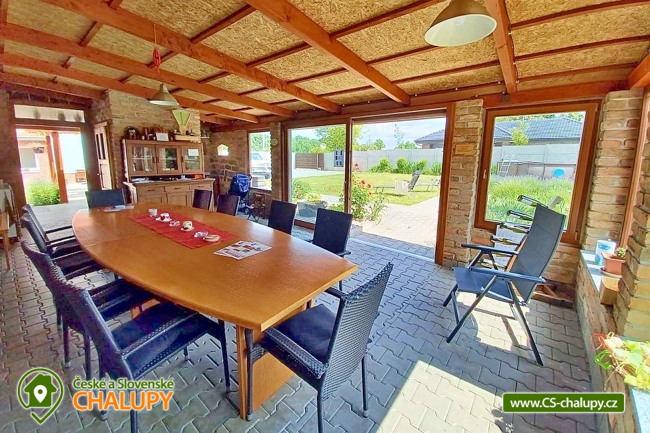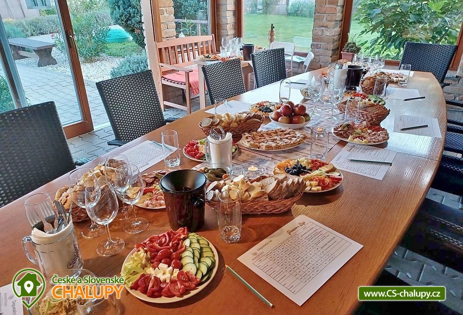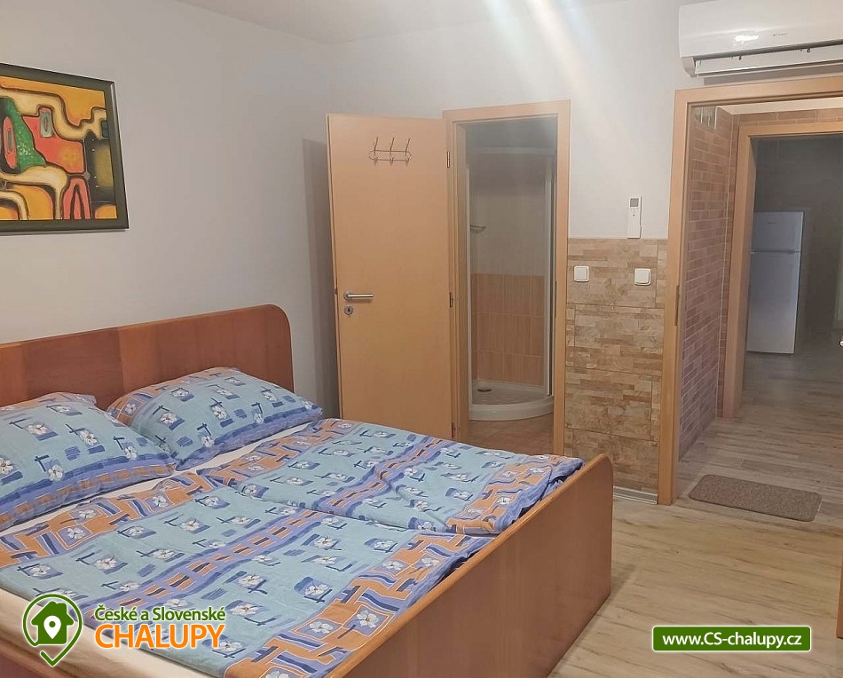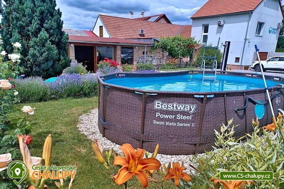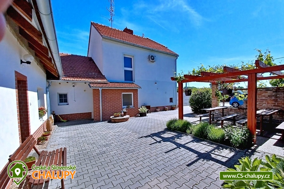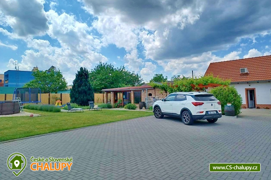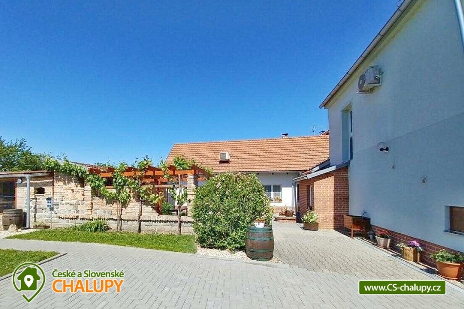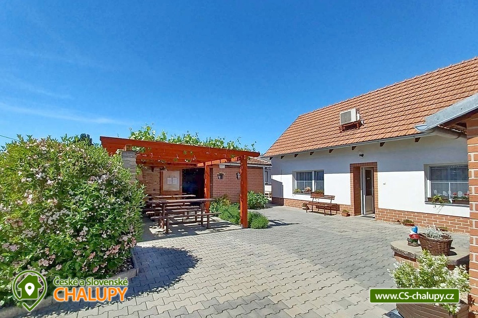 Pension U Dyje is located in the village of Bulhary on the border of the Lednice-Valtice area and the PLA Pálava near the Nové Mlýny dam. Peaceful accommodation will be appreciated by tourists, cyclists, fishermen and families with children who like nature, privacy and a homely environment. The river Dyje flows right by the guesthouse, which encourages boating activities. Pension U Dyje offers accommodation for 18 people in separately rented rooms and apartments with private bathroom, kitchenette, TV, WIFI and air conditioning. Upon agreement, the guesthouse can be rented as a whole. Description: On the ground floor there are 2 double rooms (double bed). On the first floor there is a SMALL APARTMENT with capacity for 5 people. The apartment includes a double bedroom with an extra bed (double bed, sofa bed) and a double bedroom (double bed). There is also a LARGE APARTMENT with capacity for 9 people located on the ground floor in the courtyard. The apartment includes a four-bed bedroom (a double bed and a bunk bed) and a five-bed bedroom (two connected daybeds, a bunk bed and a single bed), a common room with a dining table and a spacious kitchen. In this apartment, each bedroom has its own bathroom and separate refrigerator. A baby travel cot can be provided by arrangement. All rooms and apartments are equipped with a kitchen or a kitchenette with a microwave, kettle, fridge, basic dishes, a spring and a tea towel. The kitchenettes in the apartments and room No. 1 are also equipped with an oven and a hob. The kitchen in the large apartment also has 2 large fridges with freezers and a dishwasher. WIFI internet connection is available throughout the building. The social facilities include a total of five bathrooms with shower and toilet. A washing machine is available for guests in the basement of the guesthouse. An iron, ironing board and hair dryer can be rented. Heating is provided by central heating. All rooms are air-conditioned. In the backyard there is a seating area under a covered terrace for all guests. There is a grill and a fire pit. Ping-pong or electronic darts can be rented. Children will enjoy the trampoline and sandpit. In summer, you can enjoy refreshment in the large above-ground pool, which has a solar shower. There is also a wine cellar and a winter garden on the grounds of the guesthouse, where guests have unlimited access. Upon agreement, a tasting with an explanation by a sommelier can be arranged. There is a storage room for bikes and skis. You can park directly at the building. In the vicinity of the pension, the possibility of hiking, cycling, swimming, mushroom picking and fishing. There is a riding school nearby. Swimming options include, for example: Nové Mlýny reservoir, Šutrák pond, Mlýnský pond, Mariánský mlýn quarry, Mikulov - Riviera swimming pool, Břeclav pool, Břeclav swimming pool, Velký Bílovec pond, Němčičky swimming pool, Hustopeče pool, Pasohlávky Aqualand Moravia water park, etc. To Lednice Castle, Valtice Castle, Minaret - the oldest romantic building in the Lednice - Valtice area, Jan's Castle, St. Hubert's Chapel, Dolní Věstonice, Na Turoldu Cave or Mikulov are alluring for excursions in the area. We look forward to seeing you here.