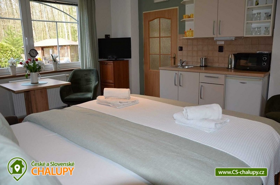 Pension Pohoda - apartments Svatava - Sokolov. We offer accommodation with a swimming pool and infrared sauna in a family pension and a separate apartment located in the heart of the Karlovy Vary region. Here you will find the privacy of a closed area, your own parking lot, an outdoor pool (in summer), deckchairs, a grill, a large summer terrace, a garden gazebo, an open fireplace and a bicycle storage room. During your stay with us, you can treat yourself to breakfast, an infrared sauna, massages, therapy or coaching (all additional services must be ordered in advance). We provide accommodation for 1 - 22 people, in 7 rooms and one large apartment, which is located in a separate building. All our rooms have their own sanitary facilities. Accommodation is rented by individual rooms, it is also possible to rent the entire building. PENSION BUILDING: 7 rooms / 16 beds. In the guesthouse, the rooms are divided into 4 smaller rooms on the first floor and 3 studios on the ground floor. The advantage of the rooms on the first floor is a common sitting area including an equipped kitchenette (stove without oven, 2 refrigerators, MW, kettle). The space is suitable for groups of 6-9 people. There are 3 double rooms and 1 triple room available on the first floor. The advantage of studios on the ground floor is a separate entrance/exit directly to the garden and a small kitchenette for preparing drinks, cold food and heating food (not for cooking), which includes a fridge, microwave oven and kettle. Two studios are double, one is triple. LARGE SUITE: 3 bedrooms/6 beds. The generous and comfortable three-bedroom apartment of 81m2 is suitable for a family or group of friends up to 6 people. This spacious and stylish apartment offers absolutely everything you need for perfect comfort. It is located in a separate building, so it provides absolute privacy. In it you will find an equipped kitchen (dishwasher, fridge, induction hob, electric oven, microwave oven, kettle, Bosch capsule coffee machine, drip coffee maker), a modernly furnished living room, a comfortable bathroom with a large shower and bathtub and three separate bedrooms (double , triple, single), balcony with a view of the garden and the forest. Thanks to our location outside the city, we are also a popular place for organizing weddings and family celebrations of up to 30 people or corporate stays. For group stays and events, you can also have the dining room/restaurant area and equipped professional kitchen available. The romantic atmosphere of the guest house will form a beautiful backdrop for your wedding photos. The entire pension is non-smoking, has its own parking lot and free wireless internet connection throughout the building. In the surrounding area, you can look forward to outdoor and indoor swimming, hiking and cycling trips, visiting nearby monuments, skiing or even picking mushrooms. We recommend trips in the surrounding area: Lake Medard - Sokolov Sea (2 km), Hartenberg - castle ruins (6 km), Cibulka Lookout (12 km), Loket - castle and historic town (13 km), Slavkovský forest (15 - 30 km) : Důl Jeroným, Lookout on Krásenské vrchu, Kladské peat bog, Karlovy Vary (23 km): colonnades, museums, Christmas House, parks, cable car to Diana lookout, Svatošské skály, Kraslicko and Krušnohorsko (30 km): Přebuzské vresovistě, Jelení vrch, Nové Hamry, Krušnohorský Semmering, Vlčí Jamy, Cheb (30 km): Cheb Castle, Špalíček Square, Franciscan Monastery, Bismarck Lookout, Maria Loreto or, for example, Františkovy Lázně (35 km). Skiing: Bublava Ski Area (26 km) - 1 cable car, 5 lifts, also suitable for beginners and families with children, Plešivec Ski Area (46 km), Boží Dar (46 km) or Klínovec (48 km).