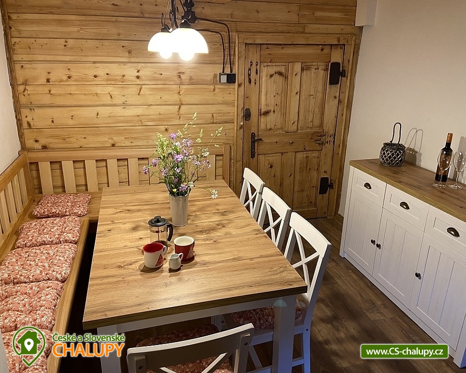 Podstávková chalupa staré časy - České Švýcarsko. Původní podstávková chalupa po celkové rekonstrukci nabízí komfortní stylové ubytování se saunou. Chalupa se nachází v severních Čechách na samém kraji Národního parku České Švýcarsko v malebné vesničce Chřibská v části Dolní Chřibská. Chalupa poskytuje ubytování pro až 11 osob ve 3 ložnicích. POPIS: V přízemí je plně vybavená kuchyň, jídelna, obývací pokoj, sauna pro 4 osoby a koupelna s WC a sprchovým koutem. V podkroví jsou 2 ložnice (4 + 4 lůžka) a 1 pokoj je v přízemí (dvoulůžko a možnost 1 přistýlky), který je spojen s obývacím pokojem. Tento pokoj můžete využít jako ložnici nebo odpočinkovou místnost. Kuchyň poskytuje vše potřebné vybavení pro vaření, pečení - el. varnou desku, el. troubu, myčku nádobí, lednici s mrazákem, mikrovlnou troubu, rychlovarnou konvici, kávovar, toustovač, topinkovač, tyčový mixér a kompletní nádobí. V jídelně se pohodlně nají všech 11 hostů pohromadě. Pro nejmenší máme připravenu dětskou židličku. Příjemnou atmosféru v obývacím pokoji doplňují krbová kamna. Dětská postýlka je k dispozici zdarma. Pro zpříjemnění vašeho pobytu je vám k dispozici sauna pro 4 osoby, pro milovníky vína je připravena vinotéka s výběrem výborných moravských vín. Sociální zařízení: 2 x WC a koupelna se sprchovým koutem včetně ručníků pro každého. Vytápění: Chalupa je vytápěna dřevem s horkovzdušným rozvodem do všech místností. Parkování pro 3 auta přímo u chalupy. Pokud přijedete i s koly, je vám k dispozici „kolárna“ uvnitř chalupy. Na zahradě je připraveno venkovní posezení, ohniště a přenosný gril na dřevěné uhlí. U nás se nudit nebudete. Okolí nabízí mnoho aktivit po celý rok - turistiku, cyklistiku, procházky po lese, houbaření, v létě koupání nebo lyžování v zimě. Oblíbenými cíli jsou např. Jetřichovice, Doubice, Kyjovské údolí, Dolský Mlýn, Pavlínino údolí, soutěsky v Hřensku, Pravčická Brána, Tolštejn a mnoho dalších. V 8 km vzdáleném Jiřetíně pod Jedlovou najdete zábavu jak v létě - Adrenalin park Jedlová, tak i v zimě - lyžařské vleky v Horním Podluží a na Jedlové. Vodopády: Voda z úpatí Plešivce stékající přes dvě skalní lavice vytvořila v malebném zákoutí městského lesa dva malé přírodní vodopády. Vede k nim upravená vycházková cesta. Těšíme se na Vás u nás.