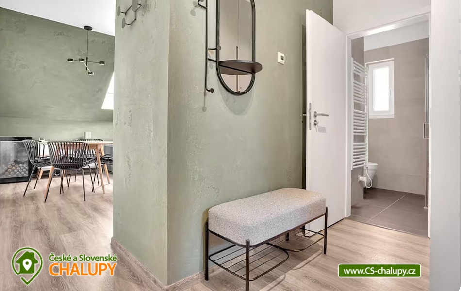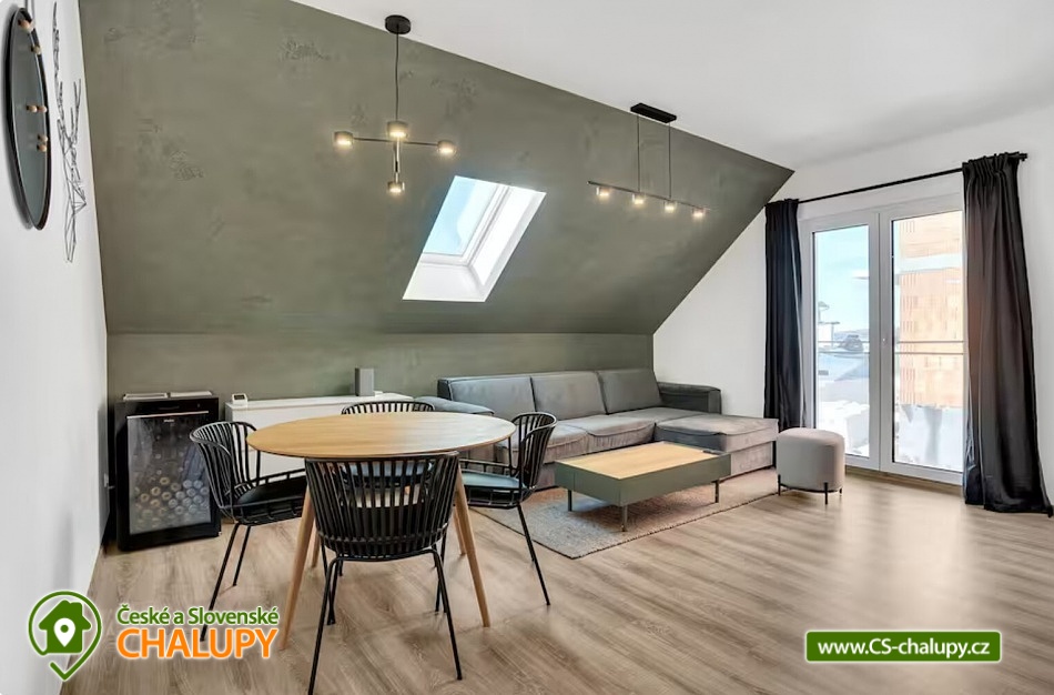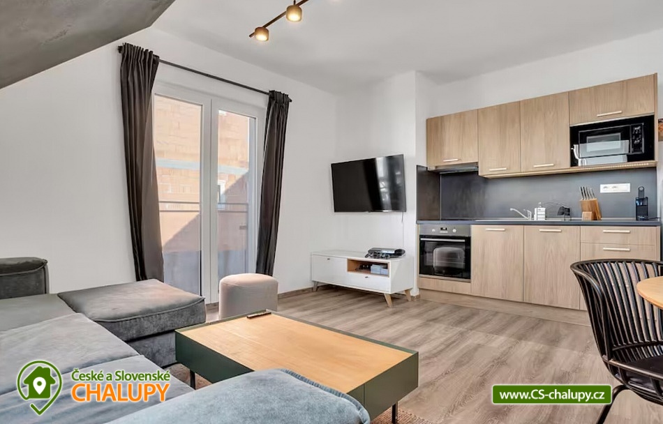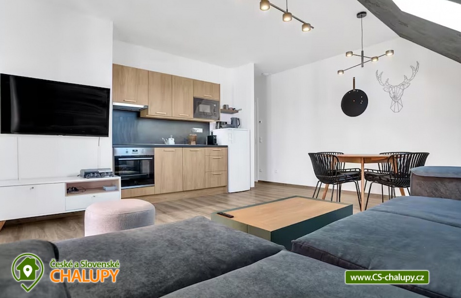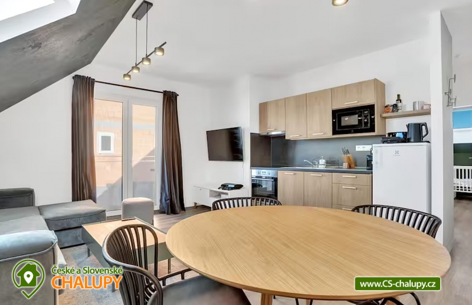 Holiday home in the Na kopci area - A modern apartment on the second floor of a holiday home is located near the Háj settlement, the Klínovec and Boží Dar areas. Its location makes it an ideal place for well-deserved rest, cycling trips, hiking or skiing. The apartment provides accommodation for up to 4 people in 1 bedroom: 1x double bedroom (1x double bed) and an extra bed in the form of a sofa bed for two people in the living room. You will also find a cot here. There is also a fully equipped kitchenette (ceramic hob, electric oven with grill, dishwasher, fridge, freezer, microwave, kettle, coffee maker, toaster, toaster and dishes) with a dining area, which is connected to the living room with a comfortable sofa, TV, wine cellar and a PS3 game console. The sanitary facilities include a bathroom with a shower, toilet, sink, heating ladder, hairdryer and towels. The building is heated by radiators and underfloor heating. There is a ski room including a ski boot dryer. The building offers free WI-FI internet access. The house is surrounded by a garden with parking directly at the building (one parking space is reserved for the apartment, which is marked). In the vicinity of the building there are opportunities for hiking, cycling, swimming, skiing, cross-country skiing, fishing or mushroom picking. Swimming options include, for example: Perštejn swimming pool, Klášterec nad Ohří aquapark or Agricola aquapark. In winter, nearby ski resorts are an advantage, for example: Klínovec ski resort, Boží Dar ski resort, Fichtelberg ski resort or Plešivec ski resort. The surrounding area is attractive for trips: Klínovec viewpoint, Klínovec Trail Park, Ježíškova cesta, Božídarské rašeliniště, Meluzína, Hadí hora, Stará vápenka or Vysoká pec. We look forward to seeing you at our place.