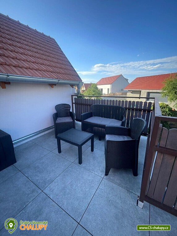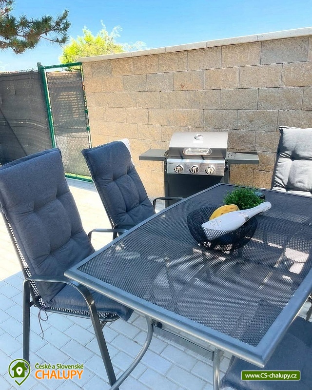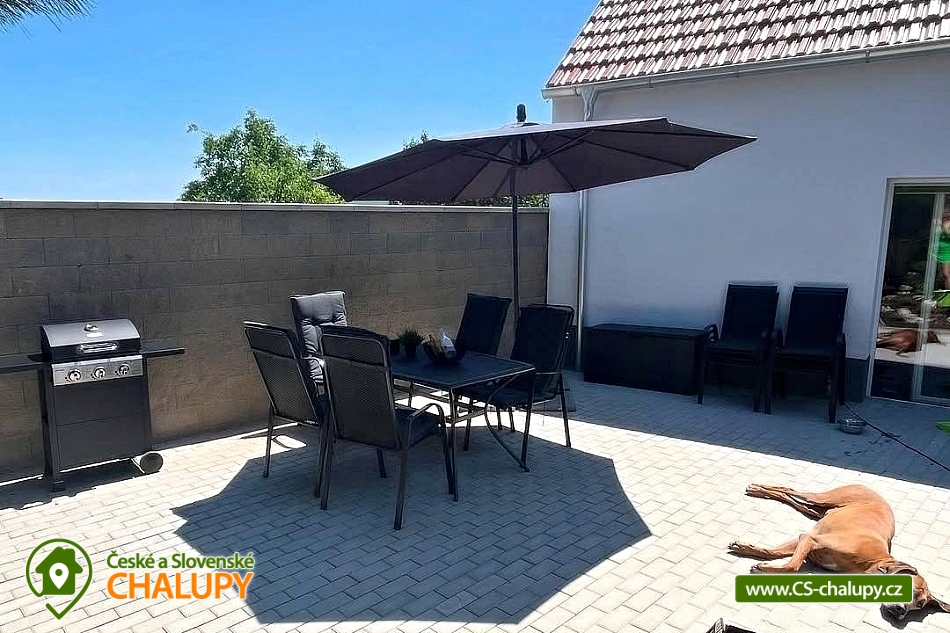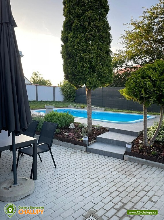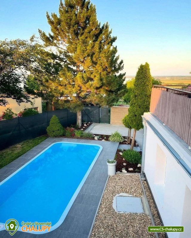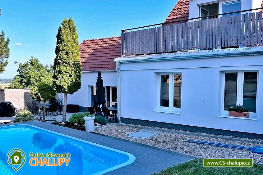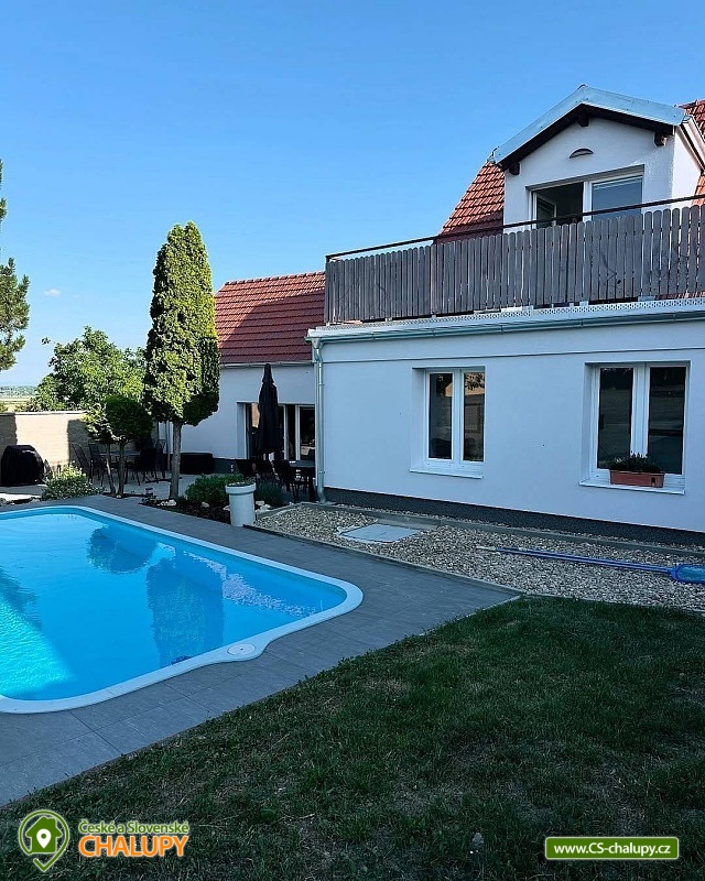 The modern holiday home with a swimming pool is located in the picturesque village of Pavlov in South Moravia. Its location makes it an ideal place for a well-deserved rest, cycling trips, hiking and visits to wine regions. The accommodation is suitable for family holidays, stays with friends and corporate events. The house provides accommodation for 18 people in 5 bedrooms: 1x double room (1x double bed), 1x triple room (1x double bed, 1x single bed), 1x quadruple room (4x single beds), 2x quadruple rooms (1x double bed, 2x single beds) and 1x extra bed in the form of a fold-out bed for two person in the hallway. The property has a fully equipped kitchen (electric oven, gas stove, microwave, kettle, fridge, freezer, toaster, dishwasher and dishes) with a dining area and a living area with a seating area, TV and direct access to the terrace. The sanitary facilities include 1 bathroom with a bathtub, toilet, sink and hairdryer and 1 bathroom with a shower, toilet and sink. The cottage is heated by gas heating and underfloor heating in the living area. The property offers free WI-FI internet access. The house is surrounded by a fenced garden with parking directly at the property (max. 2 cars). The garden includes a swimming pool, a terrace with outdoor seating and a grill. Hiking, cycling, swimming, fishing and mushroom picking are possible in the area. Swimming options include, for example: the Nové Mlýny water reservoir, the Mariánský mlýn quarry, the Pasohlávky aquapark, the Mikulov swimming pool or the Šutrák pond. Trips in the area include: the Pálava Hills, the ruins of the Děvičky castle, the Mušovská lakes, the Pálava Protected Landscape Area, the historic town of Mikulov or the Lednice-valtice area. We look forward to seeing you.