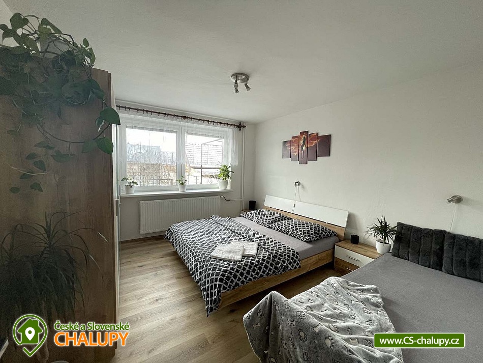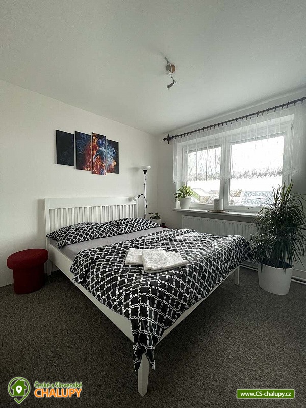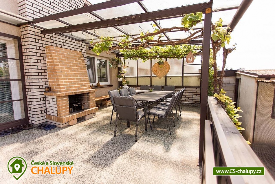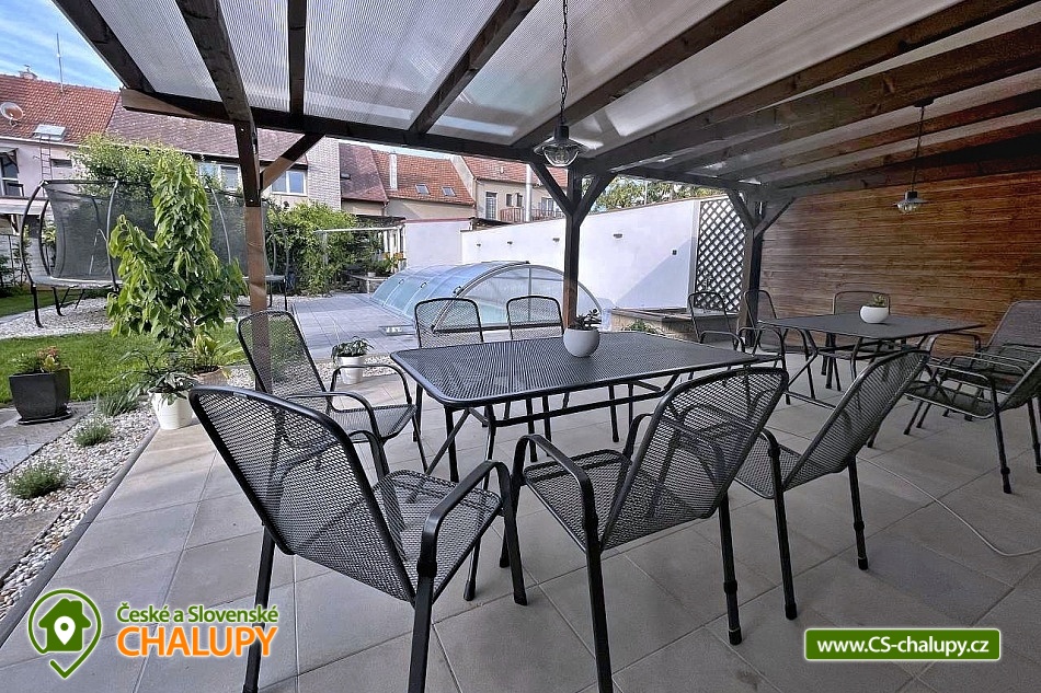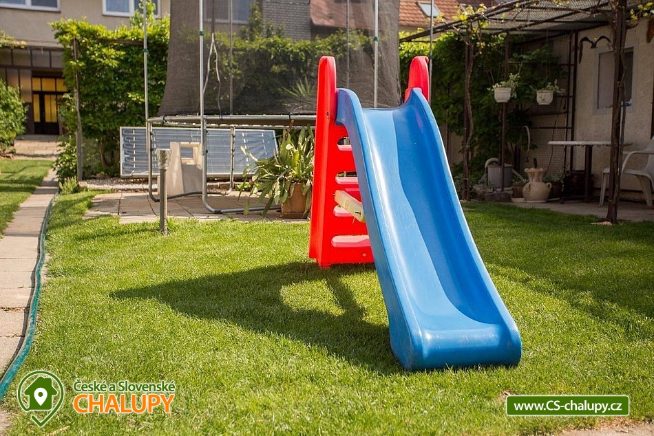 Friendly house Bořetice with pool - Velké Pavlovice - South Moravia. We offer accommodation in a family house with garden and terrace for up to 14 people. The house is very spacious, with a four-bed room, one triple and two double rooms, a living room, a fully equipped kitchen and two bathrooms. There are 3 extra beds available in the building with mattresses on the floor. The fully equipped kitchen includes a dishwasher and all utensils. There is a TV in one of the rooms and the living room. On the ground floor there is a bathroom and a separate toilet. Upstairs there is a separate toilet and a bathroom with another toilet. Heating is provided by a gas boiler. The building has 1 parking space directly in the garage and 4 parking spaces in front of the house. In the garden, children have a trampoline, swings, slides, a sandpit and a seasonal pool. Right in Bořetice is the Kraví Hora hotel, the Mlýn restaurant, the Modré Hory restaurant and one famous cafe Dvorek. Cyclists will also enjoy themselves in this region, for which a 1,200 km long network of wine trails awaits. In ten regional circuits, you can drive through the rugged landscape between vineyards, cellar alleys, protected natural sites and get to know the important historical and natural monuments of South Moravia. Not far from Bořetice, you will find the recessionist federal republic of Kraví hora, where you can order a wine tasting from local winemakers, as there are over 200 wine cellars here.