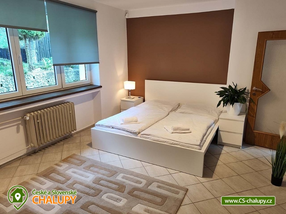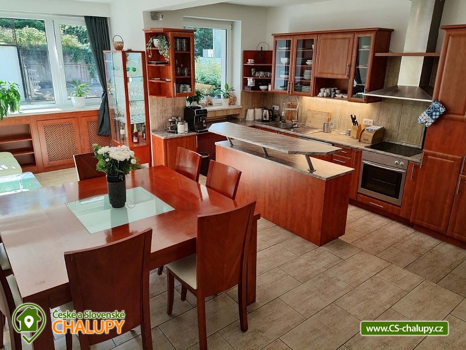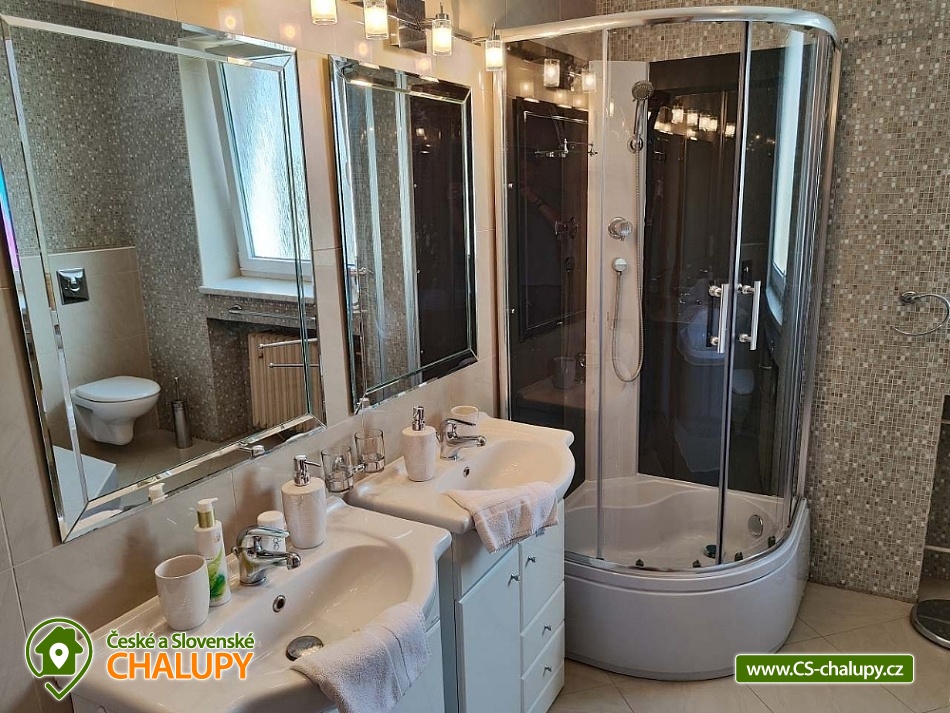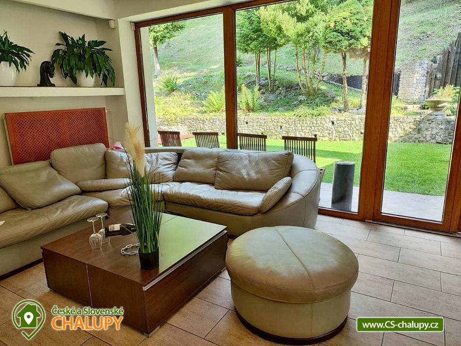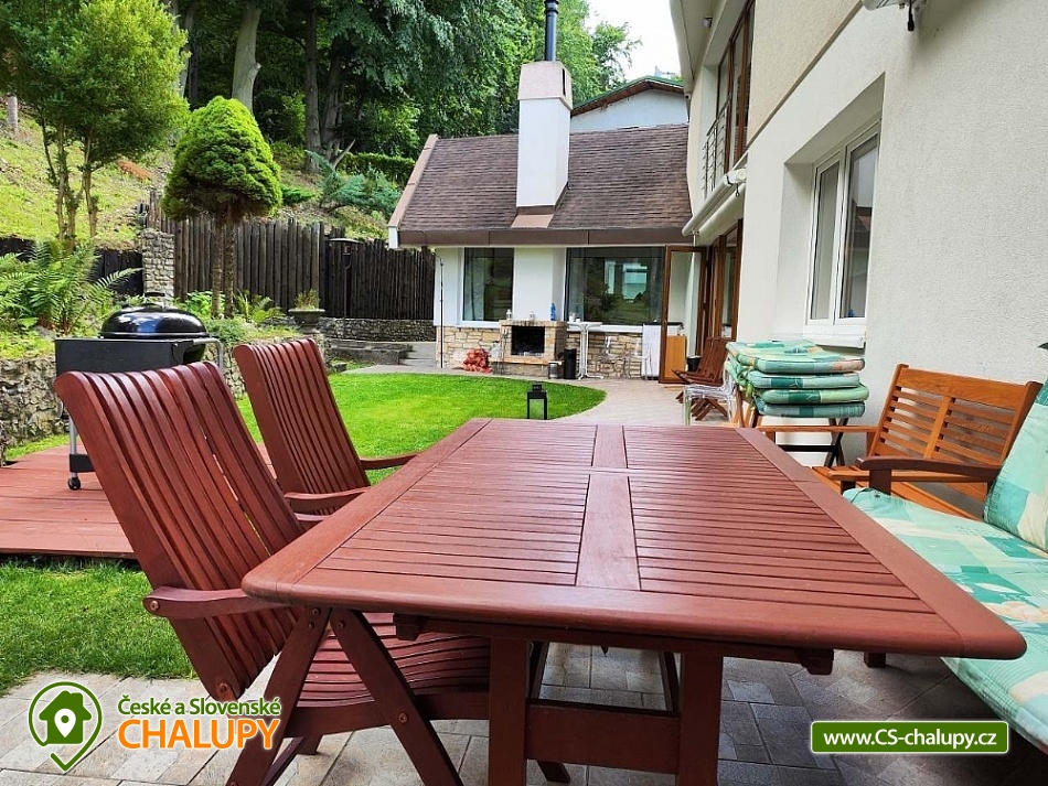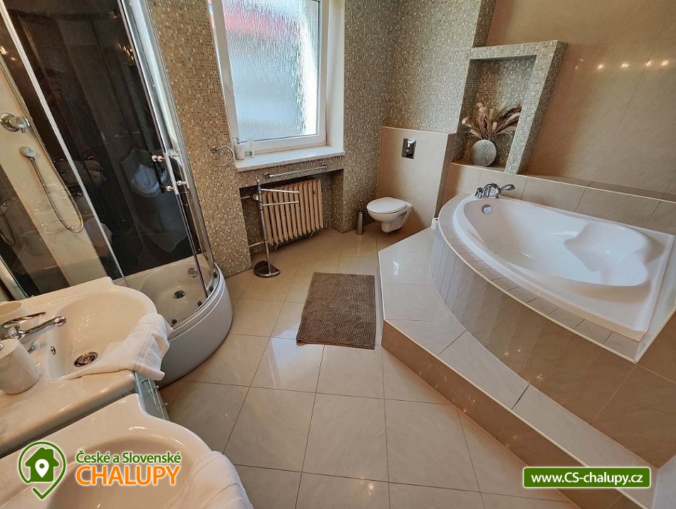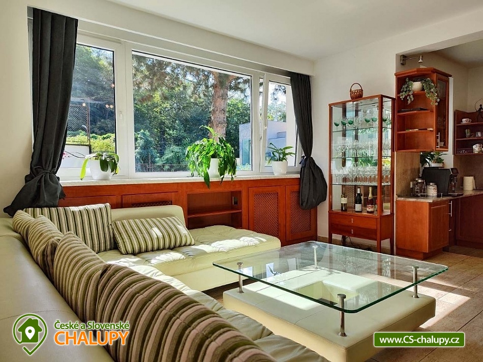 Villa Prag - Prague Hlubočepy - indoor pool and jacuzzi. We offer a comfortable villa for rent in a quiet location for up to 32 people in a total of 11 bedrooms. Villa Prag can be found in the capital city of Prague in the Hlubočepy district, just 3.8 km from Vyšehrad and 600 m from the Barrandov Film Studios. The building has a spacious living room with a TV and a view of the garden. The fully equipped kitchen includes a dishwasher. The building has 6 x 2-bed bedrooms and 5 x 4-bed bedrooms. There are a total of 3 bathrooms with toilets in the villa. Parking at the building is private and free of charge. Vila Prag is located at the end of the dead-end street Pod Habrovou in a very quiet part of Barrandovo. There is a private saltwater pool, a hot tub and a garden with a barbecue. The sun terrace for sitting is very nice. The villa is surrounded by a forest that provides complete peace and privacy. At the same time, you can reach the center on Národní třída in ten minutes by car and in 20 minutes by public transport. In the summer, it is possible to sit in complete privacy in the atrium by the outdoor fireplace and enjoy the view of the large forest park-style garden measuring 3,000 m2. The villa is suitable for accommodating managers, organizing events, but also for accommodating groups of foreign tourists or for family vacations. The capital city of Prague offers activities, attractions and trips. For golf lovers, the Hodkovičky Golf & Country Club is only 3 kilometers away. In this area you will also find tennis courts and other sports activities. The most important Prague monuments, such as the Charles Bridge or the National Museum, are only 6 km from our villa.