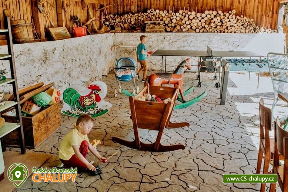 Cottage Skála - Věž - Havlíčkův Brod. Treat yourself to relaxation and peace in our cottage with wellness, which is located a short distance from the forest and the pond, in the heart of Vysočina. It is located in the small village of Skála, part of the village of Věž. The cottage offers accommodation for 10 people (for 6 people directly in the cottage and for 4 people in a nicely furnished barn). The cottage has: a four-bed and a double bedroom with the possibility of renting a baby cot, a fully equipped kitchen with a tiled stove (dishes, hob, microwave and oven, dishwasher, 2 fridges with freezers, toaster, whisk, kettle, basic spices, coffee beans, coffee grinder and mocha pot, immersion blender and bread maker), bathroom with bathtub, sink, shower, infrared sauna and two separate toilets with stone sink. Stylish living will be provided by the barn, where there are 4 beds, bar seating and a fully equipped kitchen. Inside the cottage there is a children's corner with lots of toys, books and board games. Wi-Fi connection and air conditioning available. The building is heated by a wood boiler, there is a tiled stove in the kitchen and underfloor heating in the bathroom and toilet. Parking possible at the cottage. In the yard there is a large covered sitting area with a barbecue and a children's playroom, a heated swimming pool, deckchairs, table football, darts, ping-pong, a trampoline, a swing, a sandpit and a fire pit. There is also a wine cellar with the possibility of buying wine and the possibility of renting two bicycles. There are plenty of hiking and cycling trails in the area. Swimming options: Kachlička pond, Pařezáč Plačkovský pond, Pavlov quarry near Heráleka and Humpolec - Žabák swimming pool. Tips for trips: Orlík castle ruins near Humpolec, Bee educational trail, Ronovec castle ruins, Světlá nad Sázavou castle, Humpolec - museum, brewery, disc golf, Březina educational trail, Zichpil open-air museum and bee open-air museum. In winter, you can use the nearby ski resorts: the Šacberk ski area, the Křemešník ski area and the Vysoká u Havlíčkova Brod ski area. We look forward to seeing you here.