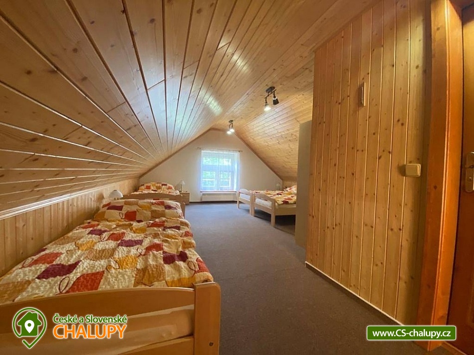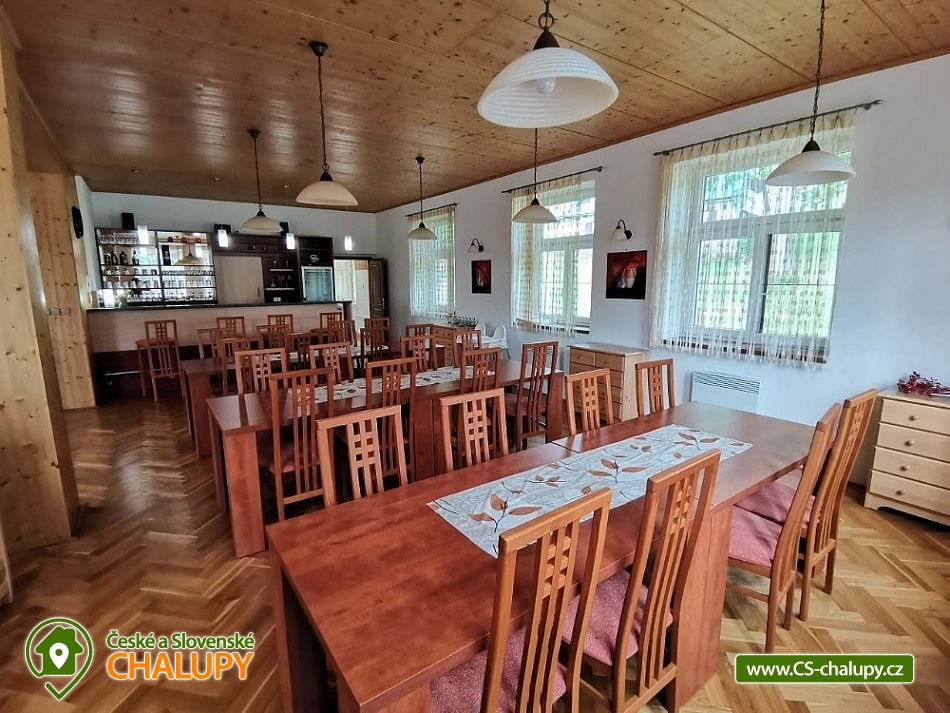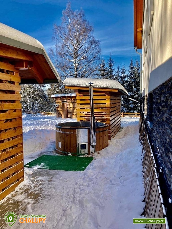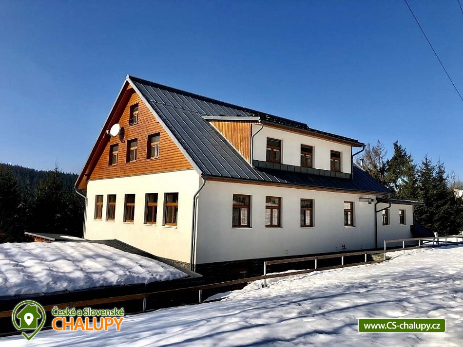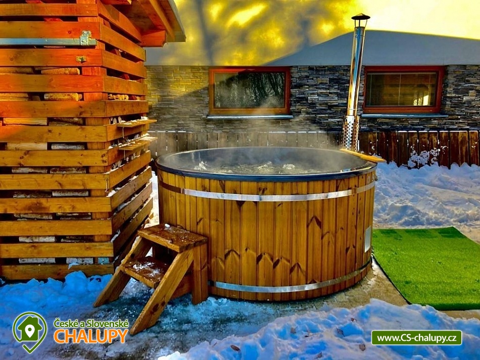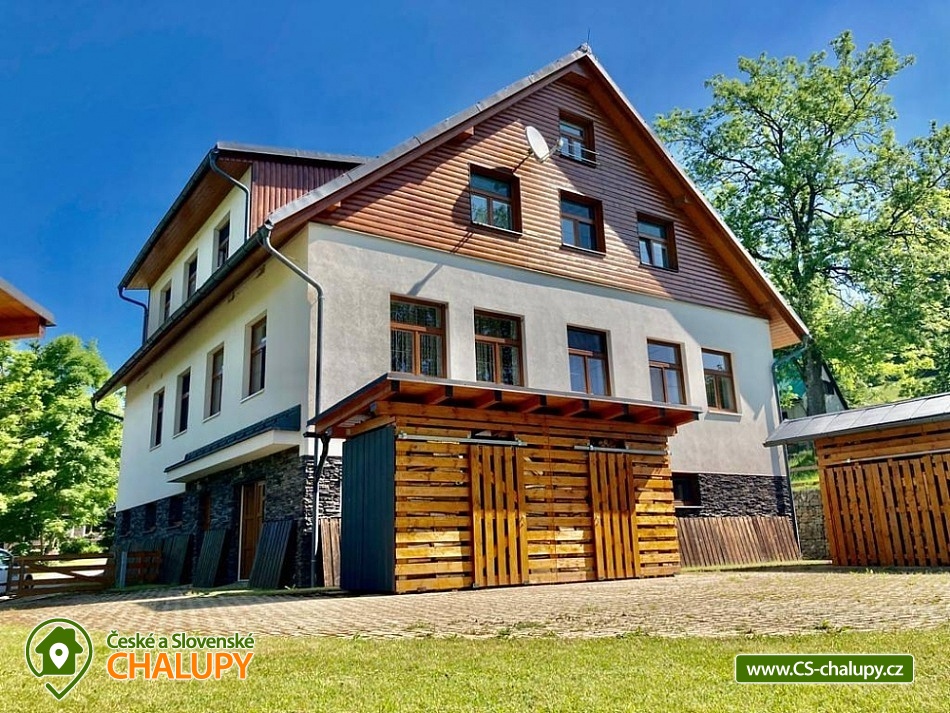 Rodinná chalupa a vyhřívaný koupací sud v Orlických horách, Říčky a Deštné jsou vzdáleny 6 km a 11 km. Chalupa je svým vybavením zaměřena především na rodiny s dětmi. Disponuje zázemím pro vyžití jak uvnitř – dětská hernička, tak i venku – oplocené dětské hřiště, sportovní vybavení - fotbal, basketbal, ping pong.. Chalupa se nachází v Orlických horách v horské vesničce Zdobnice a poskytuje ubytování pro až 34 osob v 10 samostatných pokojích, kdy každý pokoj disponuje vlastní koupelnou a WC. 5 pokojů je čtyřlůžkových , 5 dvoulůžkových + 4 přistýlky, k dispozici jsou 2 dětské postýlky. V chalupě je plně profesionálně vybavená kuchyně: lednice, trouba, konvektomat, sporák, myčka, varná konvice, kávovar a veškeré kuchyňské vybavení. Když nebudete mít chuť vařit, v okolí najdete několik restaurací. Velkou dominantou chalupy je prostorná společenská místnost (130m2), která je určena jak pro společné posezení a stravování, tak pro chvíle strávené u krbu. Dále je zde také další menší společná místnost určená pro Vaše hlasitější večery. Chalupa je svým vybavením zaměřena především na rodiny s dětmi. Všechny pokoje disponují vlastním sociálním zařízením (sprchový kout a WC). Na dvou patrech jsou navíc samostatné toalety. Objekt je vytápěn krbovými kamny a elektrickými přímotopy. Parkování je možné přímo u chalupy pro 10 aut. U chalupy je basketbalový koš, pingpongový stůl, fotbalové branky, lyžárna/kolárna. Dále gril a venkovní posezení s ohništěm. Také je zde myšleno na děti, které zde mají možnost se vyřádit na oploceném hřišti, které disponuje: fotbalovými brankami, trampolínou, prolézačkami, houpačkami, klouzačkou a pískovištěm. V okolí se nachází řada turistických cílů dostupných pěšky na kole i autem. Chalupa umístěna v srdci Orlických hor a je v létě ideálním zázemím pro cyklisty a turisty a v zimních měsících pro lyžaře a běžkaře. Ideální nástupní místo na běžecké stopy směrem na Orlickou magistrálu se nachází přímo u chalupy. Sjezdovky ve Zdobnici jsou vzdáleny 600m. Větší lyžařské areály Říčky a Deštné jsou vzdáleny 6 km a 11 km. Přímo ve Zdobnici jsou pro cyklisty k dispozici nově vybudované singltreky.