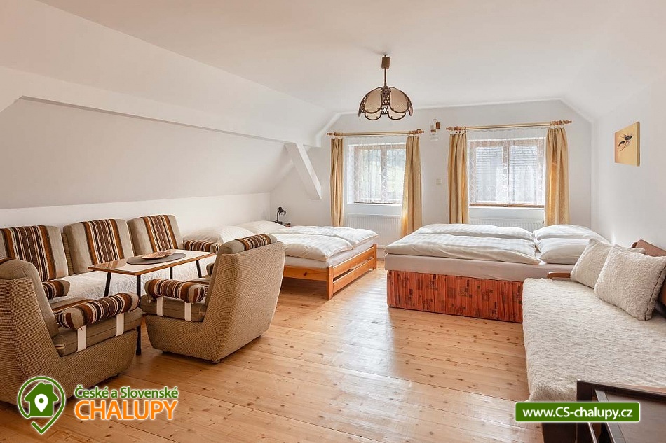 Rodinná chalupa v Orlických horách - bazén, houpačka hnízdo, klasická houpačka, pískoviště, gril, ohniště. Doporučujeme pro pobyt s dětmi. Chalupa poskytuje ubytování pro až 14 osob ve 4 samostatných ložnicích, součástí chalupy je i samostatný apartmán pro 2 osoby. U chalupy je nadzemní bazén (léto) - velmi klidné místo a ve vzdálenosti 1 km od chalupy je nové venkovní dětské hřiště s možností koupání. POPIS: 3 samostatné ložnice (pokoj pro 5 osob s dětskou postýlkou + pokoj pro 4 osoby + pokoj pro 3 osoby s dětskou postýlkou). Dále samostatný apartmán s vlastní koupelnou - 2 postele plus možná přistýlka. K dispozici dvě dětské postýlky, pračka, sušák na prádlo, 3 lednice s mrazákem. Obývací pokoj s televizí, jídelním stolem a kompletně vybavená kuchyň - myčka, tři lednice s mrazákem, trouba, 2 x rychlovarná konvice, sporák, 2 x mikrovlnka, veškeré potřebné kuchyňské vybavení. Venkovní posezení s ohništěm, možnost grilování, místo na uskladnění kol, lyží, sportovního vybavení. V létě k dispozici bazén a houpačka pro děti i dospělé, pískoviště. V okolí: Ski areál Zdobnice - vzdálenost 600m, upravené běžkařské trasy, lyžařský areál Říčky - 6 km a Deštné v Orlických horách - 11 km. Okolí je ideální v létě pro cyklisty - nově ve Zdobnici zbudované singletracky. Těšíme se na Vás u nás.