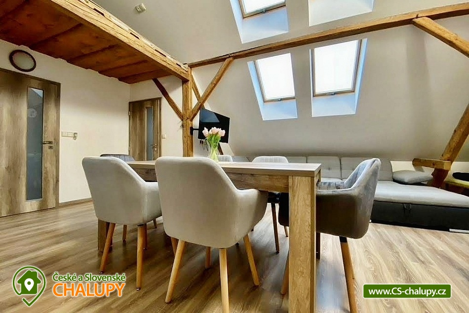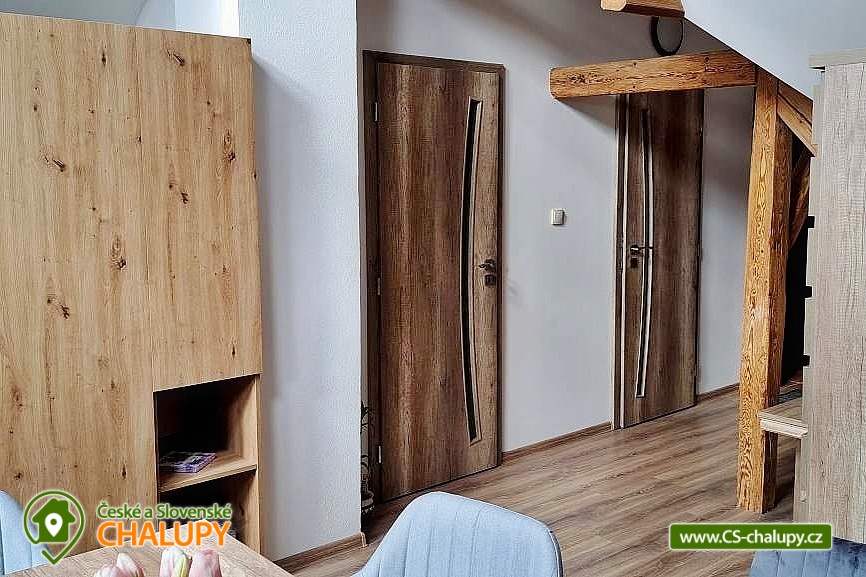 Cottage "U kapličky" with wellness and swimming pool in the garden is located in the village of Dančovice, located on the border of South Bohemia, Vysočina, South Moravia and Austria. Dančovice is part of the village of Dešná in the Jindřichův Hradec district. The cottage offers comfort for your family vacation or a relaxing weekend with friends. The cottage for rent provides accommodation for up to 30 people in 5 bedrooms. DESCRIPTION: 4 separate apartments: AP BRICK - number of beds 6 extra beds 2, kitchen with living room, bedroom, toilet, bathroom with shower and bathtub, hallway. Beds - double bed, 2 bunk beds, sofa bed. AP SUNNY - number of beds 10, number of extra beds 6 - 8. Two-generation apartment - 3x bedrooms, living room, relaxation double bed - bed, large sofa bed for 3 - 4 children, attic, bathroom with toilet, shower and bathtub, second separate toilet with sink. AP U BOBA a BOBKA - number of beds 3 extra beds 2, kitchenette, bathroom with shower and toilet. Beds - 3x large single bed, 1x sofa bed. AP NA ŽUDĚ - number of beds 3, extra beds 2, kitchenette, bathroom with shower and toilet, living room and playroom. Beds - 2x single bed, 1x cot, 1x sofa bed for 2. Sanitary facilities: 4x bathroom and 6x toilet. The cottage is heated by floor or ceiling electric heating with wifi regulation. There is an indoor fireplace in the beer garden. Parking in front of the building - guarded by a camera system. Each apartment is equipped with a kitchen with an electric hob, oven, microwave, combined fridge and coffee maker. There is also a SMART TV with DVB - T2 and DVB - S2 reception. Each individual apartment has its own sanitary facilities and bathroom. The wellness area also has its own toilet and shower. Nearby: Police - castle 6 km, Uherčice - state castle 8 km, Raabs an der Thaya - AQUAPARK 15 km, Cornštejn - castle ruins 17 km, Slavonice - historical town 18 km, Dačice - castle 20 km, Maříž - ceramics 21 km, Bítov - castle 22 km, Vranov nad Dyjí castle 27 km, Vranov dam - beach 28 km and Telč - UNESCO 31 km. We look forward to seeing you.