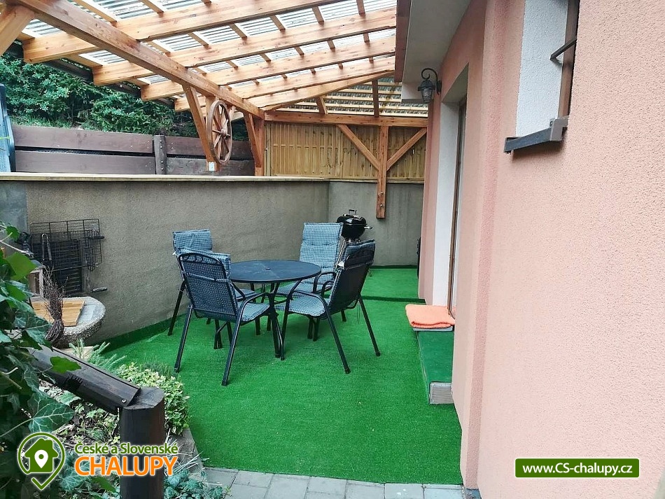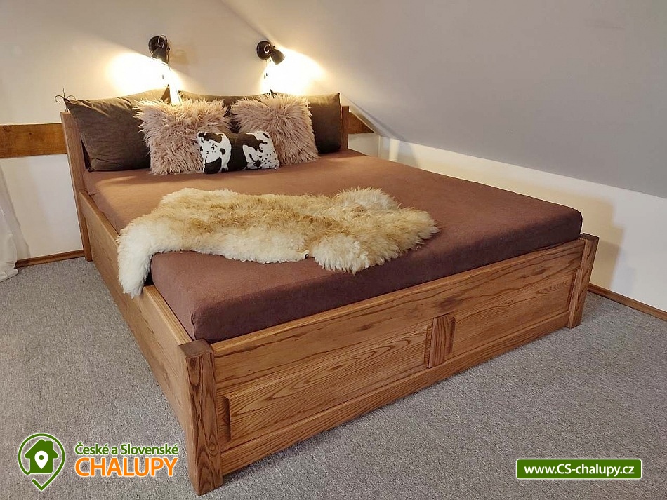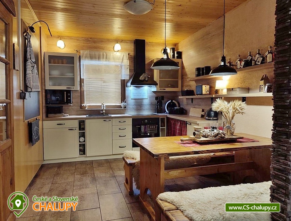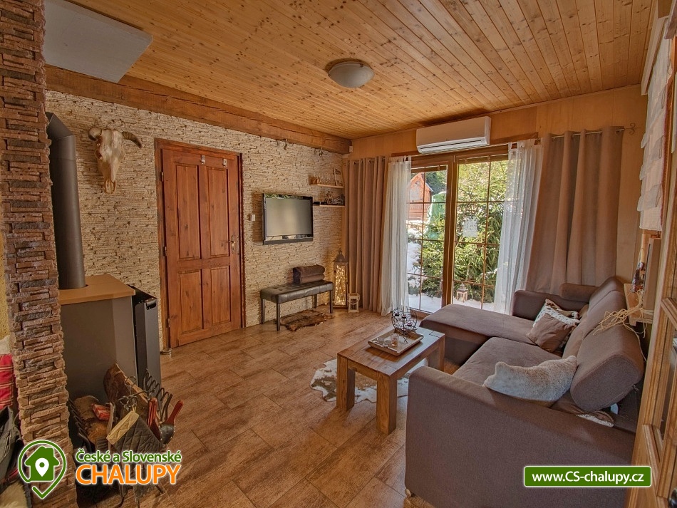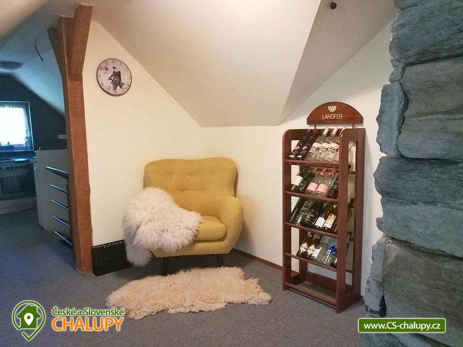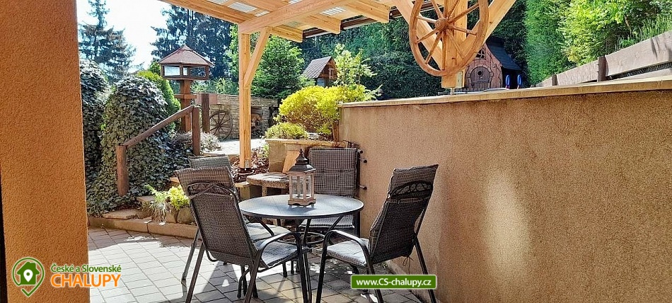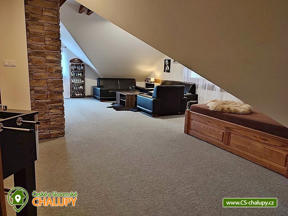 Wellness cottage Vápenice - PLA Bílé Karpaty. The cottage with a hot tub and infrared sauna is located in the beautiful nature of the White Carpathians. It is located in the village of Vápenice, on the southern slope below Mikulčíný vrch, with a view of the Slovak side, Velký Lopeník and Bošácká Dolina. Not far from the cottage (150 m) is our second cottage Andělka for rent (object 1M-307). The cottage offers accommodation for 8 people in three bedrooms (2x double bedrooms and 1x four-bed bedroom). All bedrooms always have double beds. On the ground floor there is a living room with a sofa, TV, fireplace and a fully equipped kitchen with a dining table (dishes, refrigerator, freezer, electric stove with hob, kettle, microwave, coffee maker, toaster and toaster). Furthermore, on the ground floor you will find a double bedroom with a private bathroom with a shower and toilet, an infrared sauna, a massage box with a shower, toilet and a fitness machine. In the attic there is a four-bed bedroom, a spacious living room with a sofa, TV, table football and a double bed. Furthermore, there is a bathroom with a shower, toilet and a fully equipped kitchen (dishes, refrigerator, two-burner induction hob, oven and kettle). There are plenty of board games, toys for children and Wi-Fi connection. The building is heated by electricity - direct heaters, fireplaces or air conditioning. Parking is possible directly at the building. The cottage has two terraces. One terrace can be accessed from the living room on the ground floor. There is a seating area, fireplace, outdoor fireplace and jacuzzi. Another covered terrace is on the other side of the building. There is a children's playground with an outdoor fairy-tale house full of toys, various outdoor games, a sandpit, darts, a trampoline and table tennis. In the vicinity of the cottage there is the possibility of hiking, cycling, mushroom picking, tennis, horse riding. Tips for trips: Velký Lopeník lookout tower, museum of the last Žitkov goddess, lookout tower on Skalka, city museum Slavičín, ruins of Brumov castle, zoo in Lešná u Zlína. Swimming options: Nivnická riviéra swimming pool, Starý Hrozenkov swimming pool, Delfín aquapark in Uherský Brod, Vlčnov swimming pool, Luhačovice swimming pool. Nearby ski resorts: Mikulčin Vrch - here is also the starting point for ski trails. We look forward to seeing you.