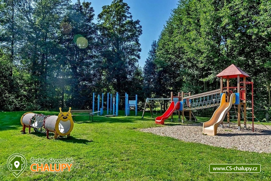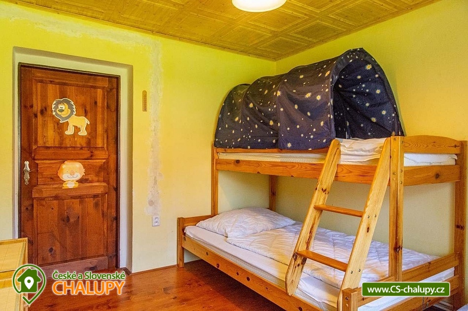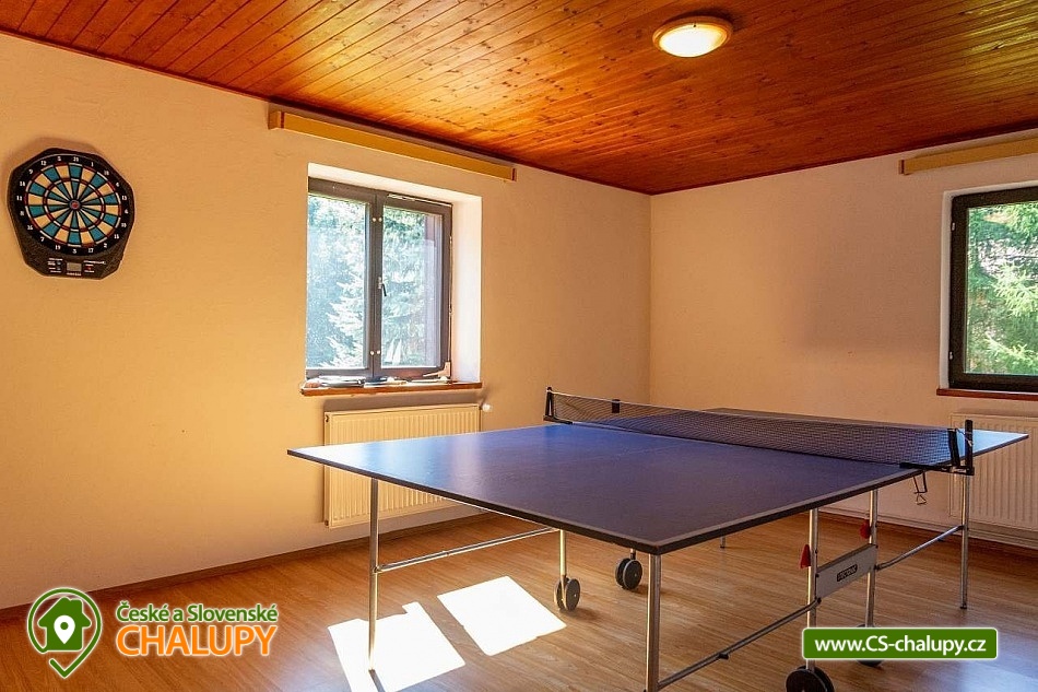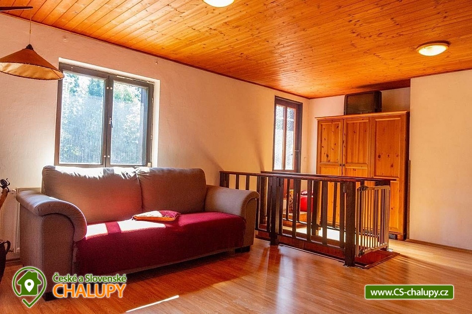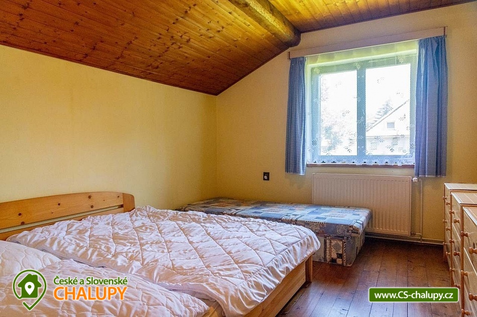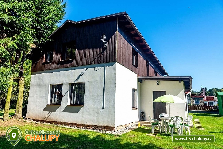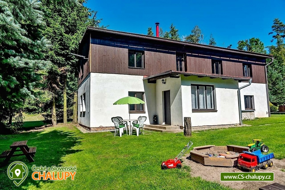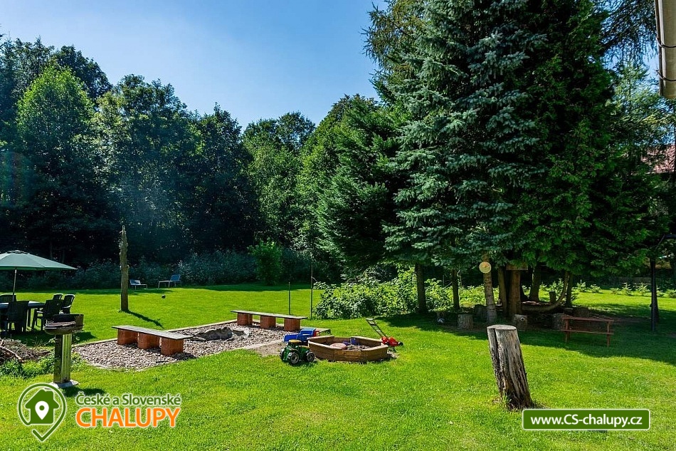 Family cottage in the foothills of the Orlické Mountains near the Deštné v Orlické Mountains area. The cottage can accommodate up to 12 people in 5 bedrooms. In the garden there is a seating area, a fireplace, relaxation for children (sandbox, swings) and a flowing mountain stream. Suitable for families with children, groups of friends, cyclists, tourists, mushroom pickers, cross-country skiers, skiers - year-round operation. The cottage provides accommodation for 12 people in 5 bedrooms. On the ground floor there is a triple bedroom (1 bunk bed, 1 single bed) and an extra bed in the form of a sofa bed for two people in the living room. On the first floor there is a triple bedroom (1 double bed, 1 single bed) and 2 double bedrooms (1 double bed). Furthermore, on the ground floor there is a fully equipped kitchenette (electric oven, ceramic hob, microwave, kettle, fridge, freezer and dishes) with a dining area, a living room with a sofa, fireplace and TV and a utility room with a washing machine and dryer. On the first floor there is a common room with table tennis and darts. The sanitary facilities include a bathroom with a bathtub, sink and separate toilet on the ground floor and a bathroom with a shower, sink and separate toilet on the first floor. The cottage is heated by a fireplace stove with an exchanger. The cottage is surrounded by a garden with parking directly at the property (max. 5 cars). The garden includes a terrace, grill, fireplace, sandpit and children's playground. There is a lockable storage room for bicycles and skis. In the vicinity of the cottage there is the possibility of hiking, cycling, swimming, skiing, cross-country skiing, fishing and mushroom picking. Swimming options include: a mountain stream right in the garden, the Rozkoš dam, the Česká Skalice swimming pool, the Nahořany swimming pool or the Nové Město nad Metují swimming pool. In winter, nearby ski resorts are an advantage, for example: the Deštné v Orlických horách ski area or the Zdobnice ski center. Trips in the surrounding area are attractive: the peat bog under Zieleńcem, the Bukačka national nature reserve, the Masaryk cottage on Šerlich, the Church of St. Matthew and the Dvůr Králové nad Labem Zoo. We look forward to seeing you here.