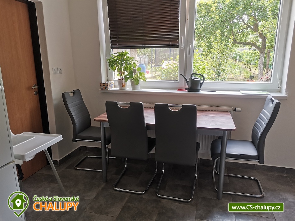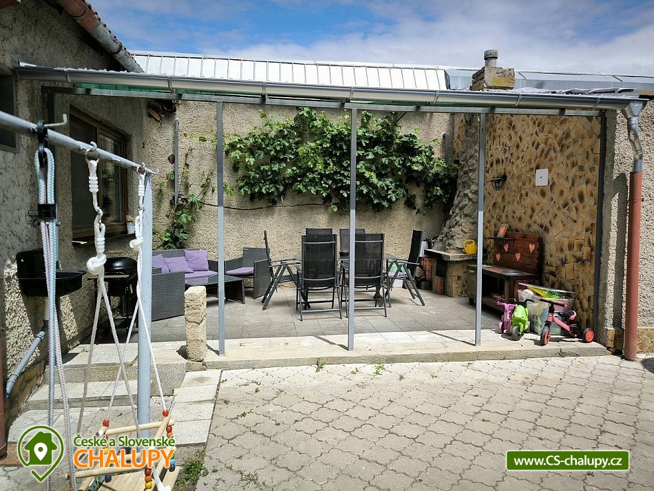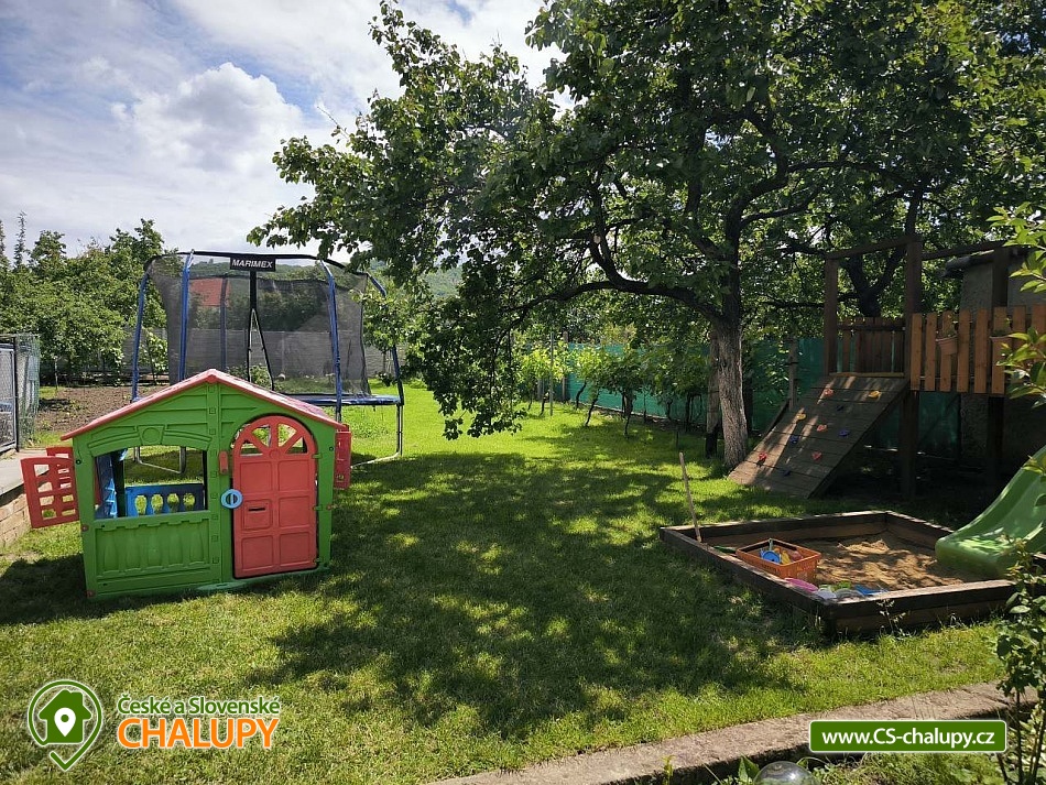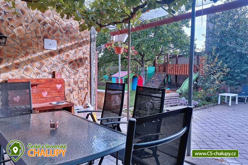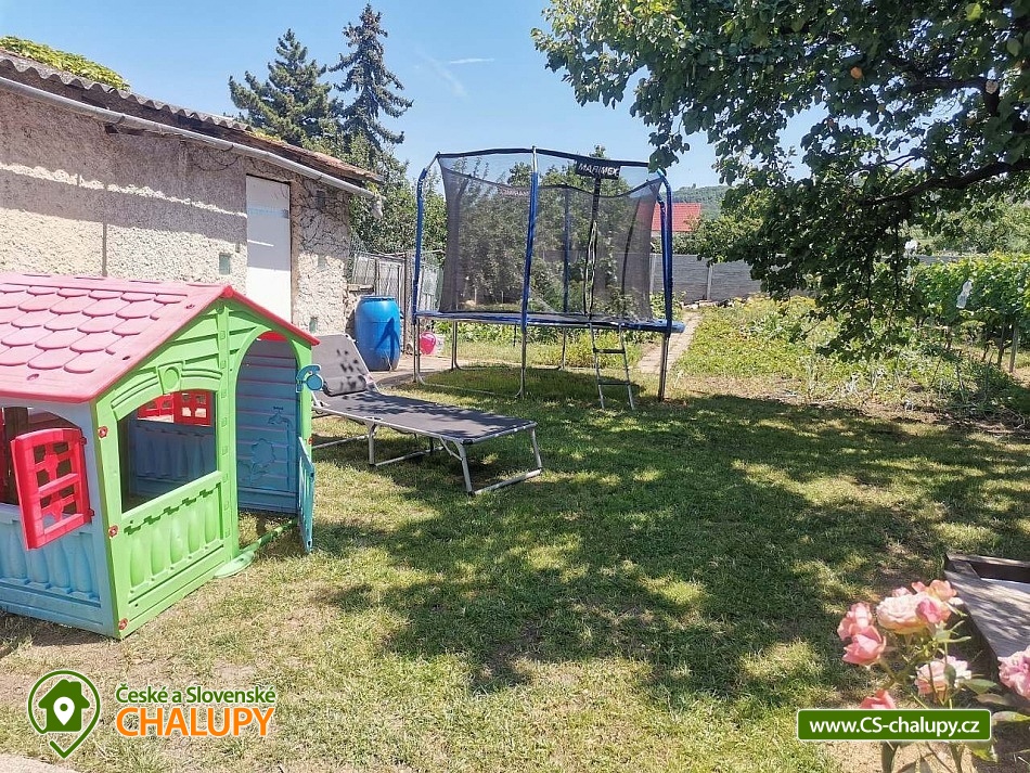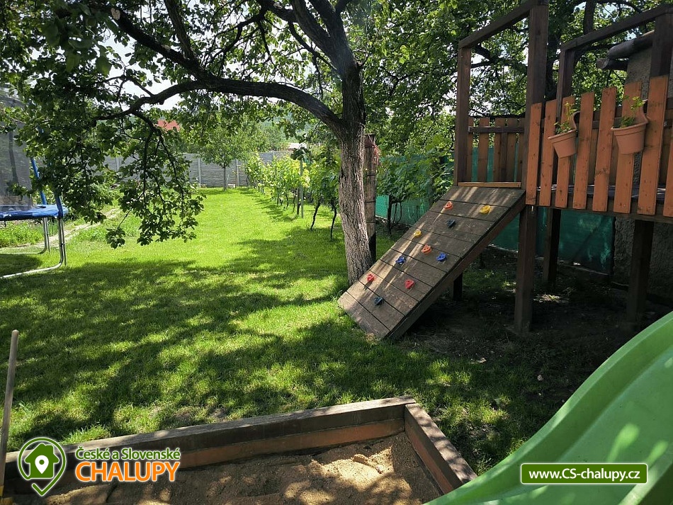 Rodinná chalupa pod Pálavou je vhodnou volbou pro milovníky vína, turistiky, cykloturistiky a jižní Moravy. Chalupa leží pod Pálavskými vrchy u obce Horní Věstonice a Novomlýnské vodní nádrže, obec Perná. Příjemnou dovolenou zde mohou strávit jak party přátel, tak i rodiny s dětmi, které ocení zázemí s herními prvky na oplocené zahradě. Objekt je vždy pronajímán celý jedné skupině rekreantů v počtu 4 - 9 osob, které se mohou ubytovat celkem ve 3 neprůchozích pokojích: 1 dvoulůžkový pokoj, 1 třílůžkový pokoj, 1 dvoulůžkový pokoj s možností přistýlky na rozkládacím gauči (vhodný pro 2 děti, případně 1 dospělý + 1 dítě). V případě menší obsazenosti může pokoj s gaučem sloužit jako společenská místnost, obývák. K zapůjčení zdarma máme dvě dětské cestovní postýlky, umístit postýlku lze do každého pokoje. K dalšímu vybavení pro děti patří jídelní židlička, nočník, redukce na wc a schodek do koupelny. V chalupě se nachází jedna koupelna se sprchovým koutem a vanou a jedno oddělené WC. K dispozici je vybavená kuchyně s velkou lednicí (včetně mrazáku), mikrovlnkou, rychlovarnou konvicí, plynovým vařičem, troubou a kávovarem Dolce Gusto (kapsle si musíte zajistit). Z kuchyně se chodbičkou dostanete na dvůr s terasou (posezení, gril, krb) a zázemím pro děti (houpačka, trampolína, domeček, skluzavka, pískoviště, kuchyňka, odrážedla atd.). Na dvůr navazuje oplocená zahrada, odkud je pěkný pohled na Pálavu. Na části zahrady je rekreantům k dispozici úroda dle sezóny (ovoce i zelenina), součástí je také ohniště pro opékání špekáčků. Posezení na dvoře si můžete zpestřit ochutnávkou našeho vína, které je k dispozici v samostatné lednici. Součástí domu je garáž vhodná pro úschovu kol, kočárků atd. Přímo před domem zaparkujete 2-3 auta. Během jara a podzimu je domek dle počasí vytápěn. V celém objektu je volně přístupná WiFi. Pokud se vám nebude chtít vařit, v obci najdete restauraci, dvě hospody a obchod s potravinami a smíšeným zbožím. Přímo z obce se dostanete pěšky na Pálavu. Můžete zde navštívit několik vinných sklepů a ochutnat vína místních vinařů, případně domluvit degustaci. Využít můžete také okolních cyklostezek. Za návštěvu stojí nejen Pálava a Mikulov, ale i širší okolí Lednicko - valtického areálu. Pokud se budete chtít v létě osvěžit, za koupáním můžete vyrazit např. na koupaliště Mikulov - Riviéra, koupaliště Březí, či do aquaparku Aqualand Moravia. Těšíme se na Vás u nás.
