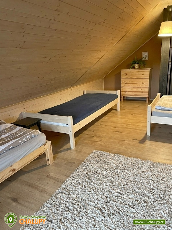 Rodinná chalupa s wellness (finská sauna a koupací sud) u Lipenské přehrady - jižní Čechy. Chalupa je součástí bývalého statku, v jehož druhé části přes dvorek sousedí s domem majitelky. Jsme tedy pro hosty vždy k dispozici, pokud s něčím potřebují pomoc, rádi připravíme saunu, horký sud, poskytneme dříví ke grilu nebo jinak podpoříme dovolenkovou pohodu hostů, případně poradíme, kam na výlet. Pokud hledáte ubytování na Lipně, ale také máte rádi klid, je pro Vás pobyt v chaloupce ideální variantou v zimě i v létě. Lipno, které je nadosah, totiž nabízí celou řadu aktivit pro rodiny s dětmi, pro turisty i jiné sportovce ve všech ročních obdobích. Ale současně taky skýtá úžasný klid polosamoty a nádhernou přírodu. Stylová chalupa poskytuje ubytování pro až 7 osob, celkem je k dispozici 6 pevných lůžek ve dvou ložnicích a 1 přistýlka. Ložnice jsou umístěné v podkroví. K dispozici je jedna dvoulůžková ložnice s 1x manželskou postelí a jedna čtyřlůžková ložnice s 4x jednolůžky. Povlečení a ručníky jsou připravené k zapůjčení. V přízemí lze společné chvíle trávit v obývacím pokoji s rozkládací sedací soupravou, TV, jídelním stolem a plně vybavenou kuchyňkou (lednička, indukční vařič dvouplotýnkový, mikrovlnná trouba, topinkovač, varná konvice a nádobí). Sociální zařízení zahrnuje jednu přízemní koupelnu s vanou a WC. V celém objektu je k dispozici WIFI připojení na internet. Na útulné zahradě je připraveno posezení pro 6 osob se zahradním grilem. Odpočívat lze v horkém sudu s jacuzzi nebo ve finské sauně s odpočívárnou. Pro volné chvíle je k dispozici stolní tenis a badminton. Malí návštěvníci se mohou těšit na skluzavku, houpačku a pískoviště. K dispozici je také zahradní domek pro úschovu kol a lyží. Parkovat lze přímo u objektu. V okolí chalupy možnost turistiky, cykloturistiky, koupání, rybaření, houbaření, in -line bruslení, windsurfing, kiteboarding, lyžování a běžkování. U Lipenské přehrady jsou krásné písčité i oblázkové pláže s možností zapůjčení šlapadel, paddleboardů či motorových člunů a také půjčovna kol, elektrokol, dětských kol i koloběžek. Volně přístupné je i hřiště s posilovacími stroji pro dospělé, pingpongové stoly či beach volejbalové hřiště a dětská hřiště. Mezi další možnosti koupání patří např.: aquapark Lipno, aquapark Frymburk, koupaliště Větřní , atd. V zimním období blízká lyžařská střediska: Lipno - Kramolín, Frymburk a Sternstein. K výletům v okolí Lipna láká Marína - přístaviště plachetnic a jachet, Hopsarium, Motýlí dům a botanická zahrada, Stezka korunami stromů s výhledem na celé Lipno, Království lesa, Adventure parky a Lanový park Lipno. Za návštěvu stojí také turisticky oblíbené město Český Krumlov. Těšíme se na Vás u nás.